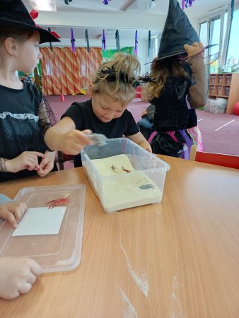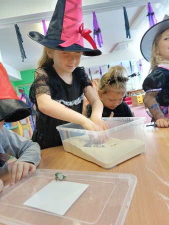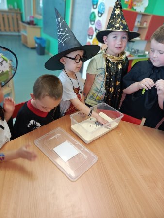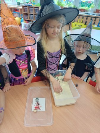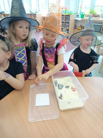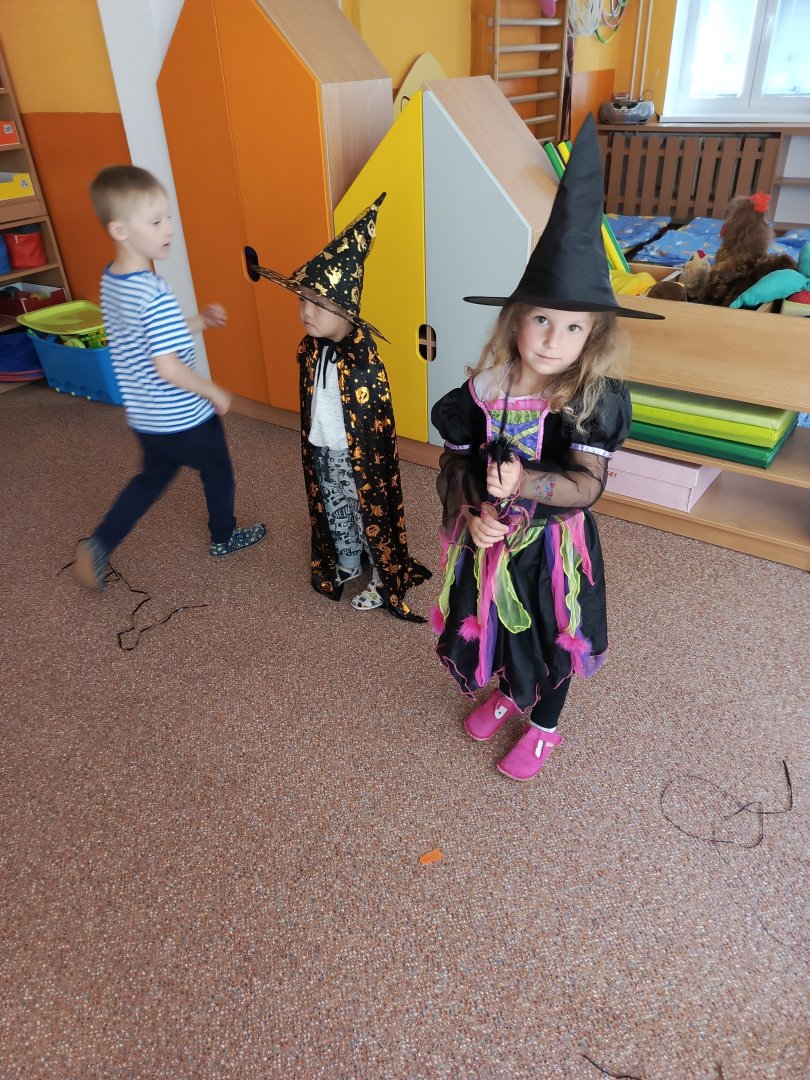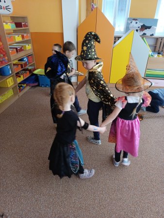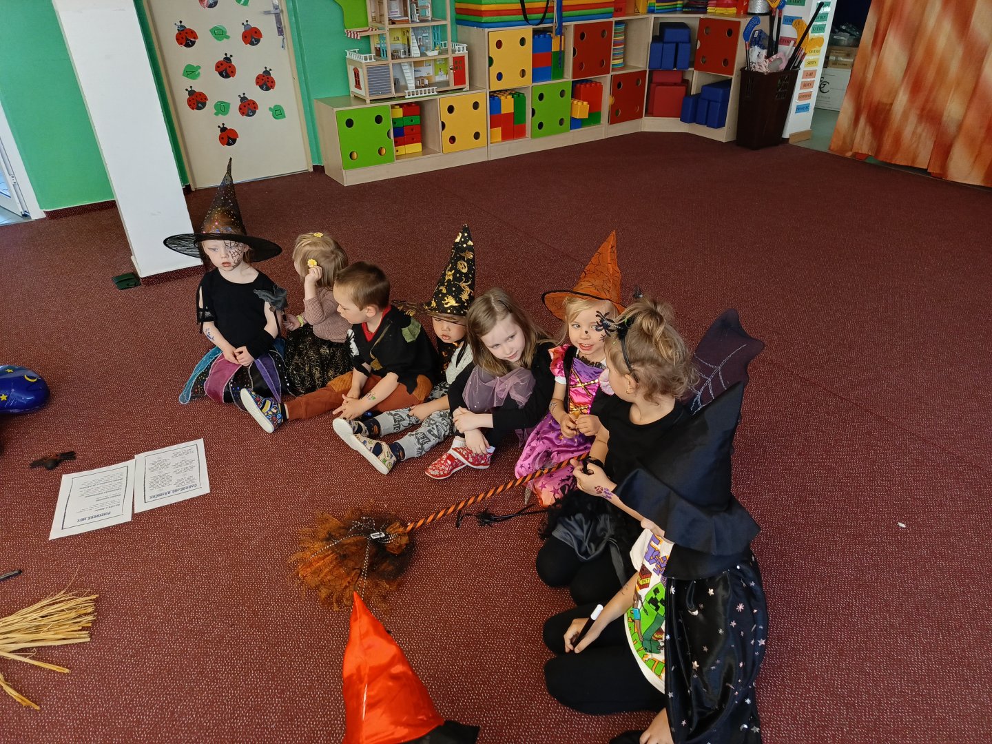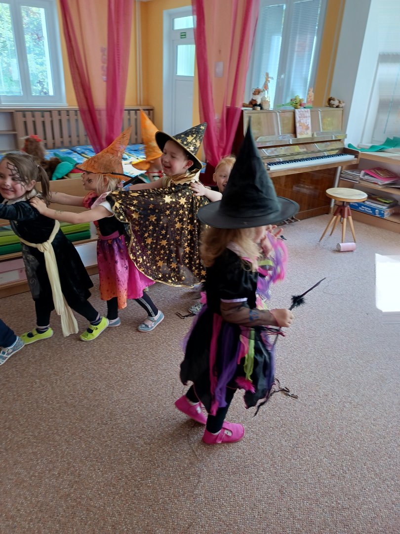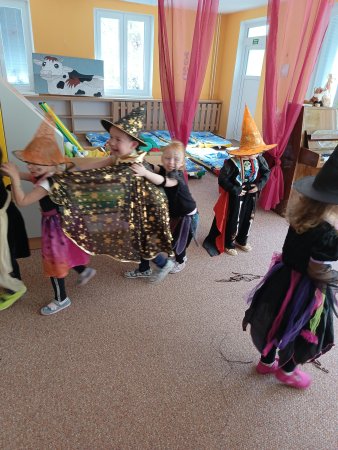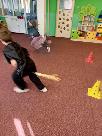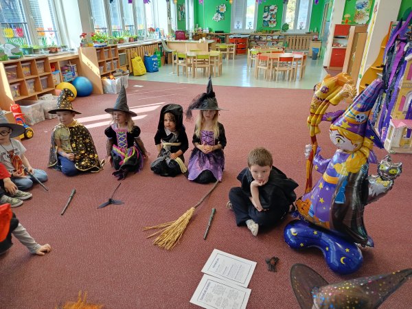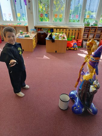 Ve středu 30.4.2025 ve školce proběhl projektový den Čarodějnice. Děti se nejdříve představily svými čarodějnickými jmény a naučily čarovná zaklínadla, poté soutěžily v čarodějnických soutěžích a aktivitách např. v letu na koštěti, v hodu pavoukem, v lovení pavouků a brouků v „pouštním písku“, ve skládání kouzelných klobouků. Nakonec si zatančily a převzaly odměny – kouzelné lektvary. Všichni jsme si tento den moc užili.