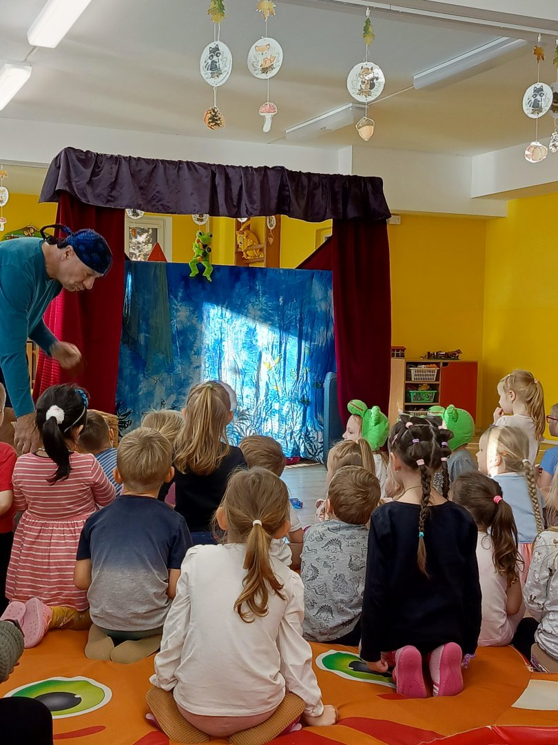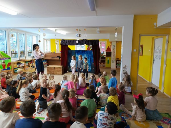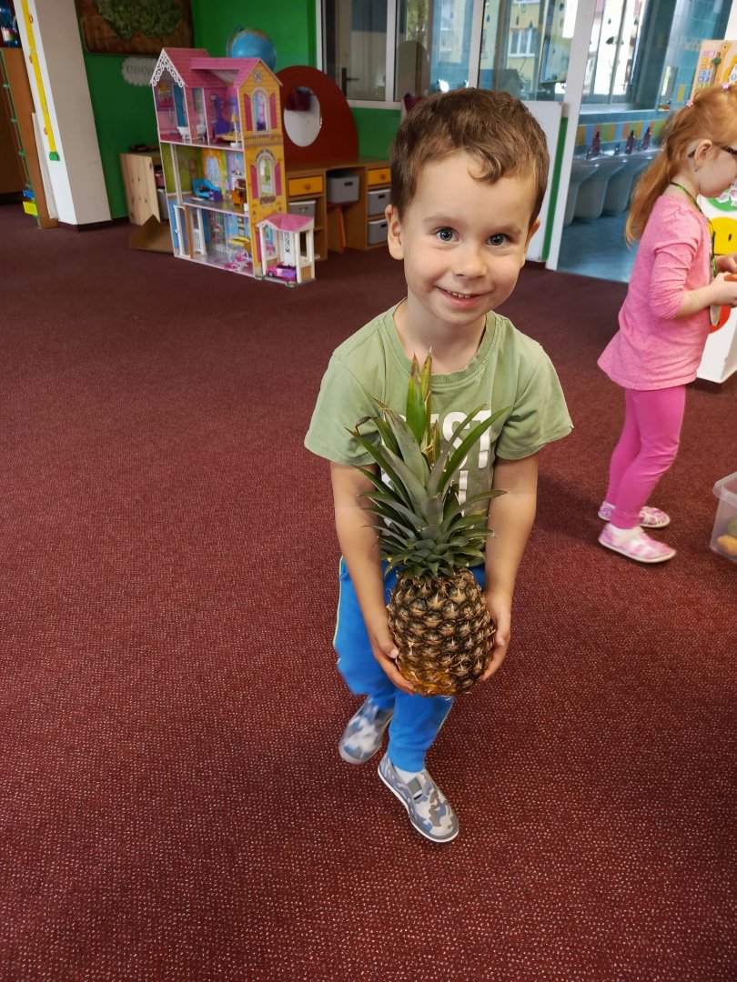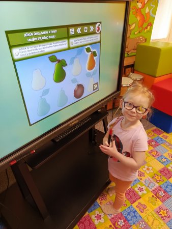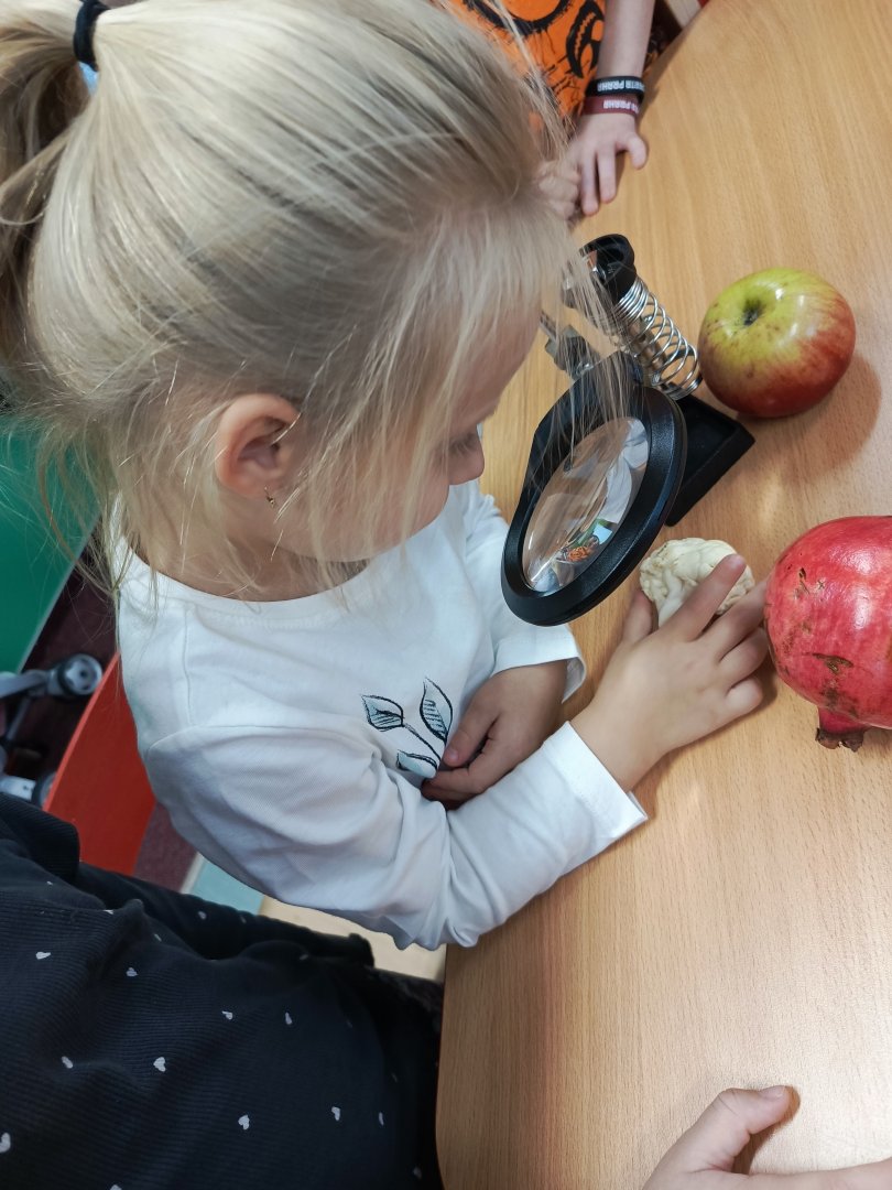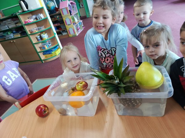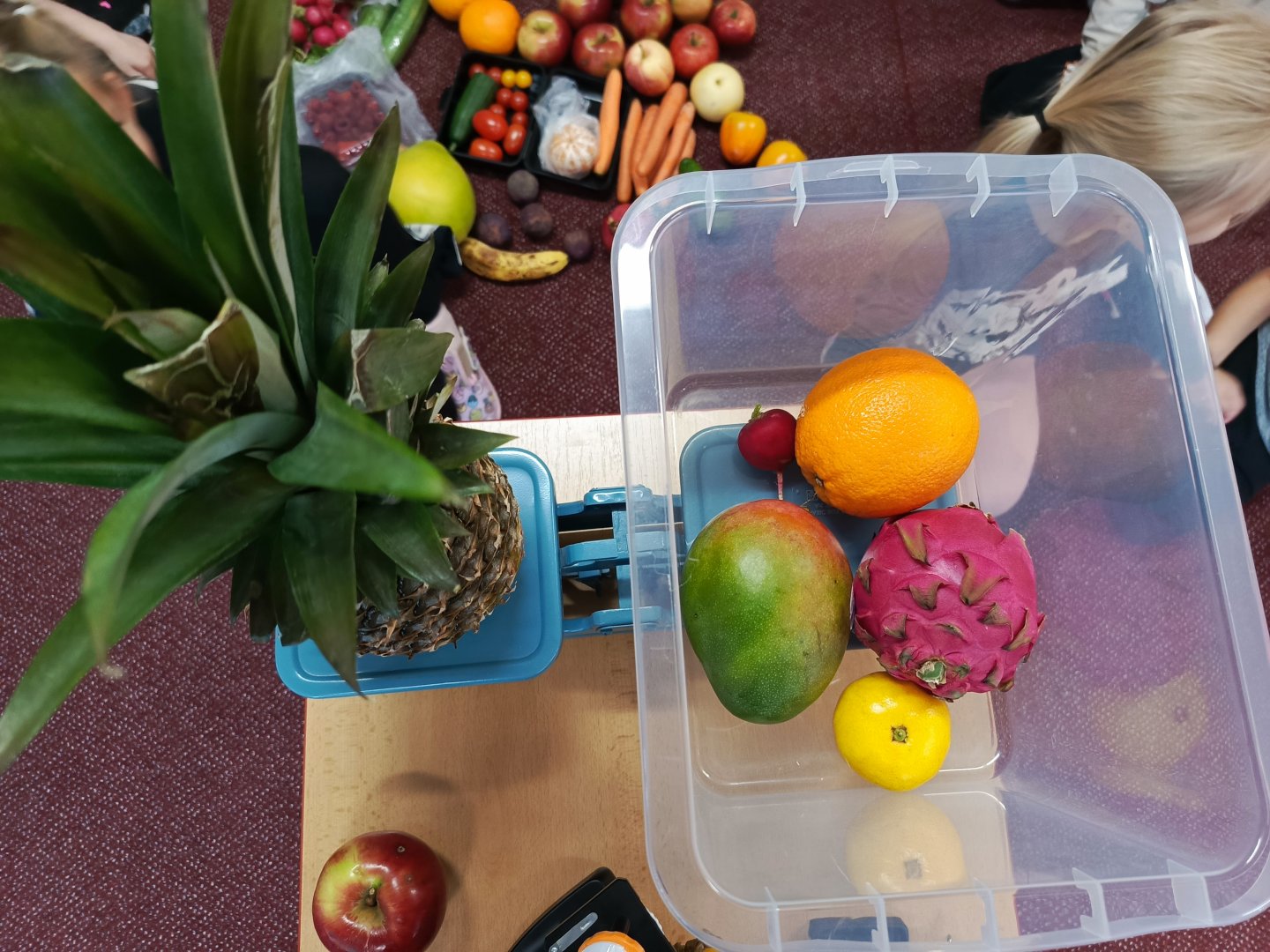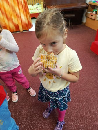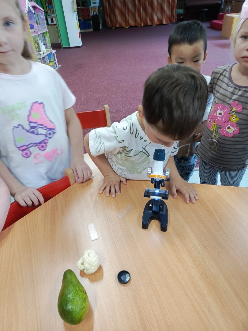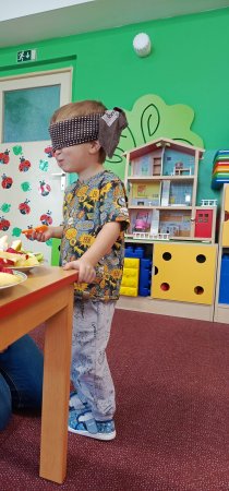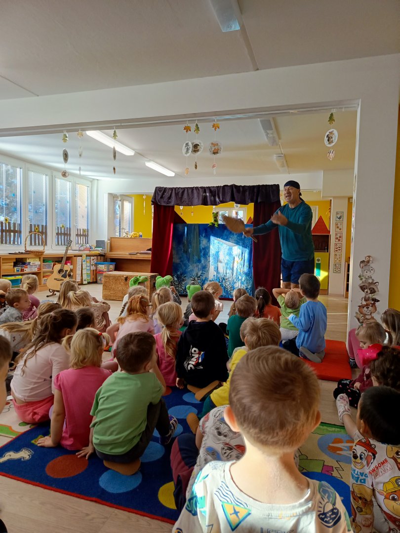 Tento týden jsme se věnovali ovoci a zelenině. Děti se seznámily s různou zeleninou a ovocem i exotickým. Poznaly, že každé ovoce i zelenina má jiný tvar, vůni, chuť, je jinak těžké. Vyzkoušely si vše zvážit a vytvořit na váze rovnováhu. Také ovoce a zeleninu počítaly, pozorovaly pod lupou a mikroskopem. V pokusu, co plave a neplave, se dozvěděly, že kiwi a mrkev v obyčejné vodě neplavou, ale ve slané vodě plavou. V logopedické třídě plnily úkoly na kouzelné tabuli k tomuto tématu. Také jsme sbírali kaštany, oslavili narozeniny a svátek, ve školce proběhlo divadlo s pohádkou o podzimu.