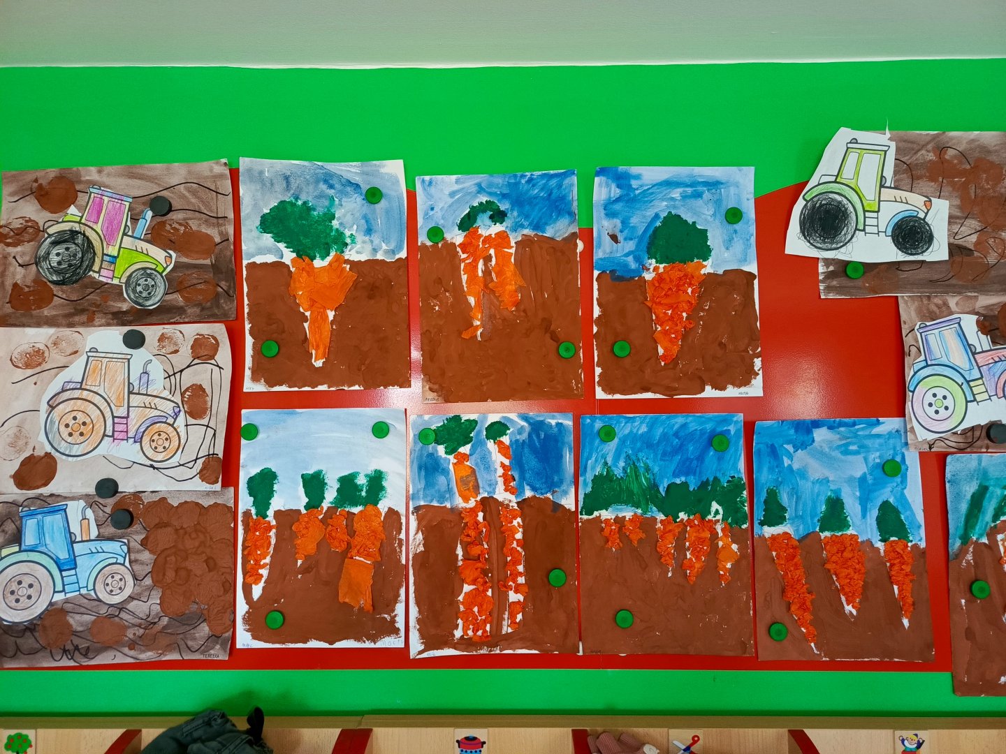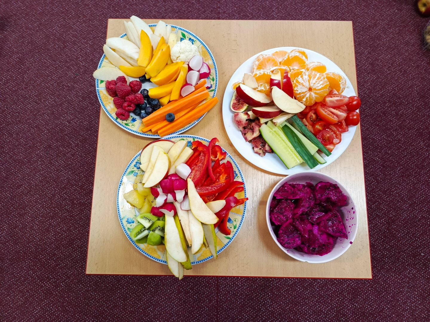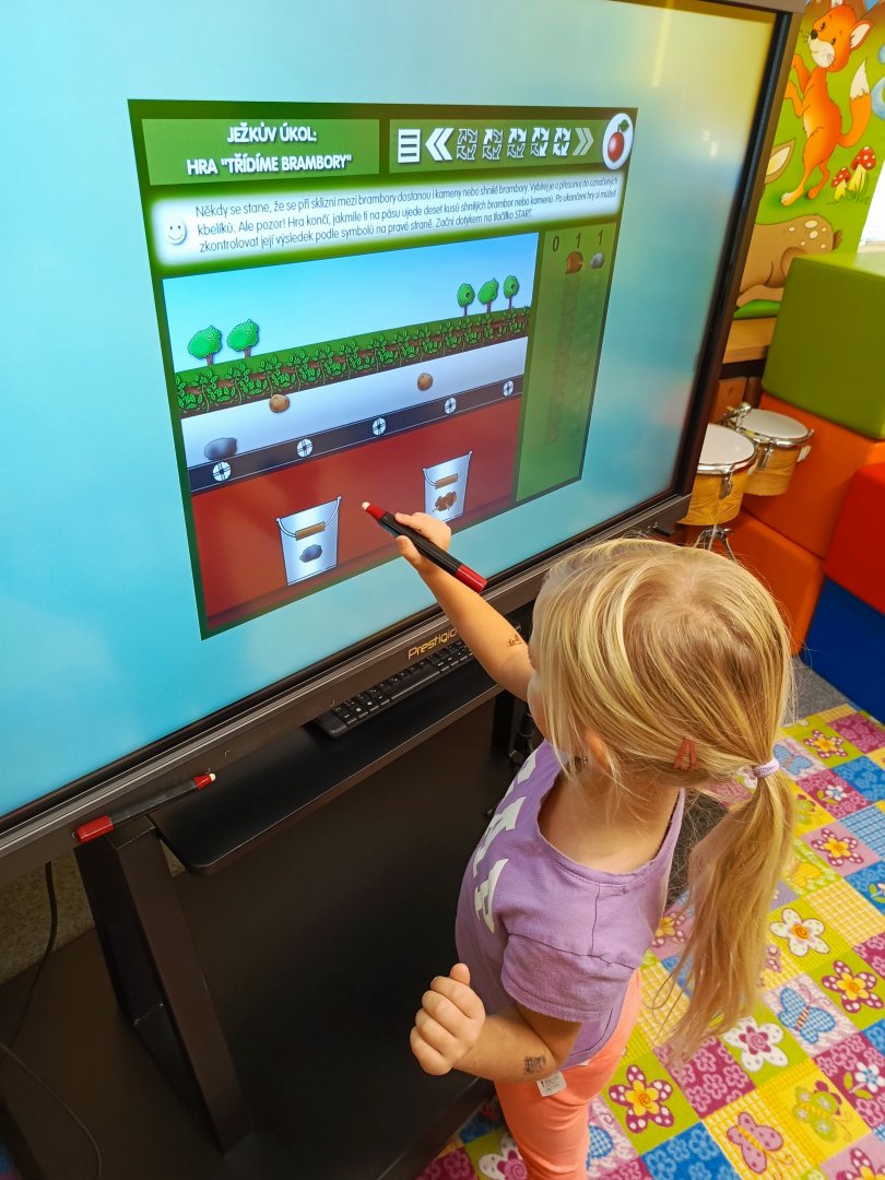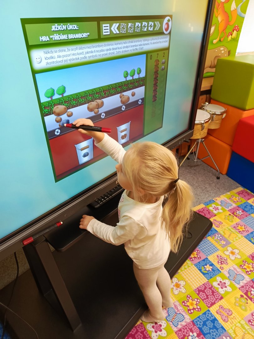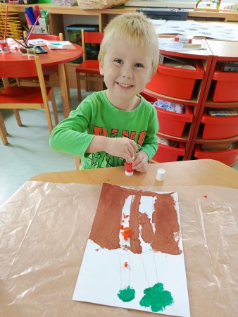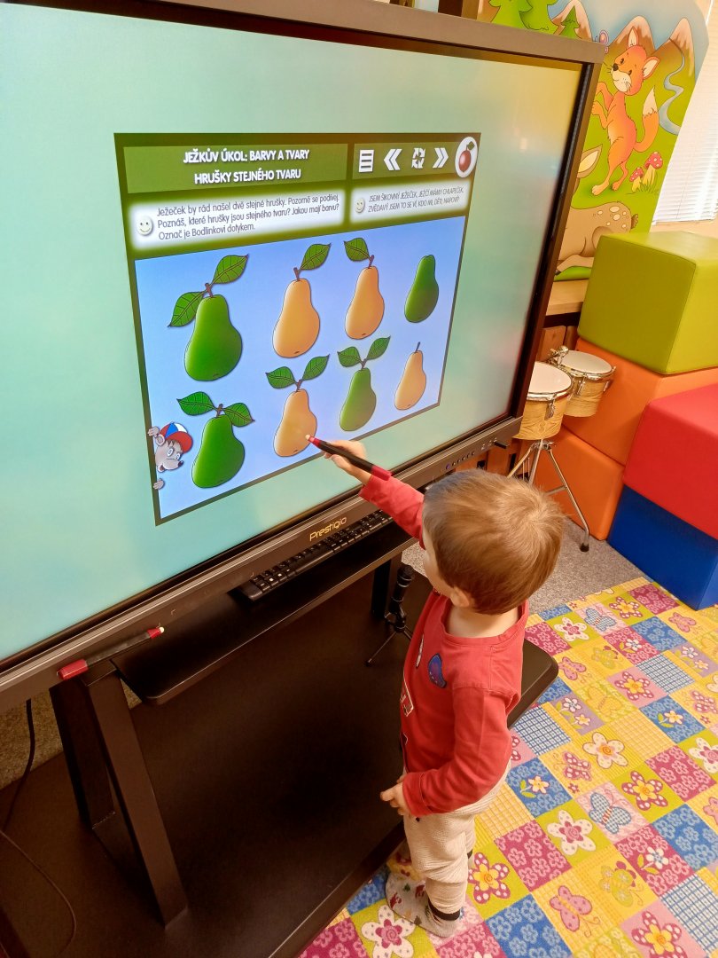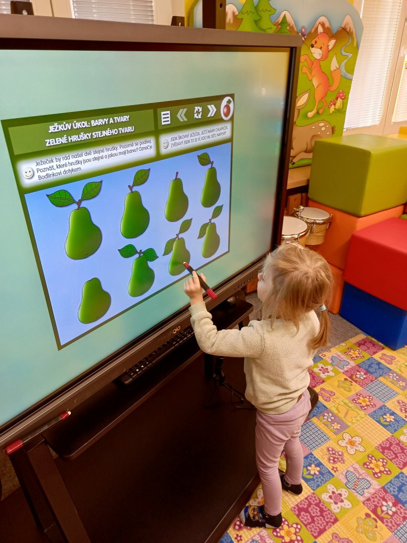 Tento týden jsme se věnovali ovoci a zelenině. Děti se seznámily s různou zeleninou a ovocem i exotickým. Poznaly, že každé ovoce i zelenina má jiný tvar, vůni, chuť, je jinak těžké. Vyzkoušely si vše zvážit a vytvořit na váze rovnováhu. Také ovoce a zeleninu počítaly, pozorovaly pod lupou a mikroskopem. V pokusu, co plave a neplave, se dozvěděly, že kiwi a mrkev v obyčejné vodě neplavou, ale ve slané vodě plavou. V logopedické třídě plnily úkoly na kouzelné tabuli k tomuto tématu. Také jsme sbírali kaštany, oslavili narozeniny a svátek, ve školce proběhlo divadlo s pohádkou o podzimu.