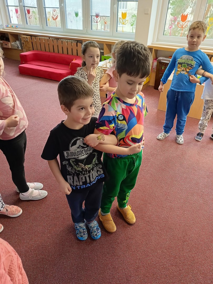 Předškoláci se zúčastnili vzdělávacího programu o emocích. Poslechli si pohádku o chameleonovi Leonovi, který měnil barvy ne podle prostředí, ale podle svých emocí. Děti se dozvěděly, co to jsou emoce, vyzkoušely si různé pohybové hry i hry na ovládání svých emocí.