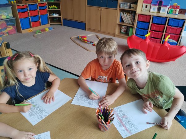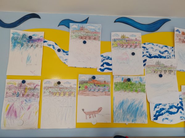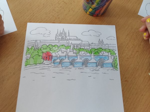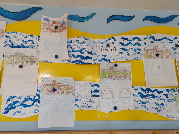 Celý týden jsme si s dětmi povídali o Praze. Děti se dozvěděly o nejznámějších památkách, řece Vltavě, z kostek si postavily Karlův most, Pražský hrad, vybarvily omalovánky a nakreslily obrázek. Naučily se píseň - Na tom pražským mostě, poslechly si Vltavu od Bedřicha Smetany, hymnu ČR a zkusily si jí zazpívat. Při pohybových hrách si děti zahrály hru na sochy. Největším překvapením a nadšením bylo vítězství našich šikovných hokejistů. 🥇🏆