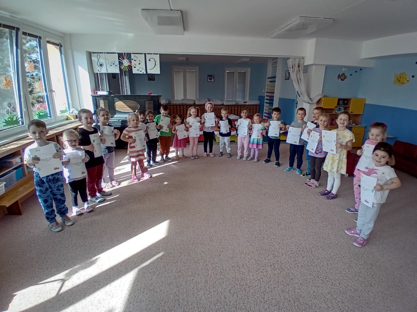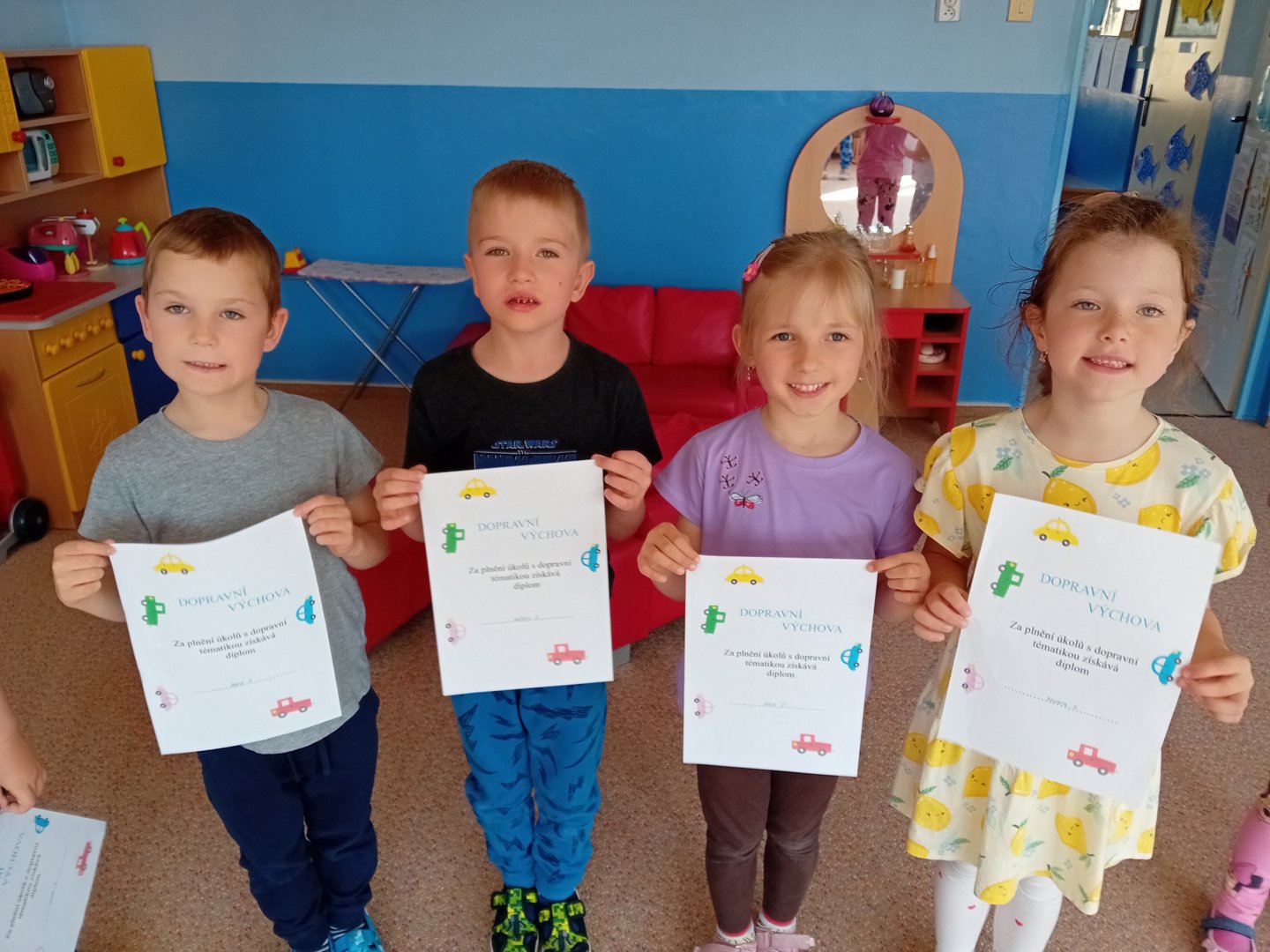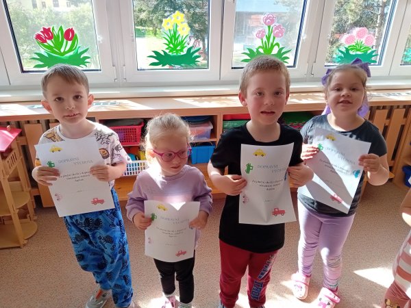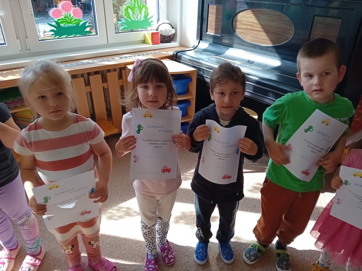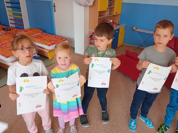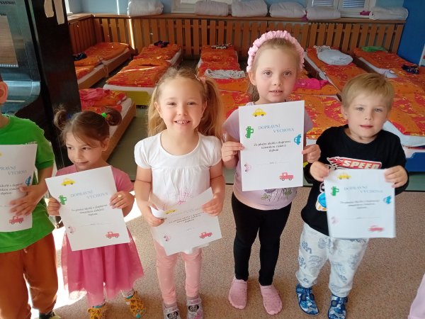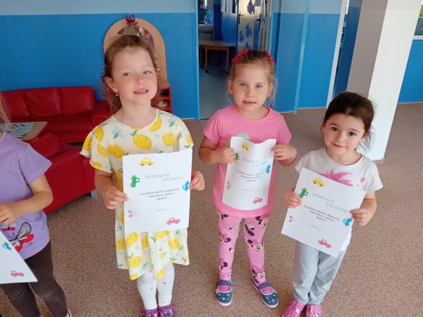 Dnes ve školce na jednotlivých třídách proběhl projektový den "Doprava". Děti plnily různé dopravní úkoly, zahrály si pohybové a soutěživé hry. Povídaly si o záchranných složkách, ví, na jaká čísla mají zavolat v případě potřeby. Také ví, jaké vybavení musí mít cyklista a jeho kolo. Vyplňovaly různé pracovní listy a zacvičily si na písně s dopravní tématikou. Domů si odnesly diplom a sladkou odměnu.
