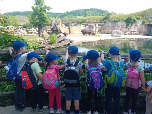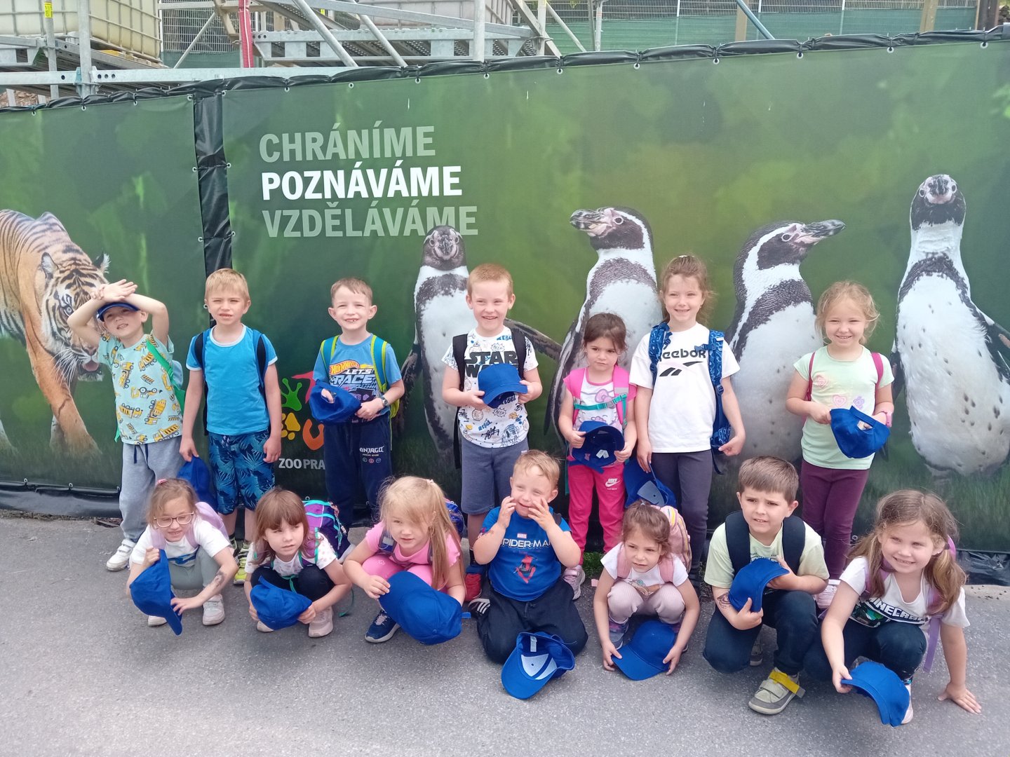 Dnes se děti vydaly autobusem na výlet do zoologické zahrady v Praze. Byly se podívat na zvířata, o kterých si povídáme ve školce a která znají. Navštívily expozici Indonéská džungle, kde viděly mnoho exotických tvorů. V Africkém domě si prohlédly slony a žirafy. Také se byly podívat na gorily v jejich novém pavilonu. Ve voliérách si prohlížely různé ptačí krasavce a také zavítaly do pavilonu šelem. V průběhu dne se nasvačily, snědly si oběd a odpolední sváču. Neobešli jsme se ani bez návštěvy u tuleňů a tučňáků a dalších zvířátek. Celý den bylo krásné počasí, a tak se výlet opravdu povedl, děti nachodily v zoo zhruba devět kilometrů a moc je chválíme nejen my, ale také je několikrát chválili návštěvníci v zoo, jak jsou hodní a poslušní. Při zpáteční cestě do autobusu jsme se byli ještě podívat u Trojského zámku.