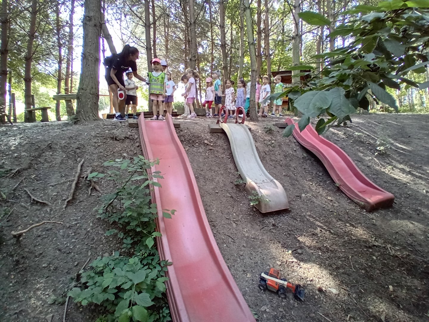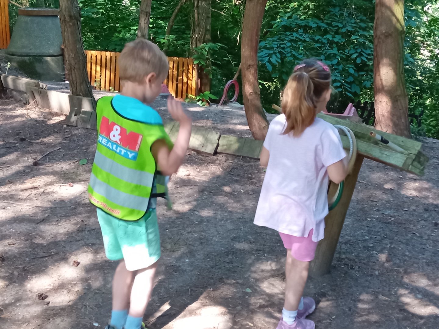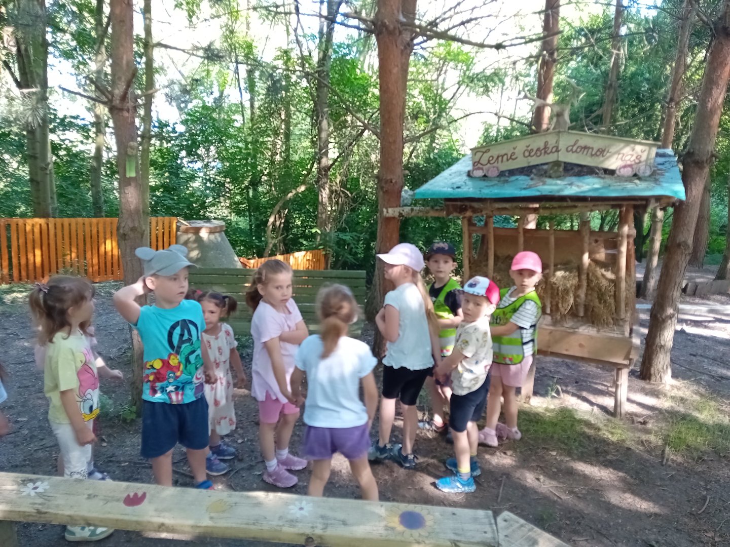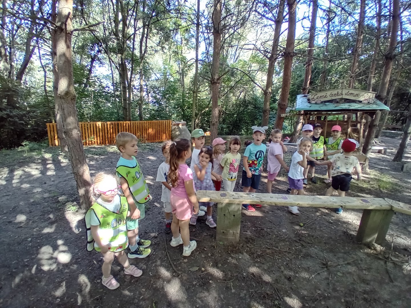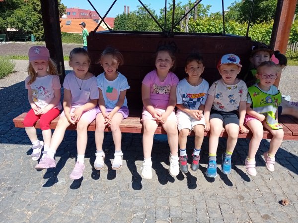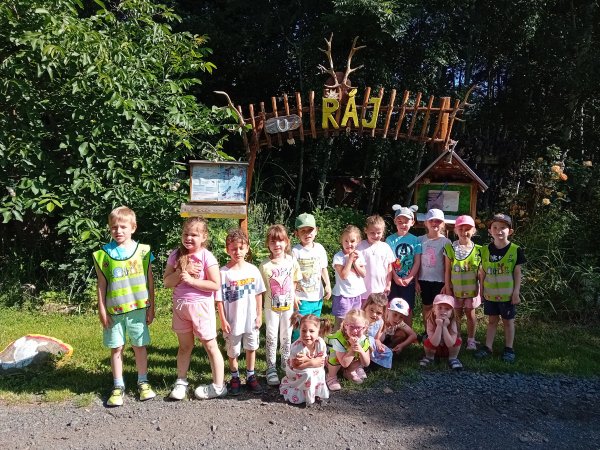 Dnes se děti po svačince vydaly na pěší výlet do žateckého "Ráje". Společně si prohlédly jednotlivé herní prvky, vyzkoušely si skluzavky, házely kroužky na tyčky, zahrály si kuželky. Také si mohly půjčit odrážedla, na kterých se projely po cestičkách. Děti měly zajištěný pitný režim (minerálky a kelímky v batozích u paní učitelek). Při zpáteční cestě jsme se ještě zastavili v Klášterní zahradě, kde jsme si prohlédli vinici a bylinkovou zahradu, děti se občerstvily a pak už jsme se vraceli zpátky do školky na oběd.