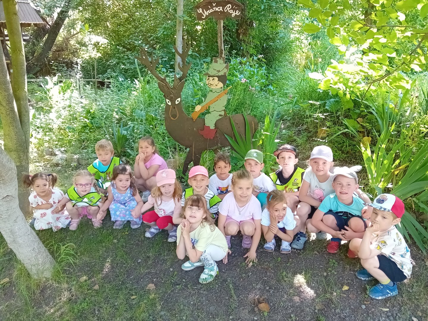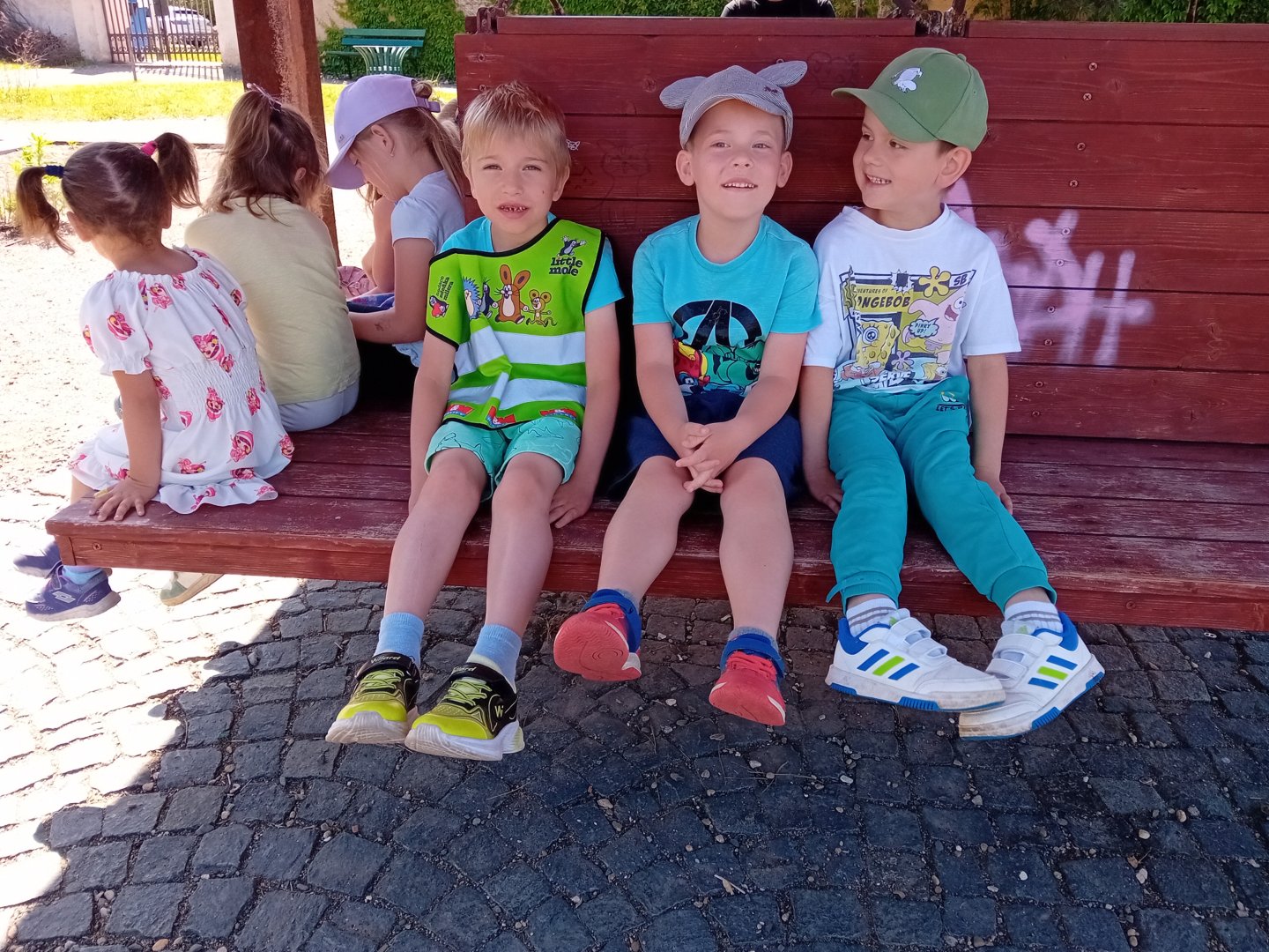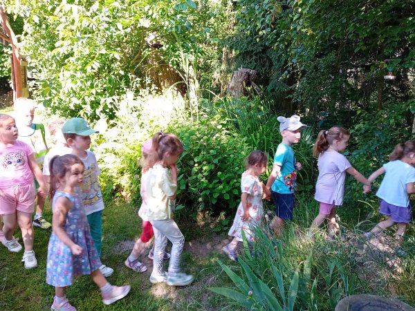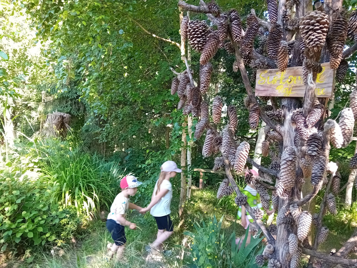 Dnes se děti po svačince vydaly na pěší výlet do žateckého "Ráje". Společně si prohlédly jednotlivé herní prvky, vyzkoušely si skluzavky, házely kroužky na tyčky, zahrály si kuželky. Také si mohly půjčit odrážedla, na kterých se projely po cestičkách. Děti měly zajištěný pitný režim (minerálky a kelímky v batozích u paní učitelek). Při zpáteční cestě jsme se ještě zastavili v Klášterní zahradě, kde jsme si prohlédli vinici a bylinkovou zahradu, děti se občerstvily a pak už jsme se vraceli zpátky do školky na oběd.