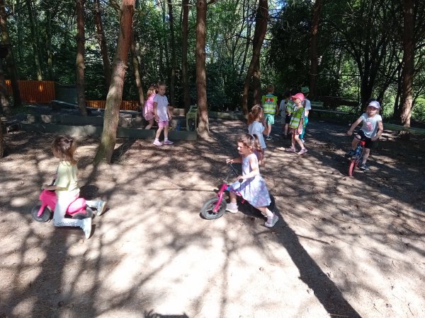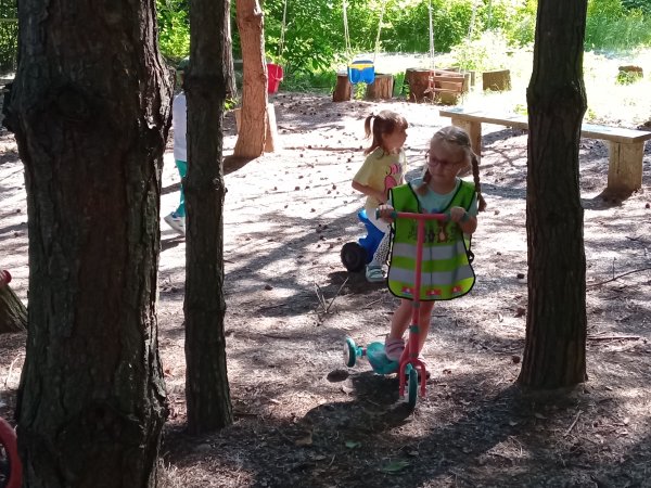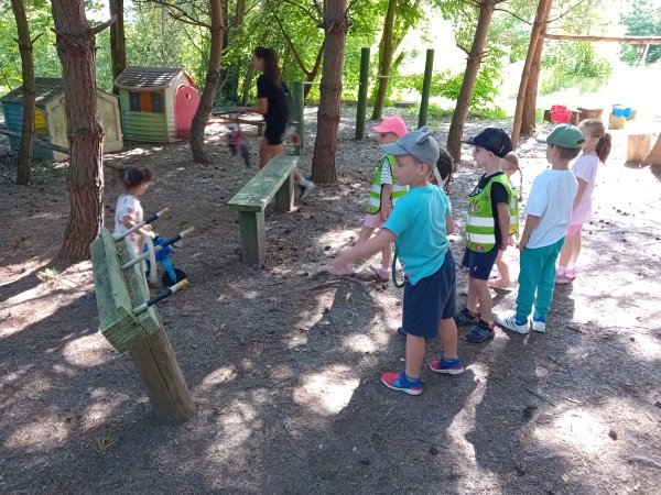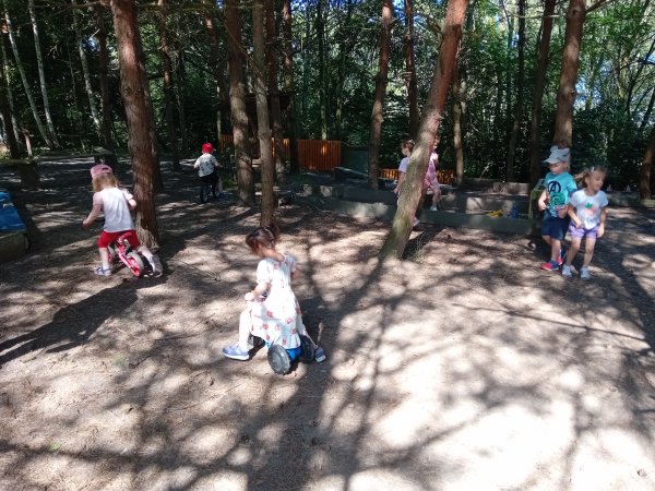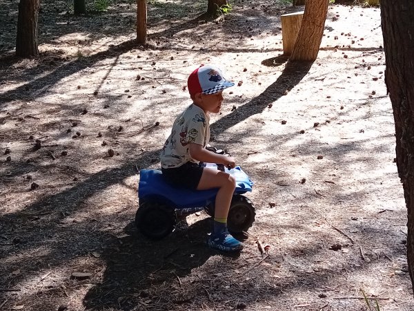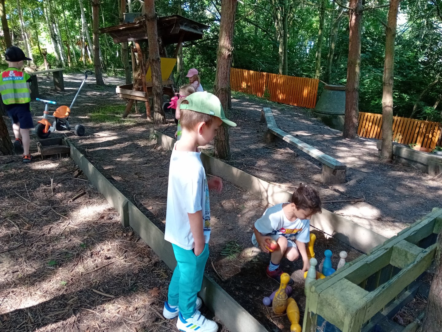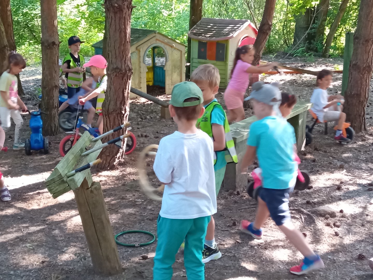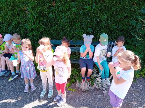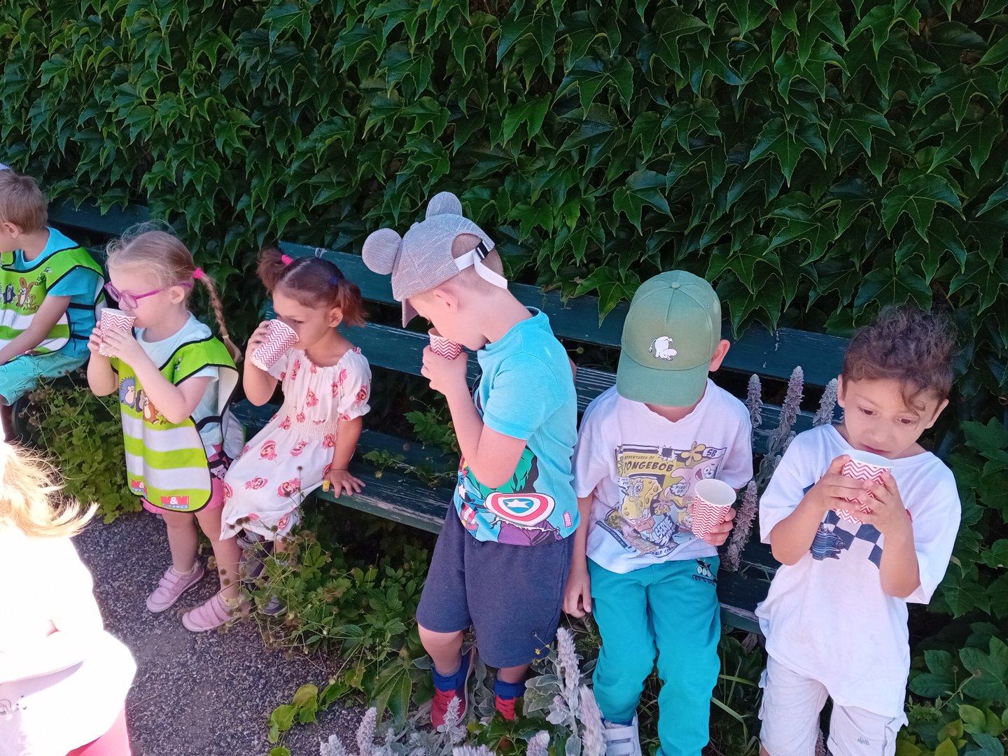 Dnes se děti po svačince vydaly na pěší výlet do žateckého "Ráje". Společně si prohlédly jednotlivé herní prvky, vyzkoušely si skluzavky, házely kroužky na tyčky, zahrály si kuželky. Také si mohly půjčit odrážedla, na kterých se projely po cestičkách. Děti měly zajištěný pitný režim (minerálky a kelímky v batozích u paní učitelek). Při zpáteční cestě jsme se ještě zastavili v Klášterní zahradě, kde jsme si prohlédli vinici a bylinkovou zahradu, děti se občerstvily a pak už jsme se vraceli zpátky do školky na oběd.