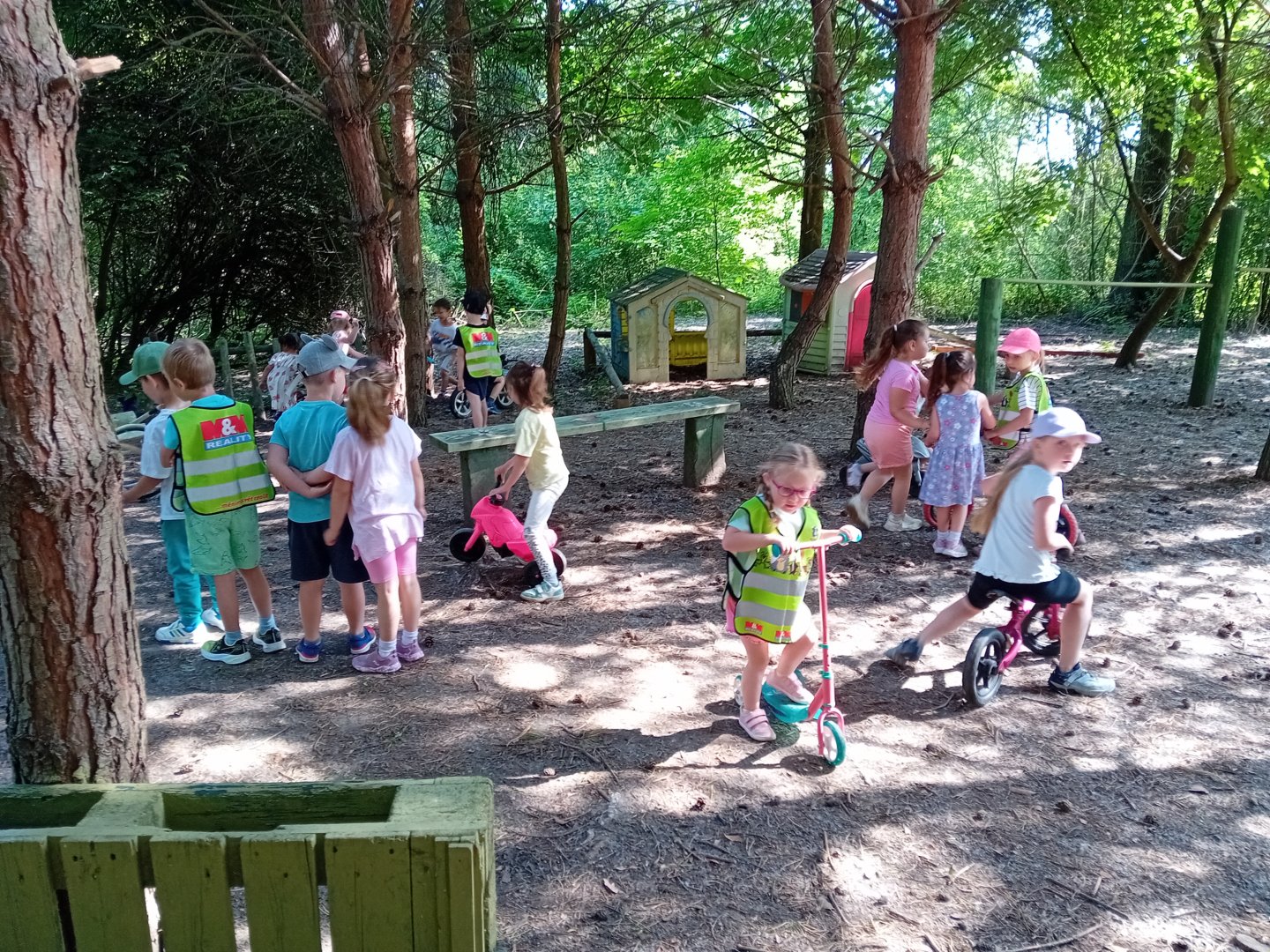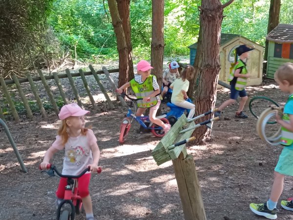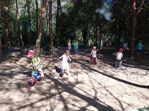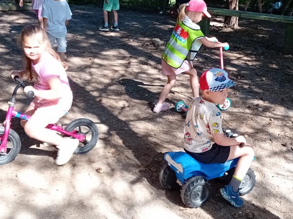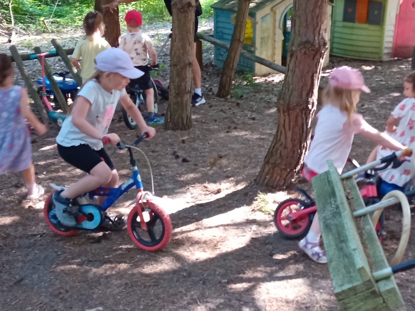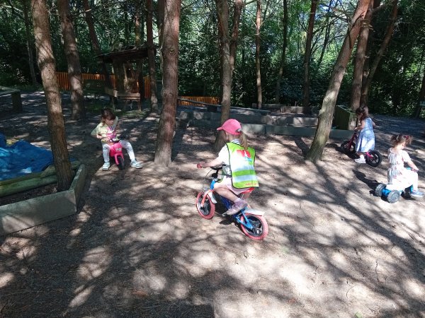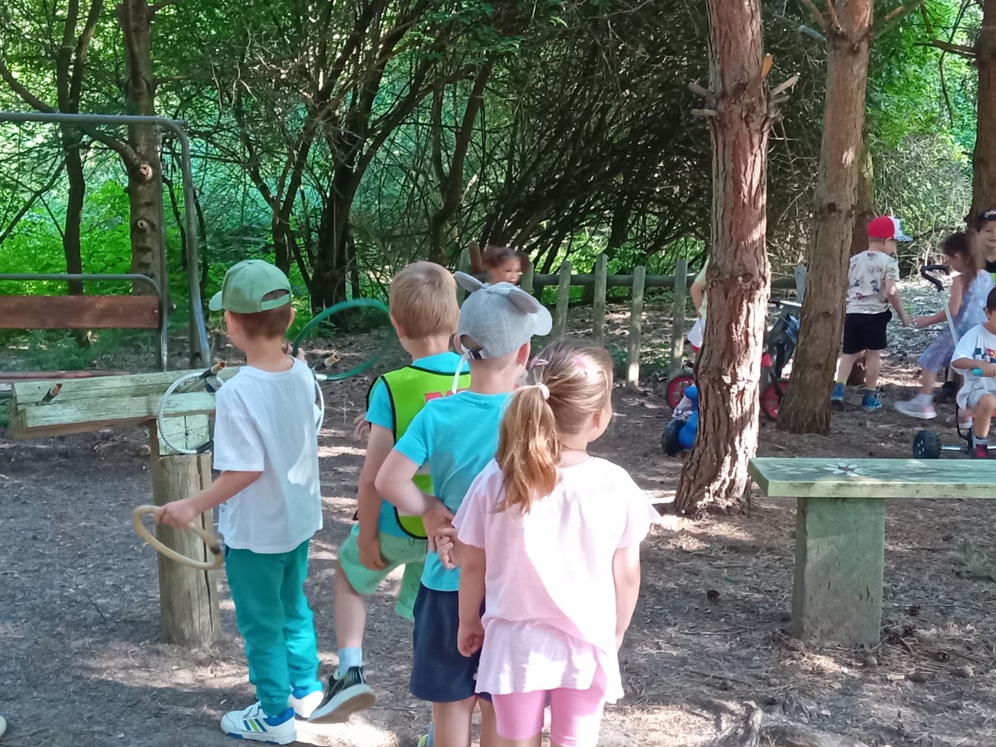 Dnes se děti po svačince vydaly na pěší výlet do žateckého "Ráje". Společně si prohlédly jednotlivé herní prvky, vyzkoušely si skluzavky, házely kroužky na tyčky, zahrály si kuželky. Také si mohly půjčit odrážedla, na kterých se projely po cestičkách. Děti měly zajištěný pitný režim (minerálky a kelímky v batozích u paní učitelek). Při zpáteční cestě jsme se ještě zastavili v Klášterní zahradě, kde jsme si prohlédli vinici a bylinkovou zahradu, děti se občerstvily a pak už jsme se vraceli zpátky do školky na oběd.