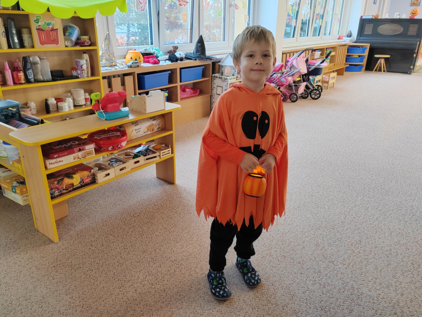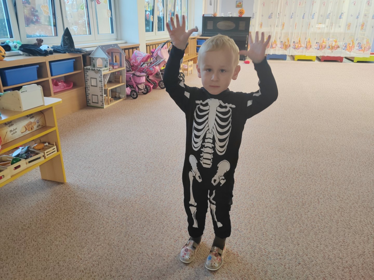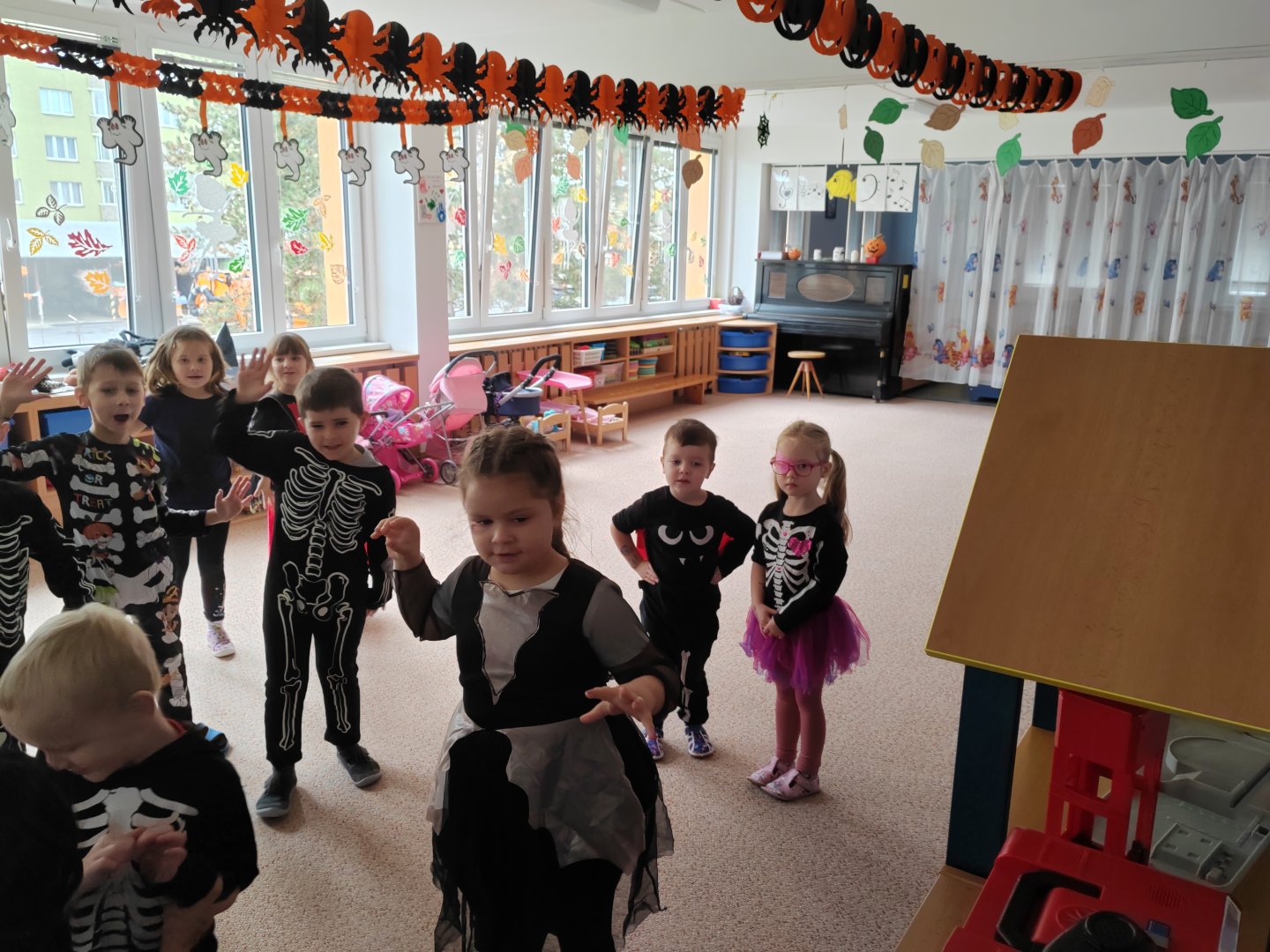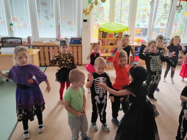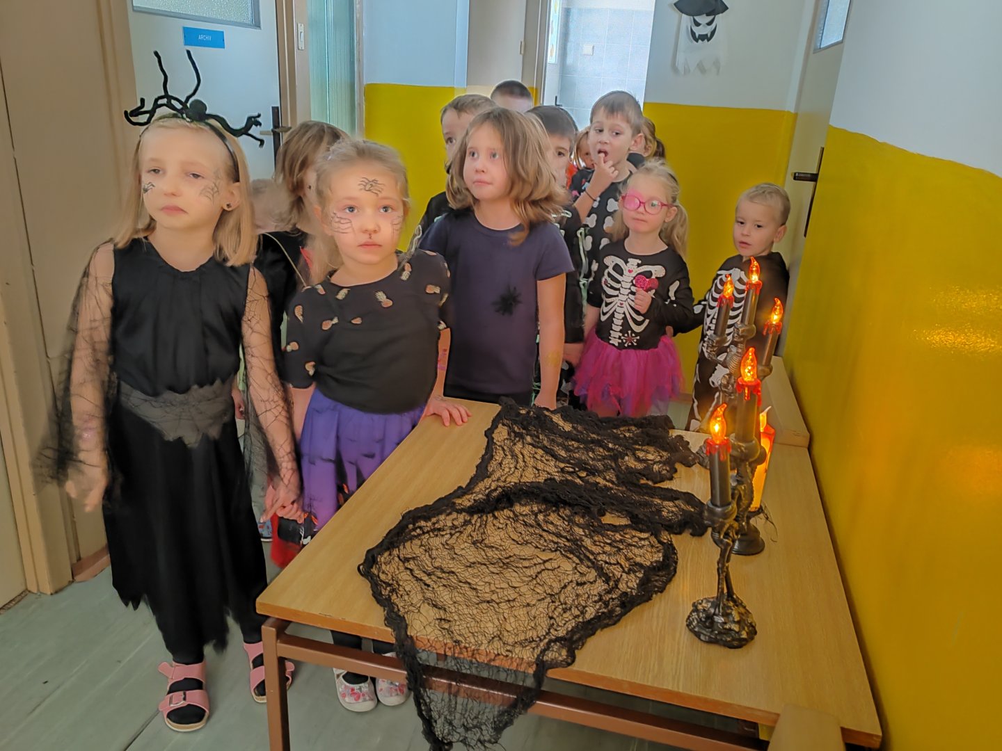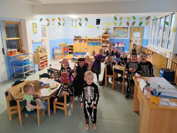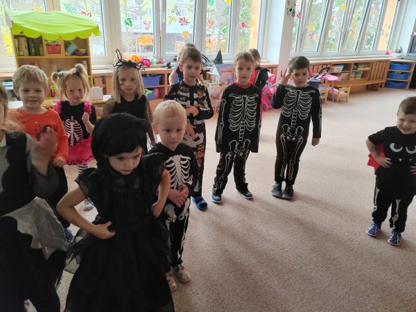 Dnes měly děti ve školce projektový den Halloween. Děti chodily už od rána do školky v nádherných maskách, nosily pro kamarády strašidelné dobroty. Tančily a skotačily. Jako překvapení na děti čekala stezka vedoucí po celé školce. Byla plná strašidýlek, úkolů a zvukových efektů. Stezku si pro děti připravila paní učitelka Míša že třídy sluníček, byla opravdu povedená. Paní učitelce moc děkujeme. Dětem se dopoledne velice líbilo. Strašně děkujeme rodičům za výborné ňaminy, nádherné kostýmy a krásně nazdobené a vydlabané dýně, které nám zdobí vchod do školky.