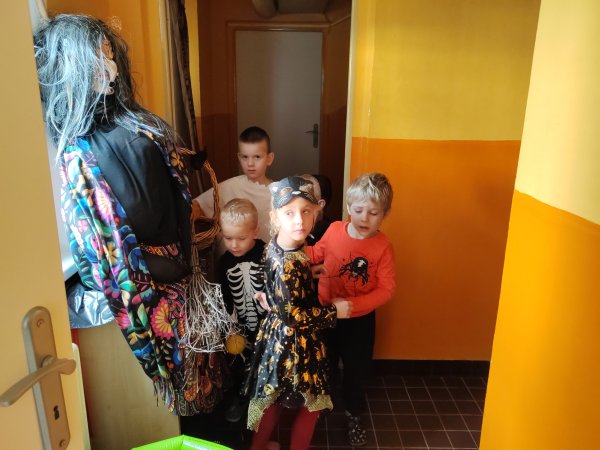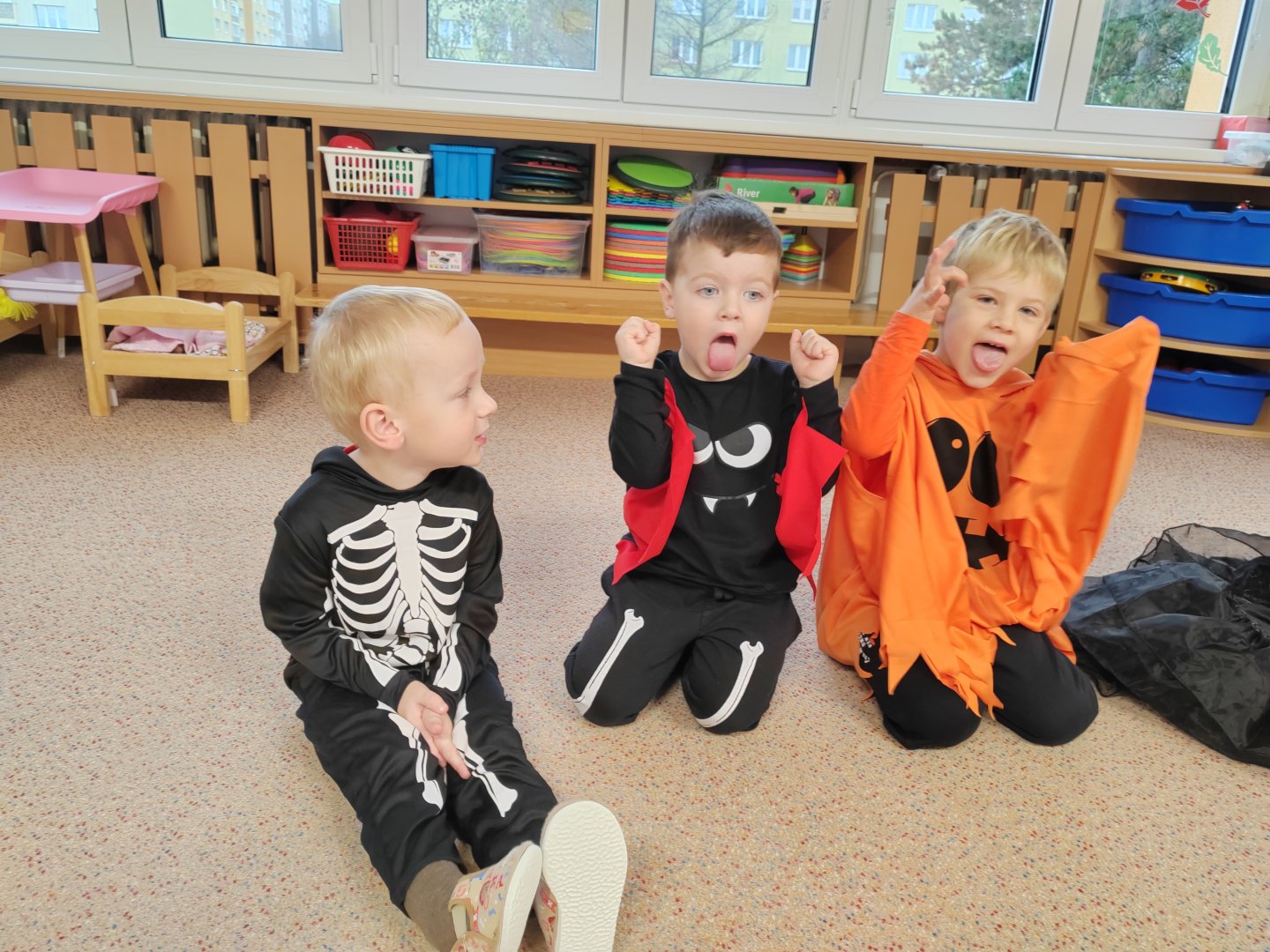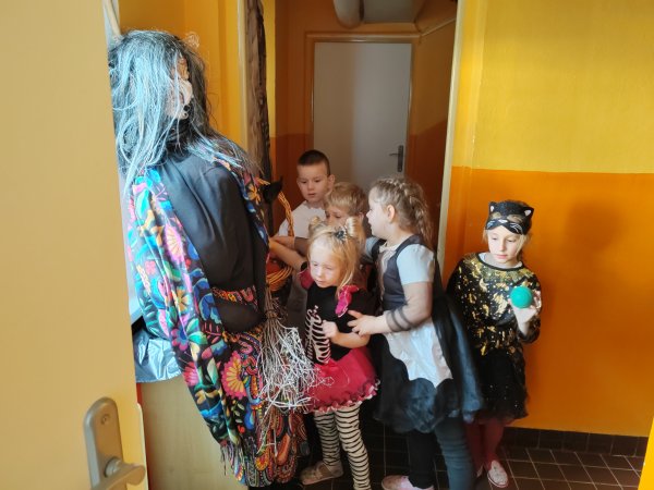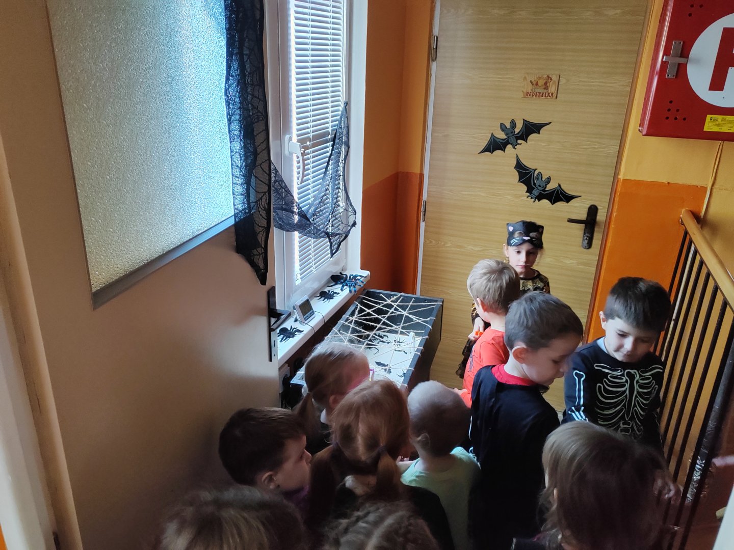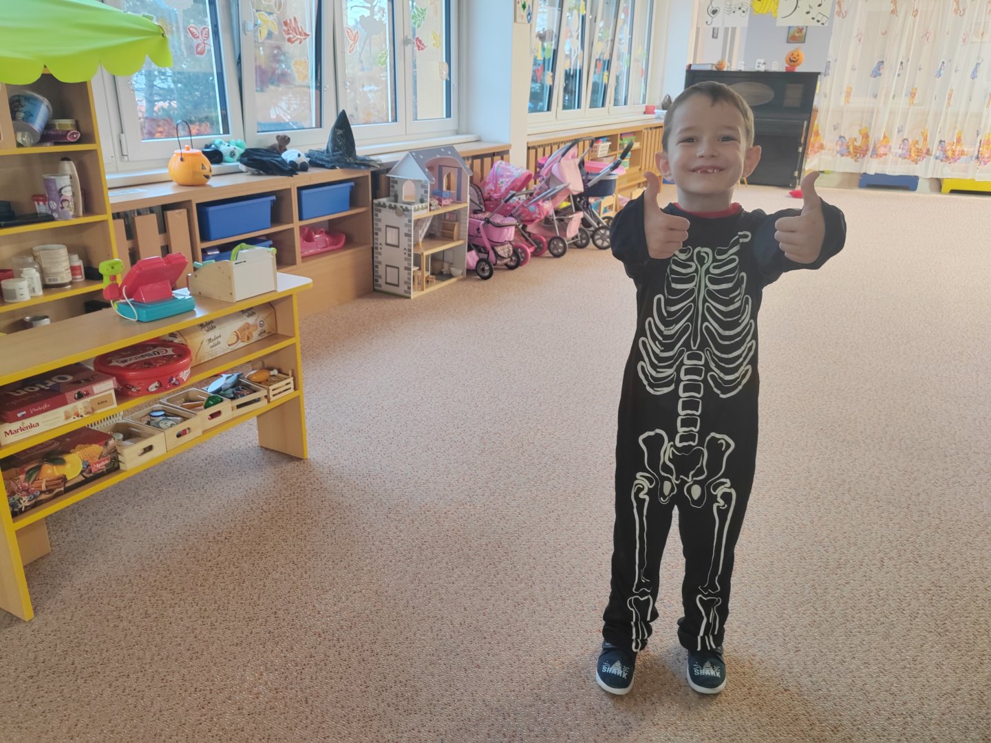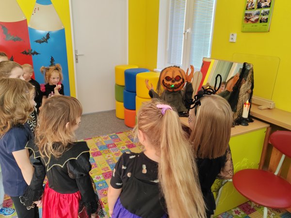Dnes měly děti ve školce projektový den Halloween. Děti chodily už od rána do školky v nádherných maskách, nosily pro kamarády strašidelné dobroty. Tančily a skotačily. Jako překvapení na děti čekala stezka vedoucí po celé školce. Byla plná strašidýlek, úkolů a zvukových efektů. Stezku si pro děti připravila paní učitelka Míša že třídy sluníček, byla opravdu povedená. Paní učitelce moc děkujeme. Dětem se dopoledne velice líbilo. Strašně děkujeme rodičům za výborné ňaminy, nádherné kostýmy a krásně nazdobené a vydlabané dýně, které nám zdobí vchod do školky.