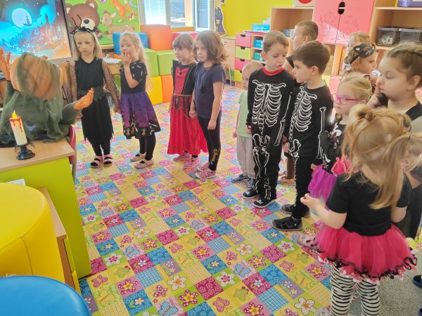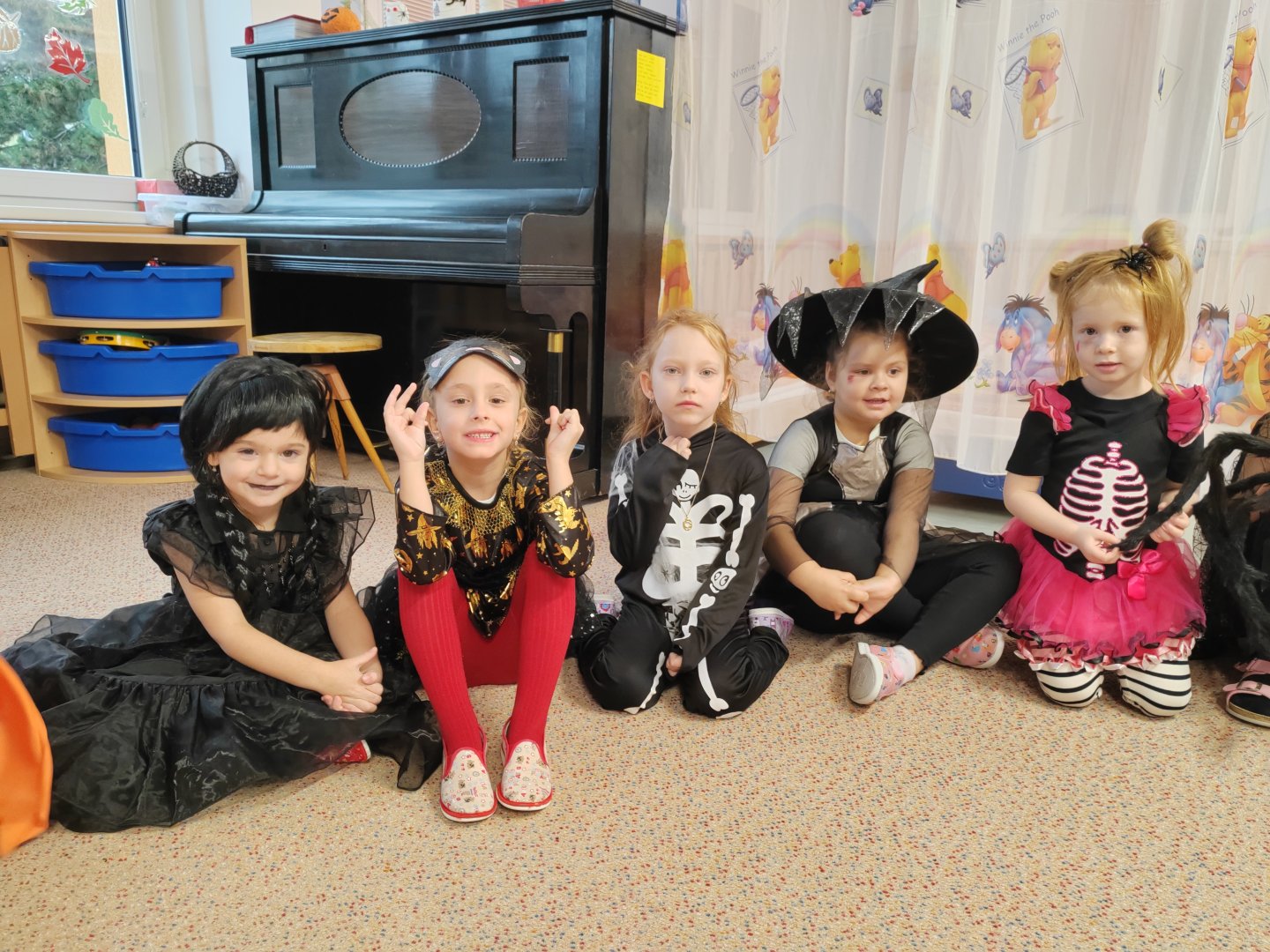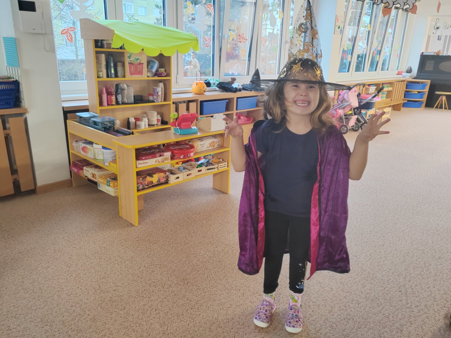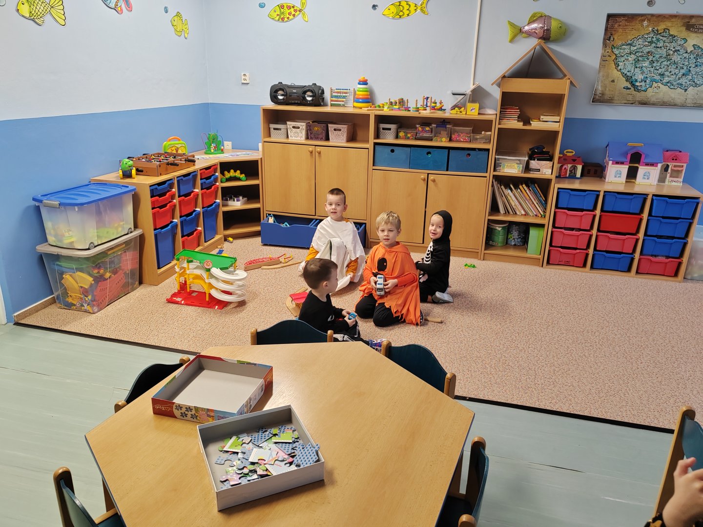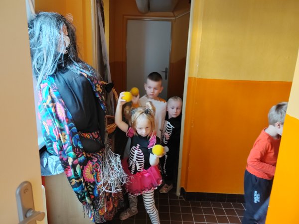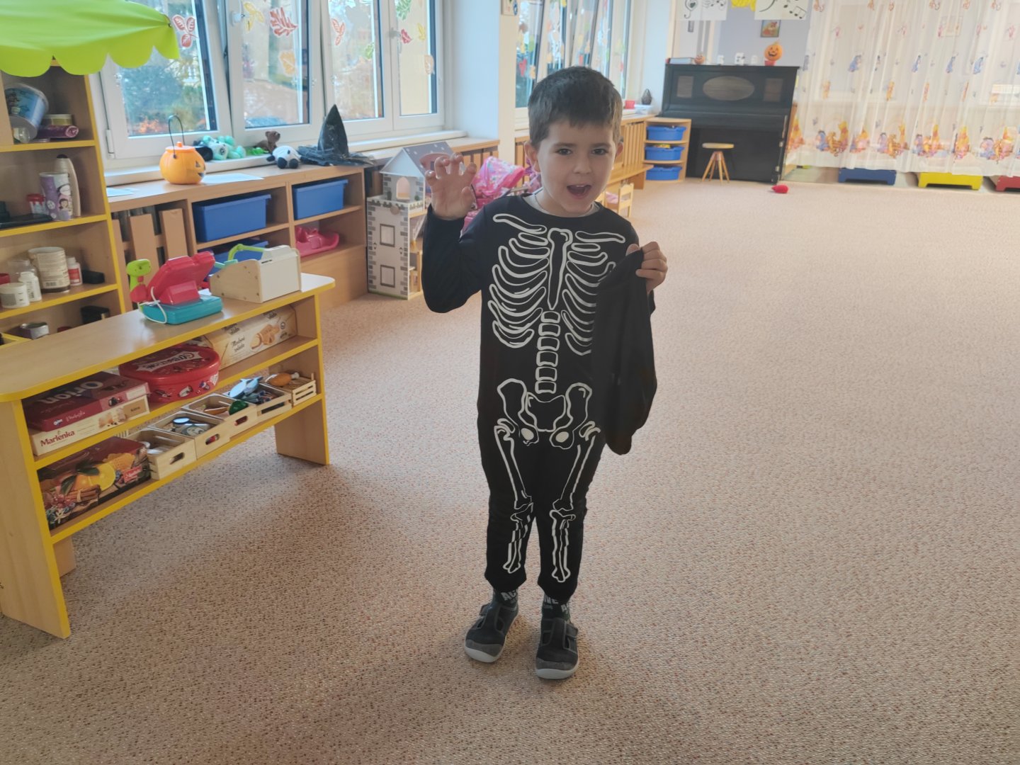 Dnes měly děti ve školce projektový den Halloween. Děti chodily už od rána do školky v nádherných maskách, nosily pro kamarády strašidelné dobroty. Tančily a skotačily. Jako překvapení na děti čekala stezka vedoucí po celé školce. Byla plná strašidýlek, úkolů a zvukových efektů. Stezku si pro děti připravila paní učitelka Míša že třídy sluníček, byla opravdu povedená. Paní učitelce moc děkujeme. Dětem se dopoledne velice líbilo. Strašně děkujeme rodičům za výborné ňaminy, nádherné kostýmy a krásně nazdobené a vydlabané dýně, které nám zdobí vchod do školky.