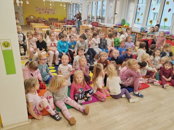 Kategorie: Rybičky | Autor: Bc. Radka Diepoltová | Zveřejněno: 6. 11. 2025 Jak šel méďa do školy Dnes děti shlédly divadelní představení v mš - Jak šel méďa do školy. Děti si zazpívaly plno písniček. Pohádka se jim moc líbila. Galerie