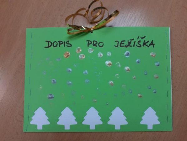 Děti vybarvovaly vánoční stromečky temperou, poté prstovými barvami dodělávaly vánoční ozdoby. Vystříhaly si z časopisu s hračkami obrázky, co si přejí pod stromeček, které poté dolepovaly pod svůj stromek. Těmito pracemi si děti vyzdobily prostory šatny. Zároveň také vyrobily dopis pro Ježíška, do kterého kreslily pastelkami obrázky, jaké dárky by chtěly do školky.