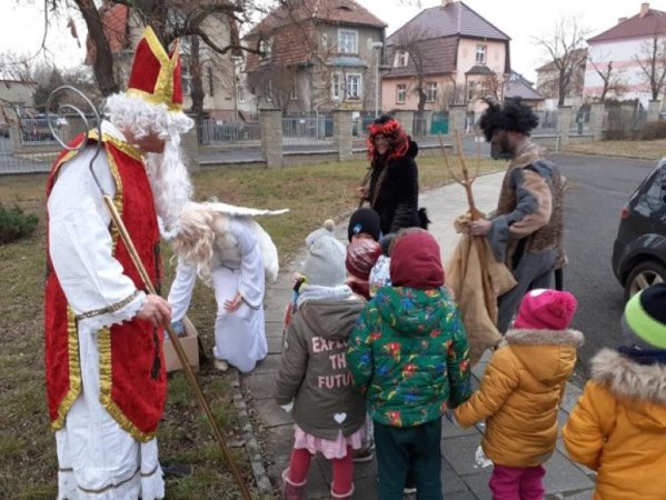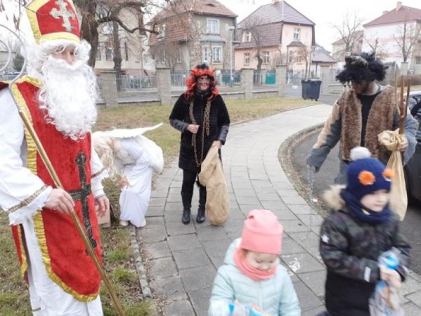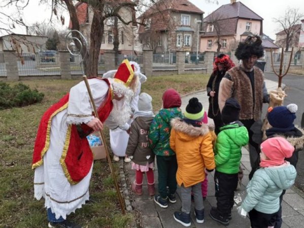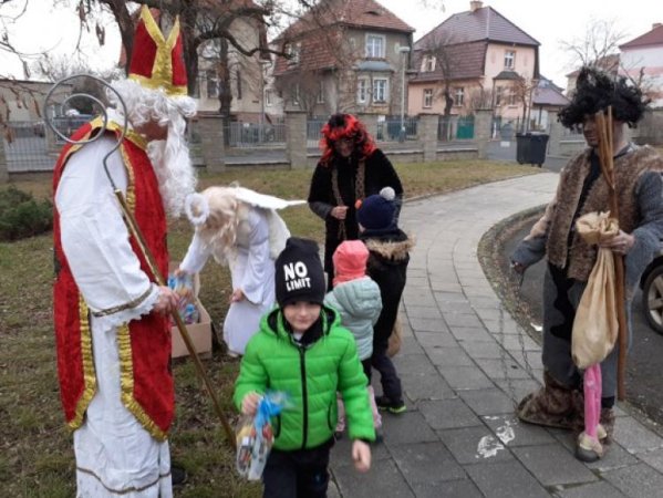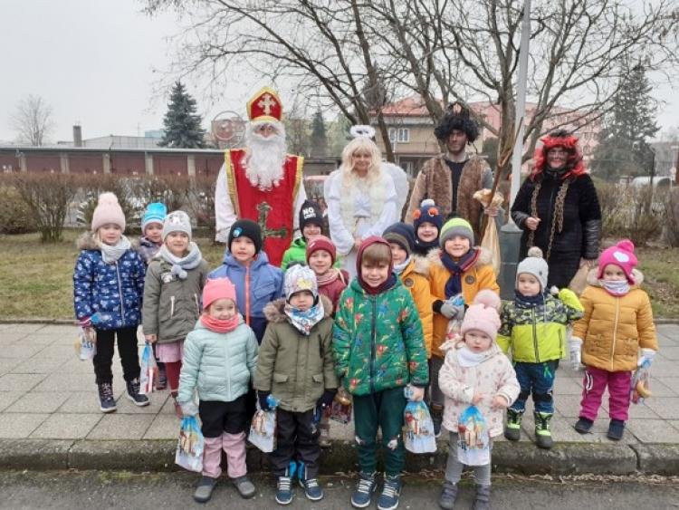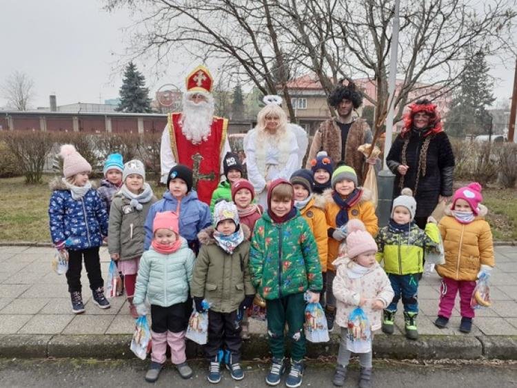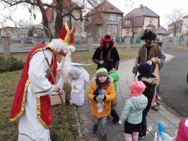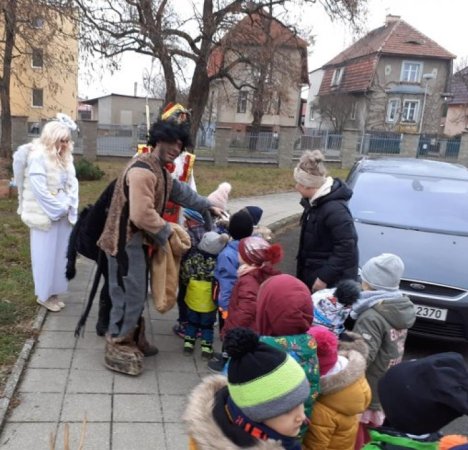Kategorie: Rybičky | Autor: Bc. Kassalová Simona | Zveřejněno: 9. 12. 2021 Mikulášská nadílka u Rybiček V úterý navštívili naší MŠ Mikuláš, čert a anděl. Za krásně zazpívanou písničku a přednesenou báseň děti dostaly balíček plný dobrot, který si odnesly domů. Galerie