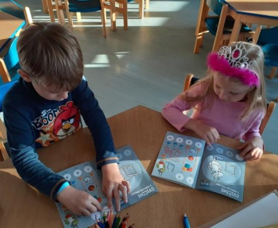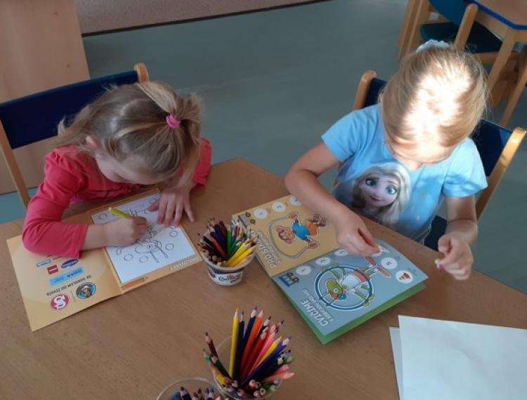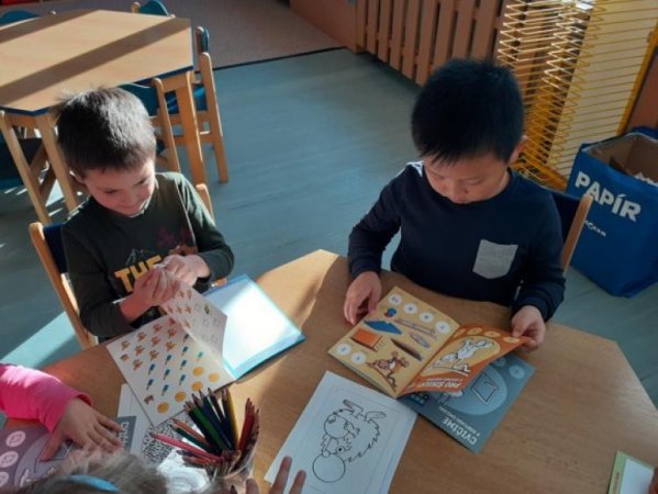V průběhu celého školního roku budou děti pracovat se sešity z České obce sokolské. Motivací ve dvou sešitech jsou jim zvířátka. První sešit je se samolepkami, které si děti lepí za splněné úkoly, zejméma zaměřené na tělovýchovné aktivity, a druhý sešit je k procvičení jemné motoriky a logického uvažování.