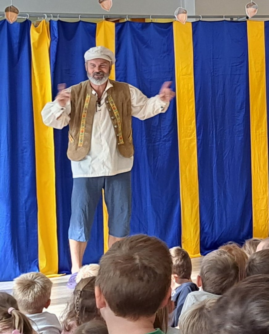 Kategorie: Sluníčka | Autor: Bc. Eva Todtová | Zveřejněno: 18. 10. 2023 POHÁDKY Z KLOBOUKU Pásmo humorných pohádek zahrálo dětem divadlo Kolem. Galerie