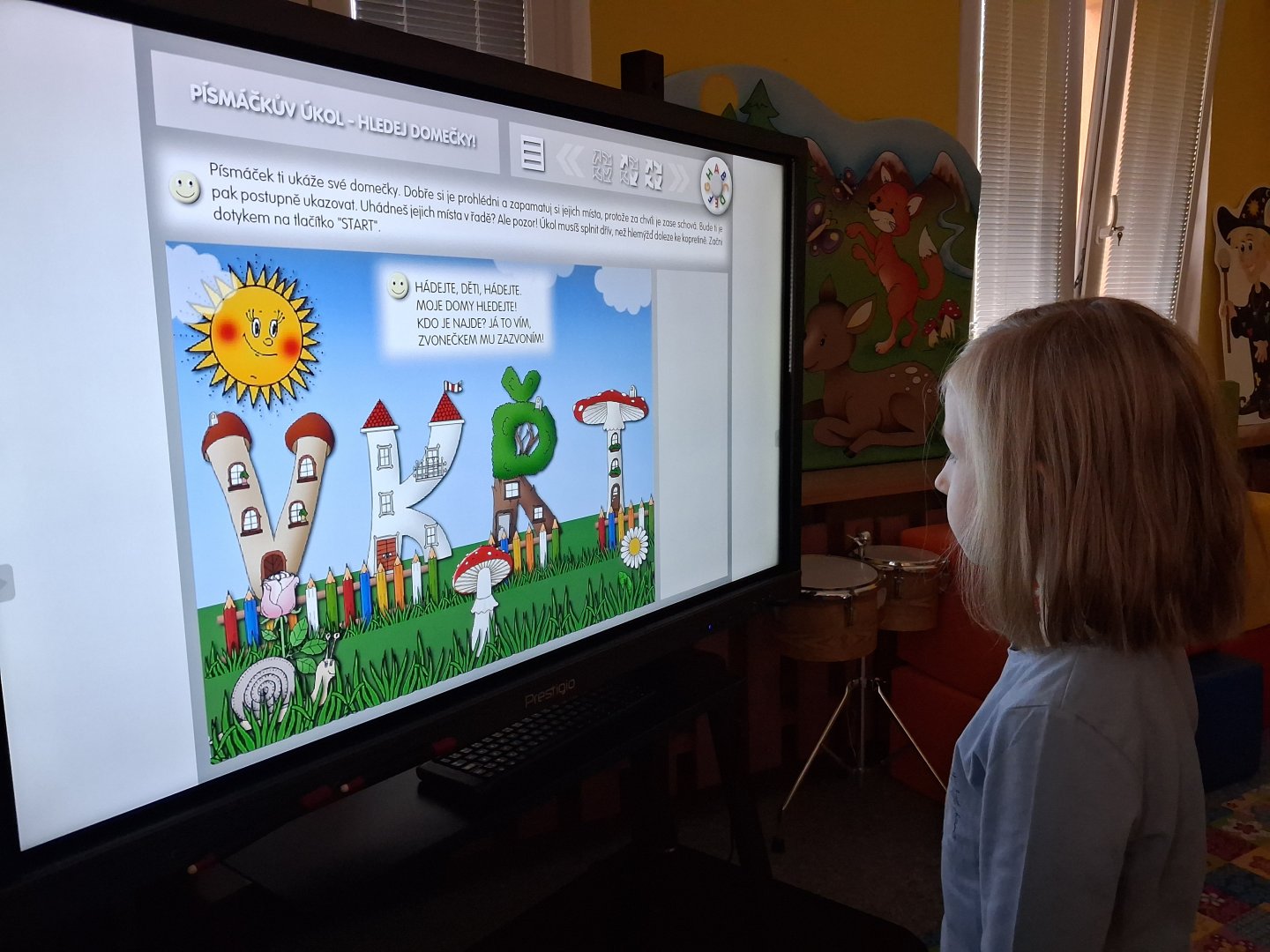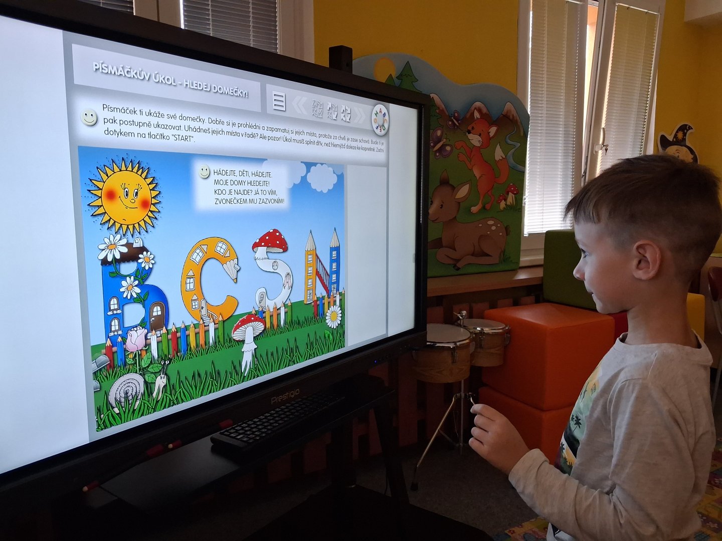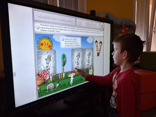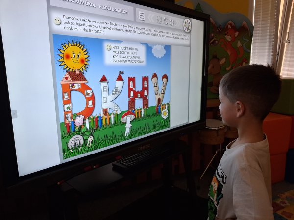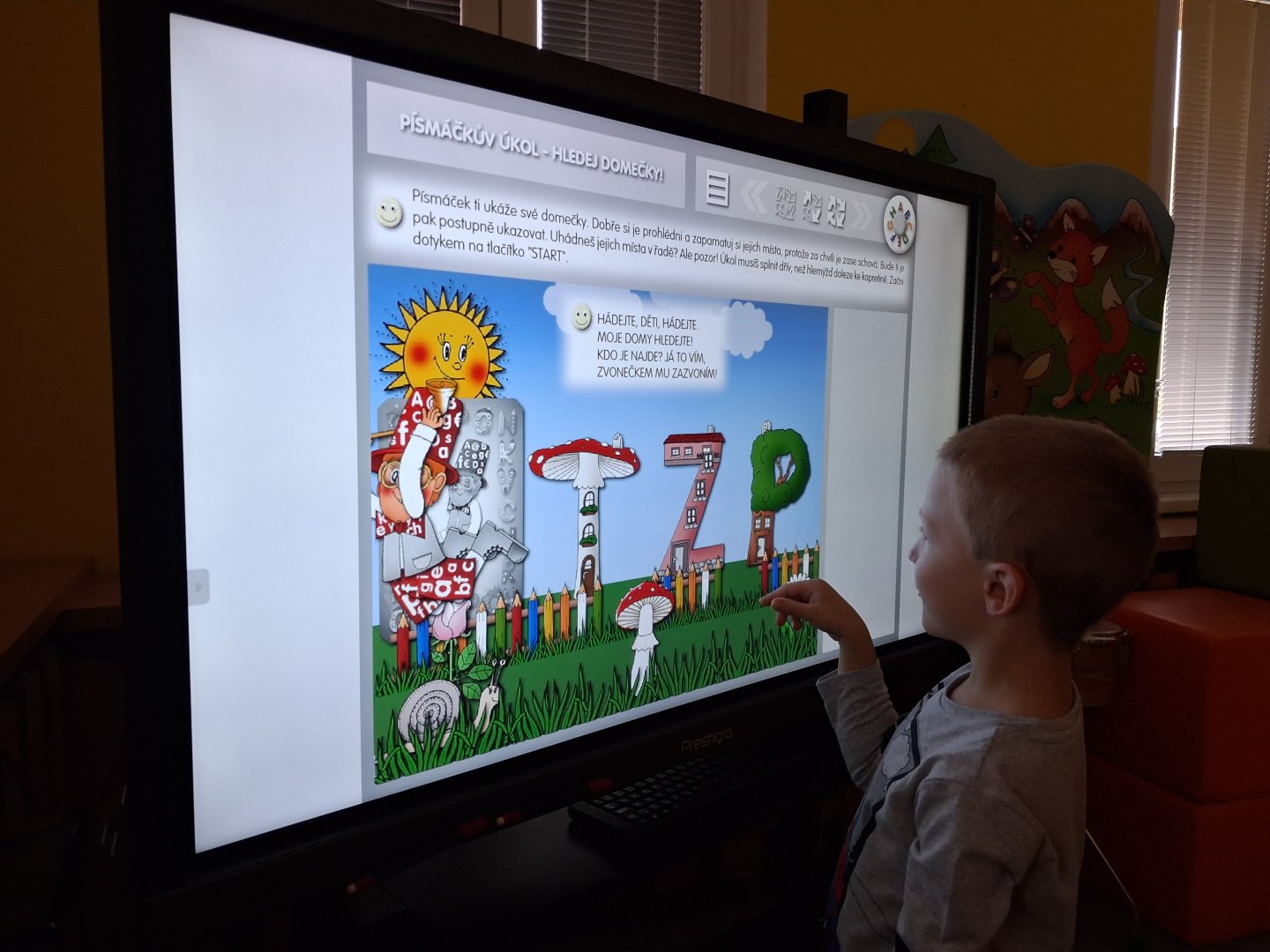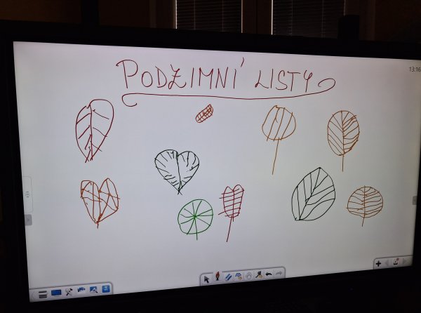 Děti dnes byly poprvé na kroužku "Kouzelná tabule", který bude probíhat v logopedické třídě. Společně jsme si říkali, co budeme na kroužku dělat - kreslit, plnit úkoly ve vzdělávacích programech, ale také třeba tisknout obrázky, mluvit do mikrofonu a také, jak se budeme chovat - neskákat si do řeči, poslouchat kamarády. Dnes si děti nakreslily barevné podzimní listy a zahrály si postřehovou hru s Písmáčkem. Na závěr jsme si říkali, co se nám líbilo nejvíce, co se povedlo nebo naopak nepovedlo.