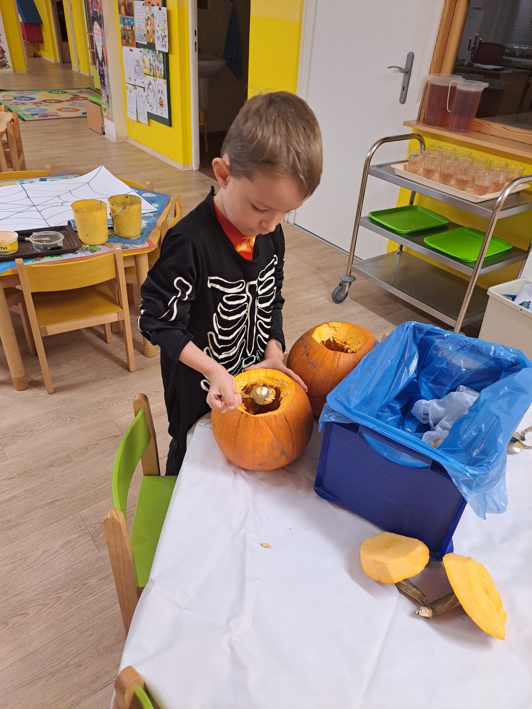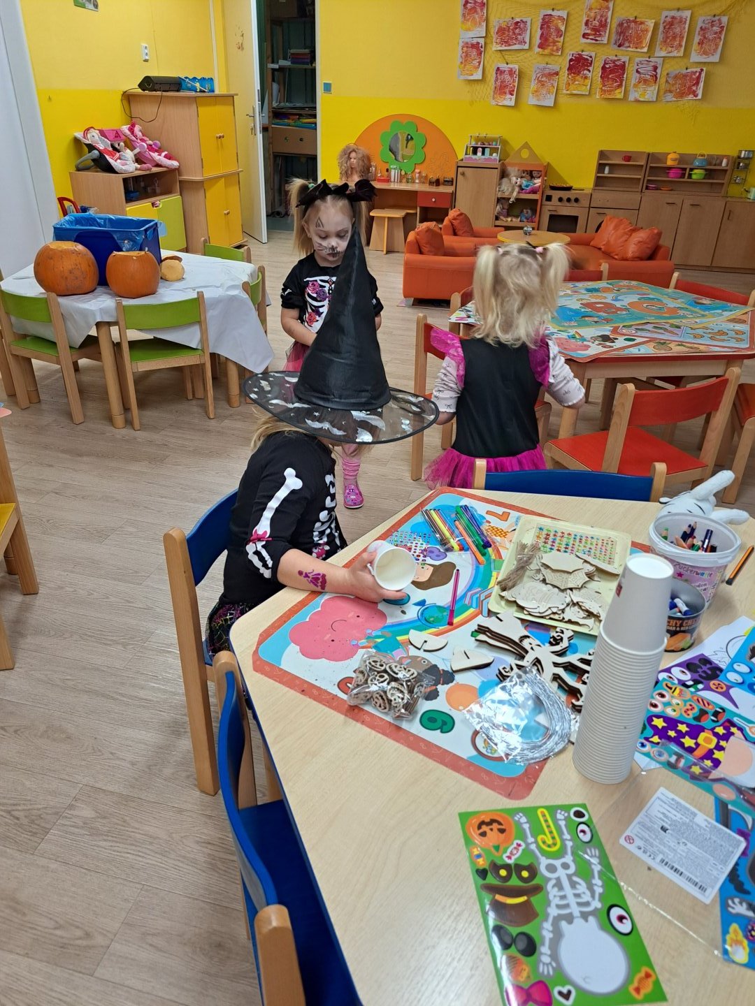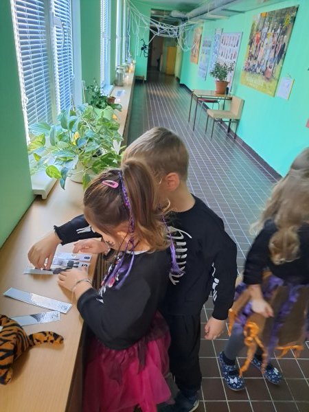 Podzimní aktivity děti zavedly do tématu týdne "Dráček Papíráček a do projektového dne "Halloween". Paní učitelka Michaela Štěpánová vytvořila Halloweenskou stezku plnou zábavných úkolů, které děti s nadšením a odvahou v nádherných kostýmech plnily. Rodičům děkujeme za podporu ve všech podobách.