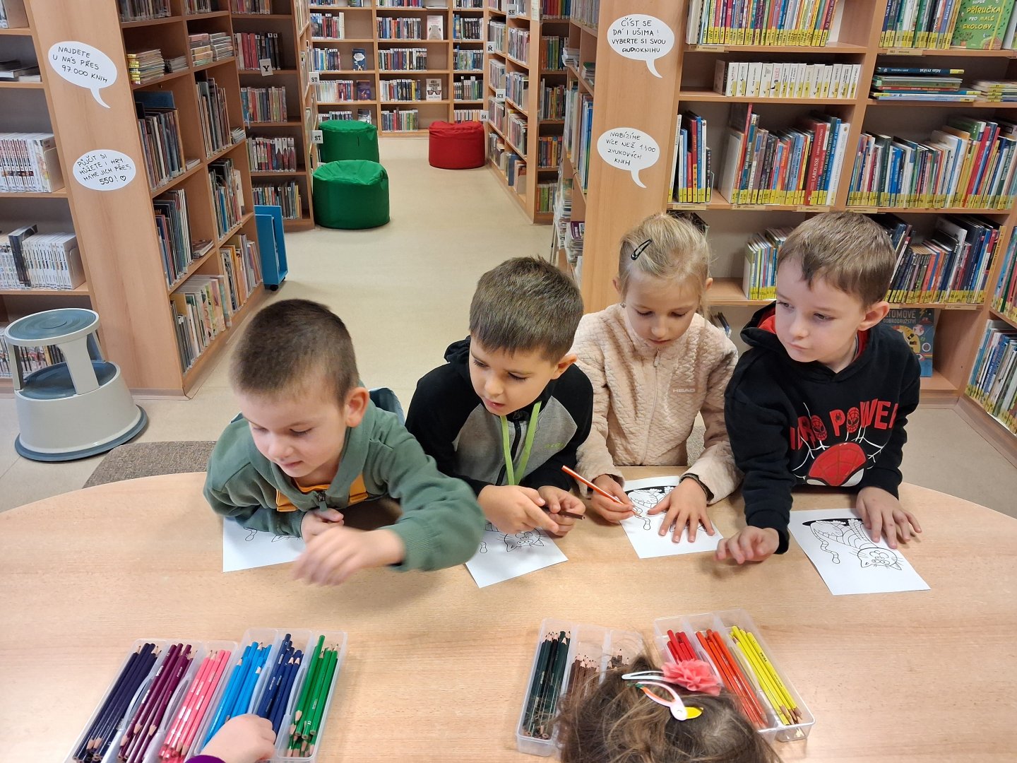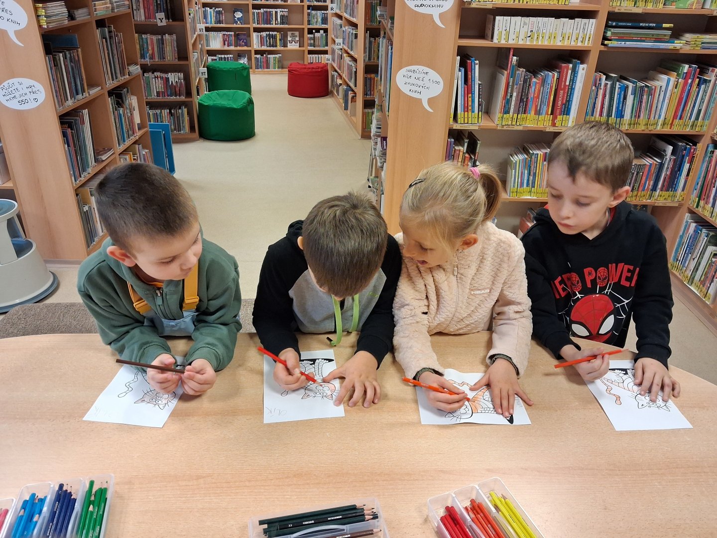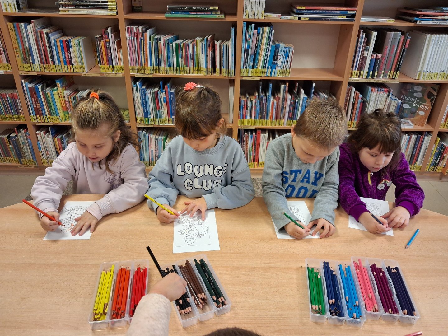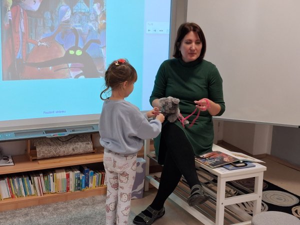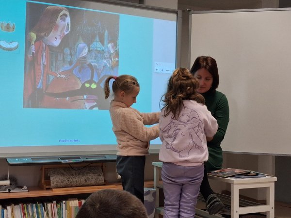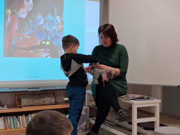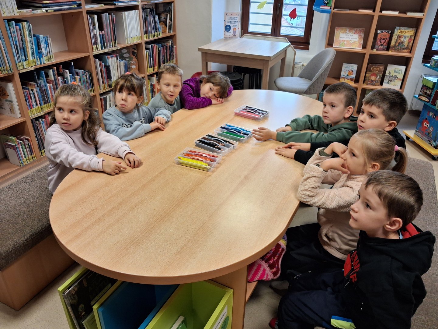 Kategorie: Sluníčka | Autor: Bc. Kassalová Simona | Zveřejněno: 21. 11. 2025 O vlkovi Dnes byly předškolní děti opět v Městské knihovně Žatec, kde si poslechly pohádku "O vlkovi, který vypadl z knížky". Děti plnily úkoly, odpovídaly na otázky a na závěr si vybarvily k pohádce omalovánku. Galerie