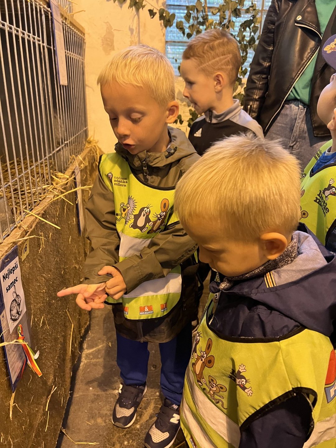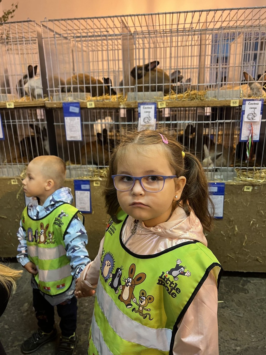 První den ve školce byl plný her a poznávání se s novými dětmi, které jsme společně přívítali ve třídě u Veverek. O vycházku jsme se šly s dětmi podívat na výstavu králíků, holubů a drůbeže od Českého svazu chovatelů. Výstava byla rozdělená do tří pater a tak si děti mohly prohlédnout opravdu velké množství různých zvířat jako byli králíci, holubi, papoušci nebo slepice. Velkou radost jim také udělalo když si mohli jednoho z králíků všichni pohladit. Cestou z výstavy jsme se zastavili ještě na dětském hřišti a nakonec jsme se vrátili do školky a dali medaile a odměny novým dětem, které s námi prožili svůj první den ve školce bez jediné slzičky.