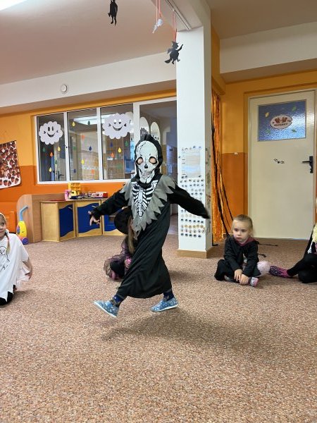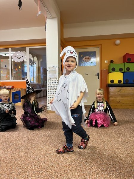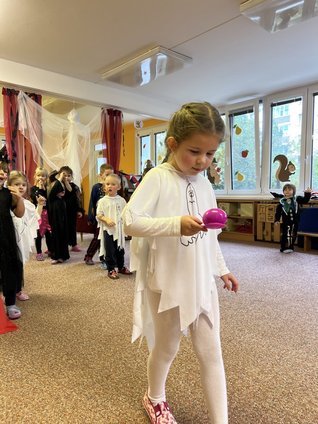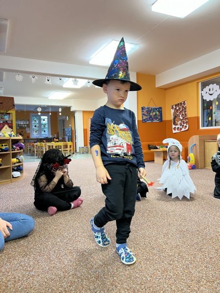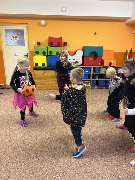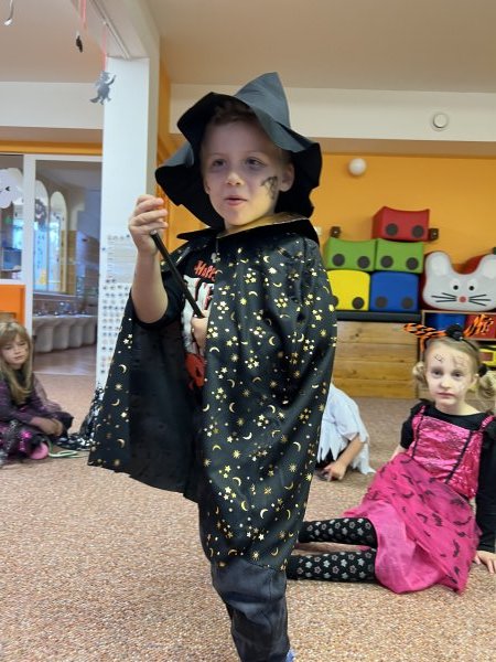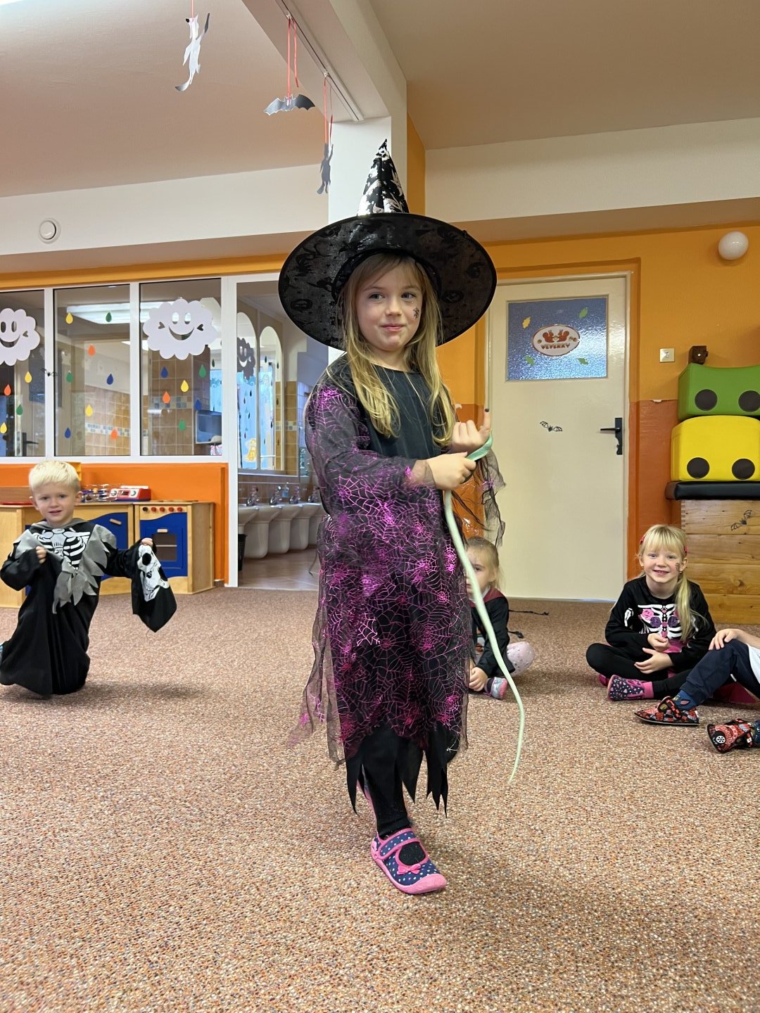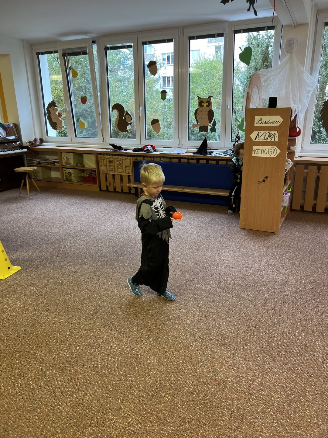 Dnes se u nás ve školce konal projektový den Halloween. Začali jsme přehlídkou kostýmů, všechny byli velmi originální a odměněny potleskem. Zahráli jsme si spouty her, hledali jsme ztracené netopýry a dokonce jsme si vyzkoušeli i famfrpál. Harryho Pottera jsme však měli jen jednoho, takže ostatní museli místo létání běhat:). Zasoutěžili jsme si v týmech a celé dopoledne jsme zakončili pořádnou diskotékou. Děti byli za celý den odměněné diplomem a balíčkem s překvapením. Všichni jsme si náš trochu strašidelný den moc užili.