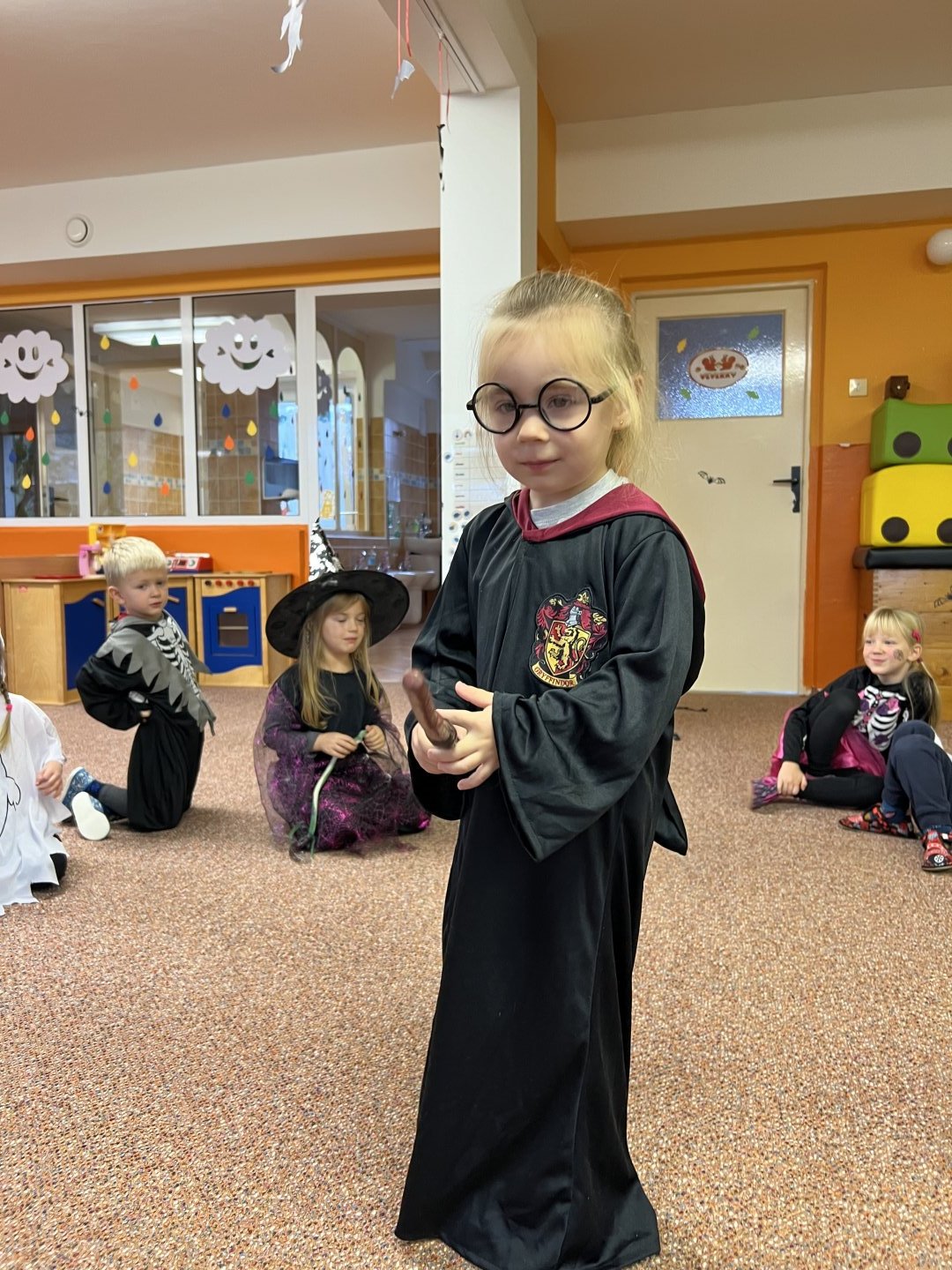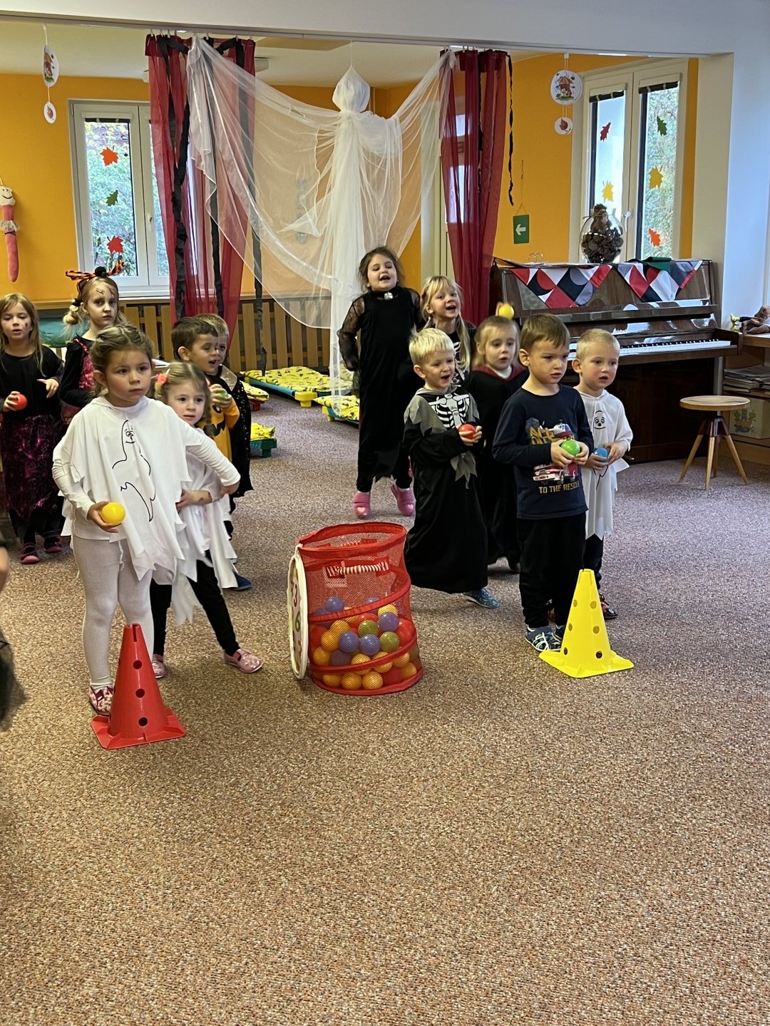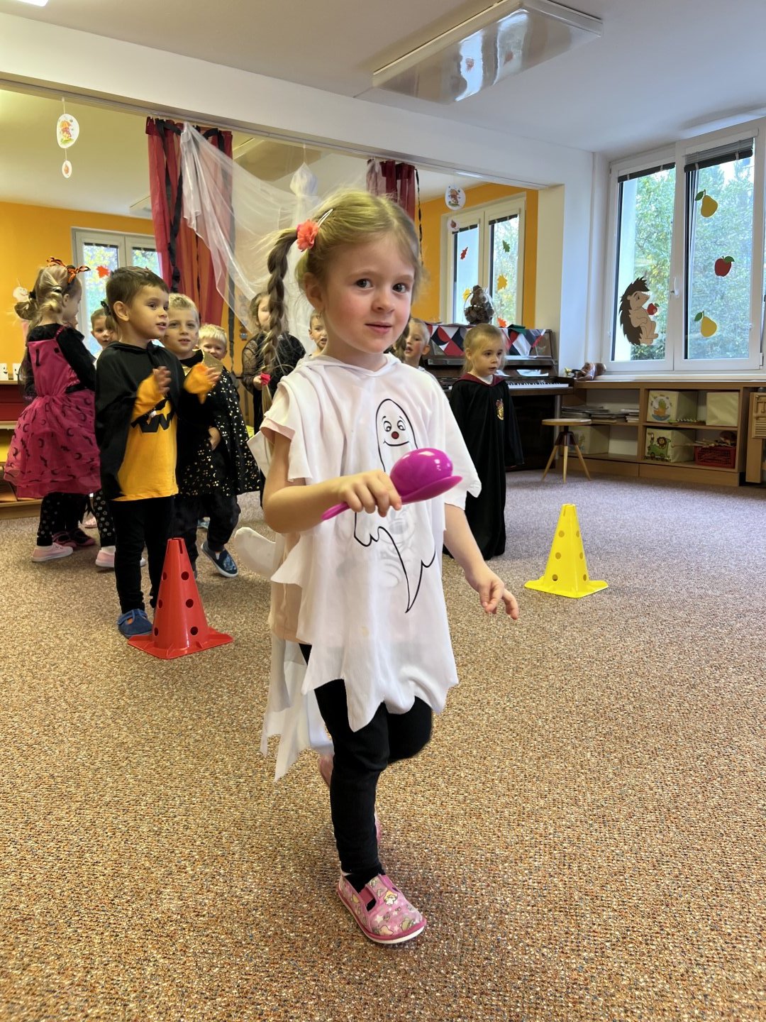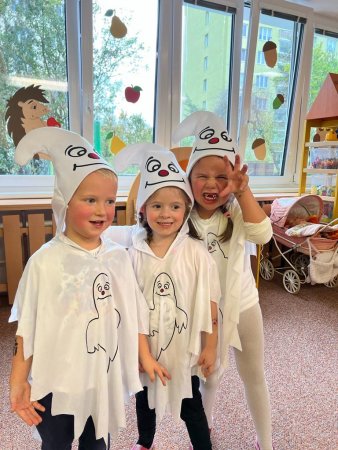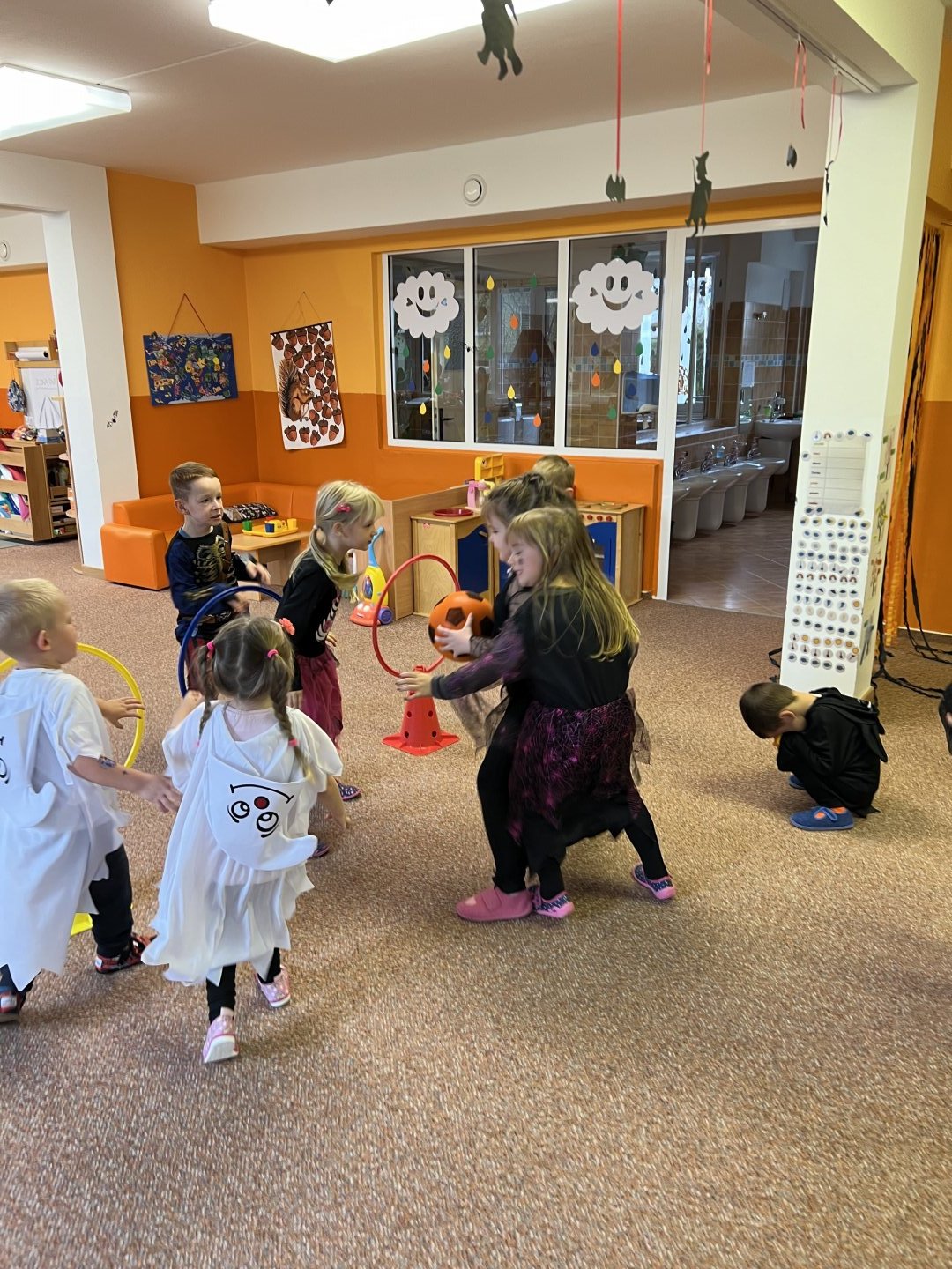 Dnes se u nás ve školce konal projektový den Halloween. Začali jsme přehlídkou kostýmů, všechny byli velmi originální a odměněny potleskem. Zahráli jsme si spouty her, hledali jsme ztracené netopýry a dokonce jsme si vyzkoušeli i famfrpál. Harryho Pottera jsme však měli jen jednoho, takže ostatní museli místo létání běhat:). Zasoutěžili jsme si v týmech a celé dopoledne jsme zakončili pořádnou diskotékou. Děti byli za celý den odměněné diplomem a balíčkem s překvapením. Všichni jsme si náš trochu strašidelný den moc užili.