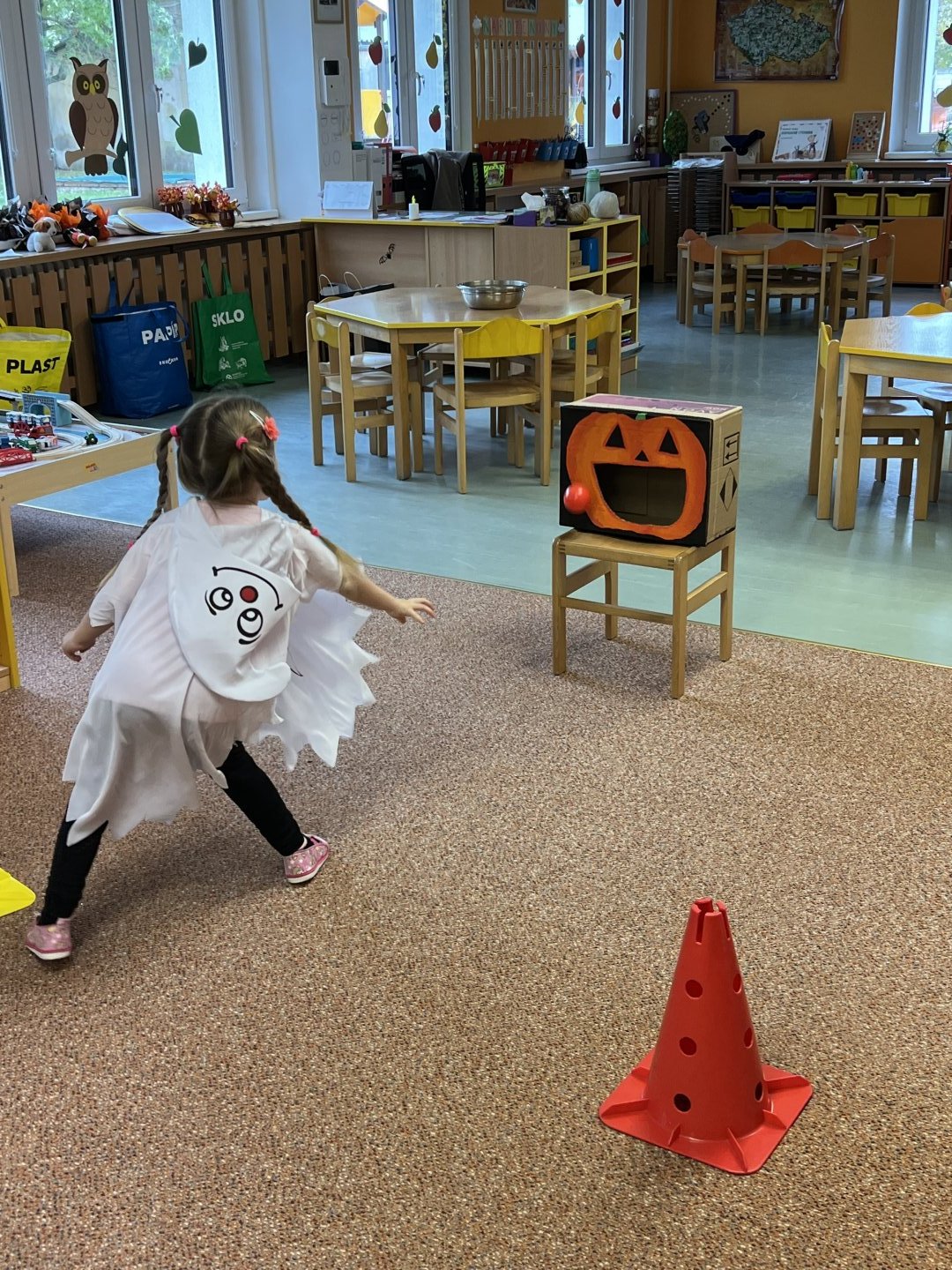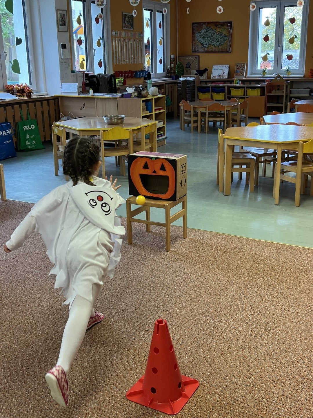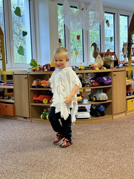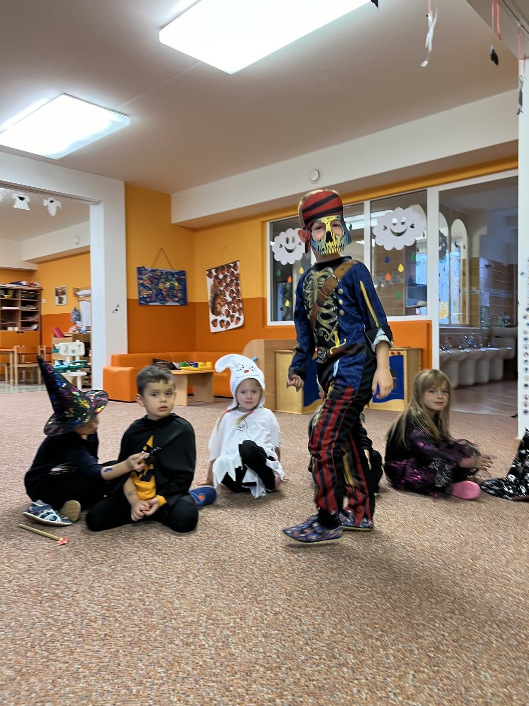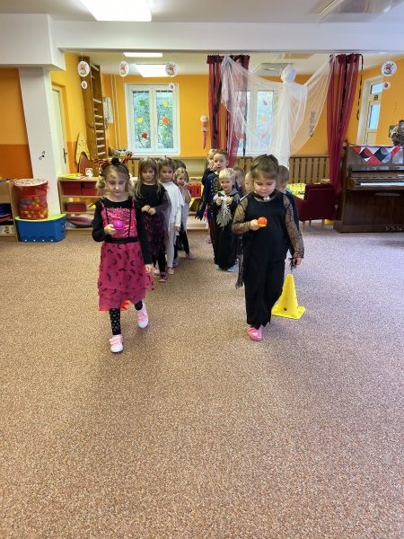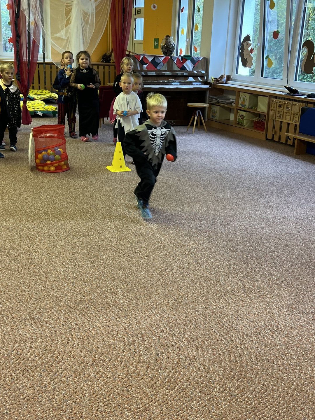 Dnes se u nás ve školce konal projektový den Halloween. Začali jsme přehlídkou kostýmů, všechny byli velmi originální a odměněny potleskem. Zahráli jsme si spouty her, hledali jsme ztracené netopýry a dokonce jsme si vyzkoušeli i famfrpál. Harryho Pottera jsme však měli jen jednoho, takže ostatní museli místo létání běhat:). Zasoutěžili jsme si v týmech a celé dopoledne jsme zakončili pořádnou diskotékou. Děti byli za celý den odměněné diplomem a balíčkem s překvapením. Všichni jsme si náš trochu strašidelný den moc užili.