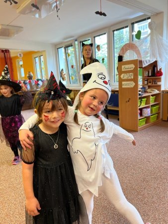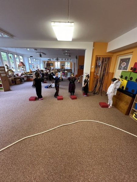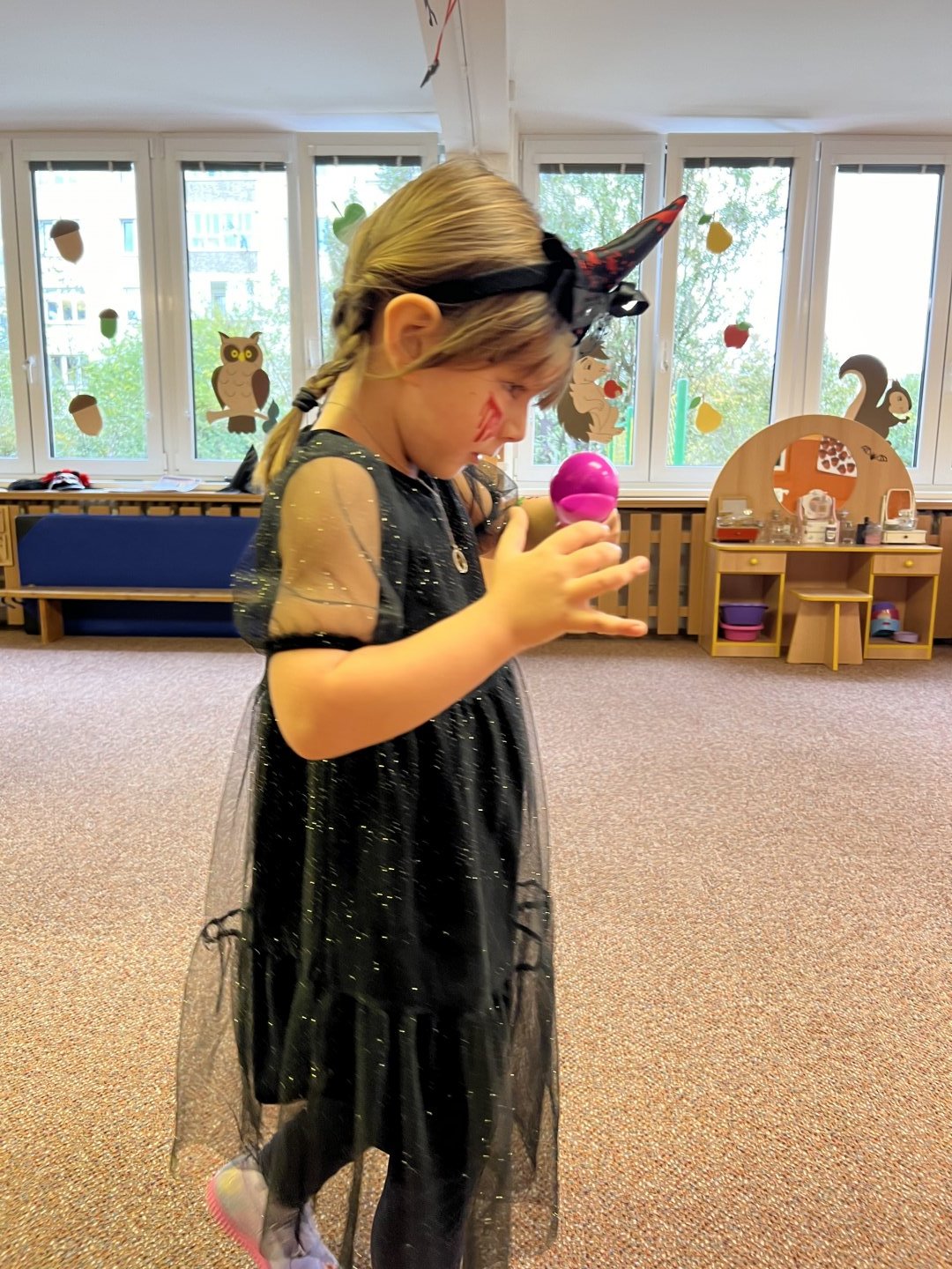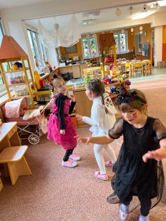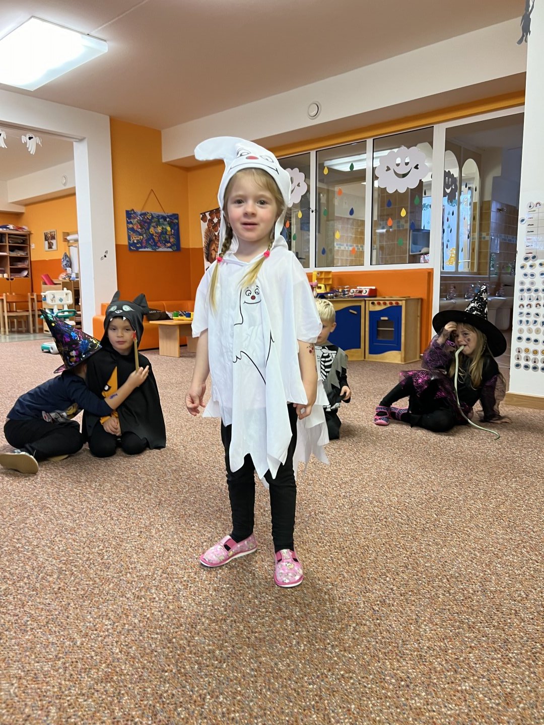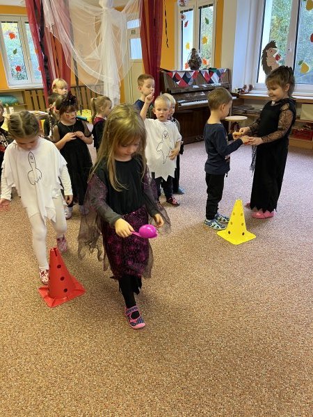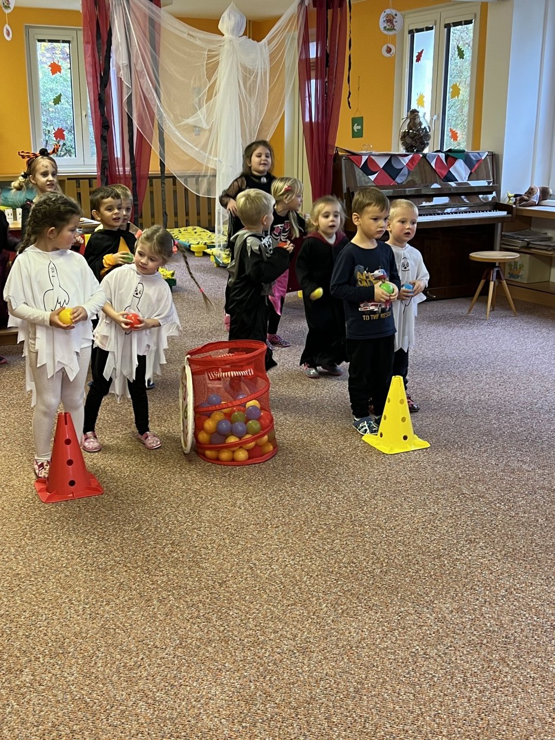 Dnes se u nás ve školce konal projektový den Halloween. Začali jsme přehlídkou kostýmů, všechny byli velmi originální a odměněny potleskem. Zahráli jsme si spouty her, hledali jsme ztracené netopýry a dokonce jsme si vyzkoušeli i famfrpál. Harryho Pottera jsme však měli jen jednoho, takže ostatní museli místo létání běhat:). Zasoutěžili jsme si v týmech a celé dopoledne jsme zakončili pořádnou diskotékou. Děti byli za celý den odměněné diplomem a balíčkem s překvapením. Všichni jsme si náš trochu strašidelný den moc užili.