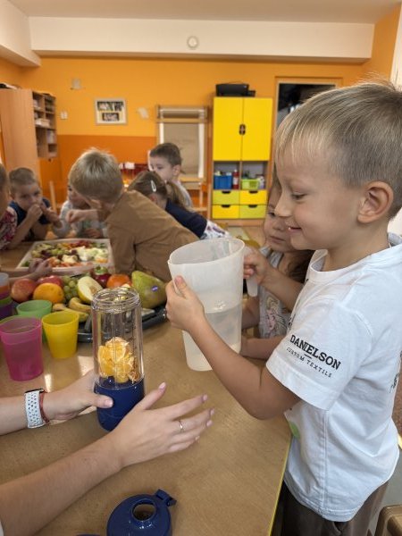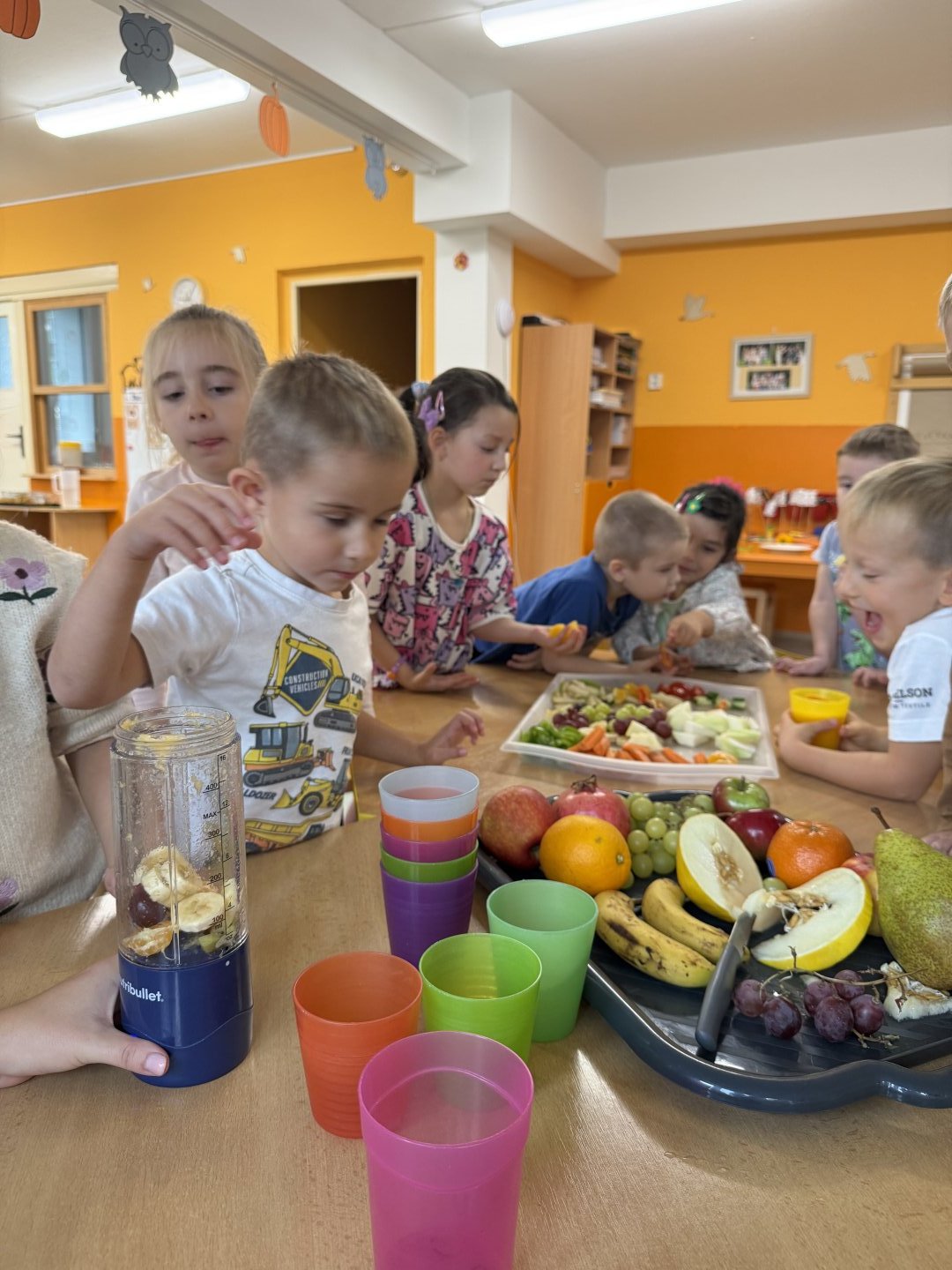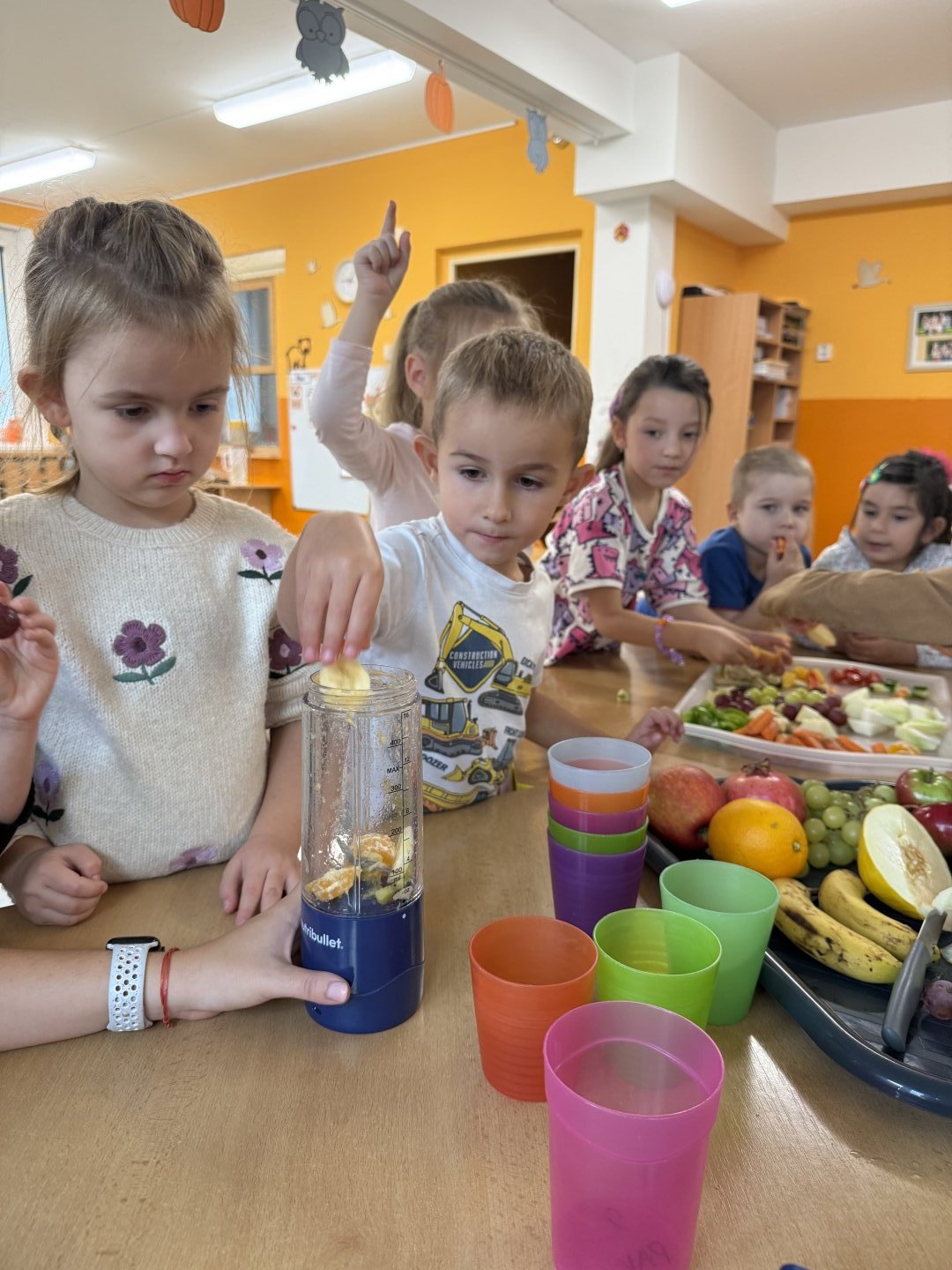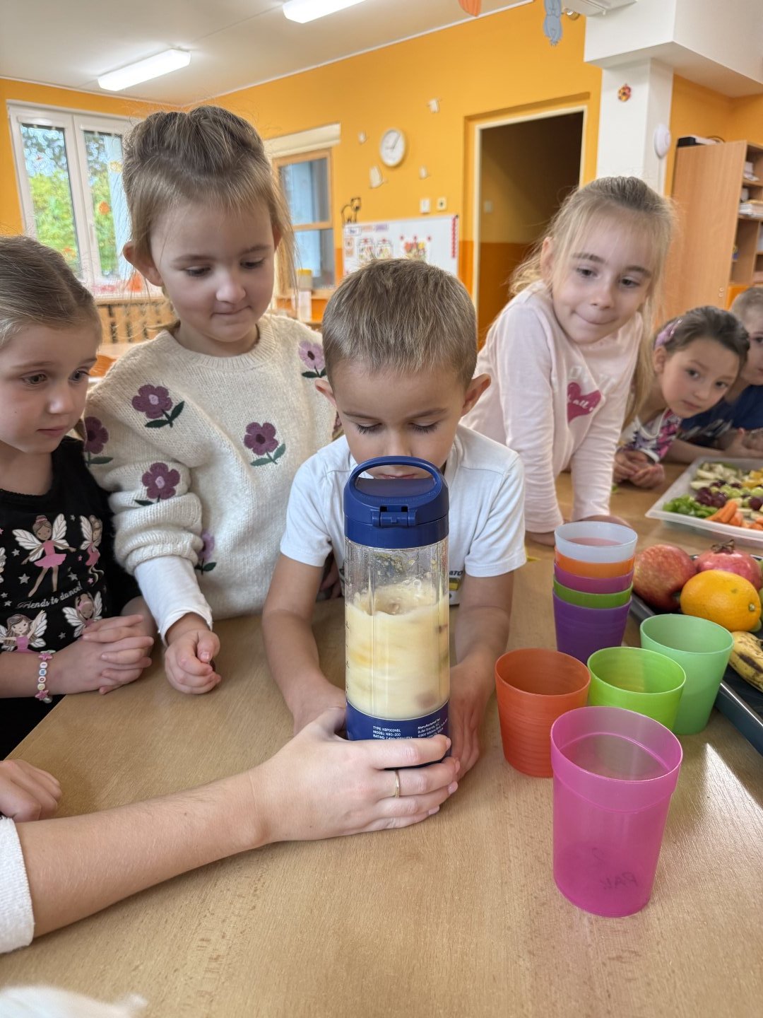 Nakonec si každý mohl namíchat vlastní ovocný koktejl z oblíbených ingrediencí. Míchali jsme, ochutnávali a zjišťovali, jaké kombinace chutí nám nejvíce vyhovují. Všichni si pochutnali a zároveň se naučili něco nového o zdravém stravování.