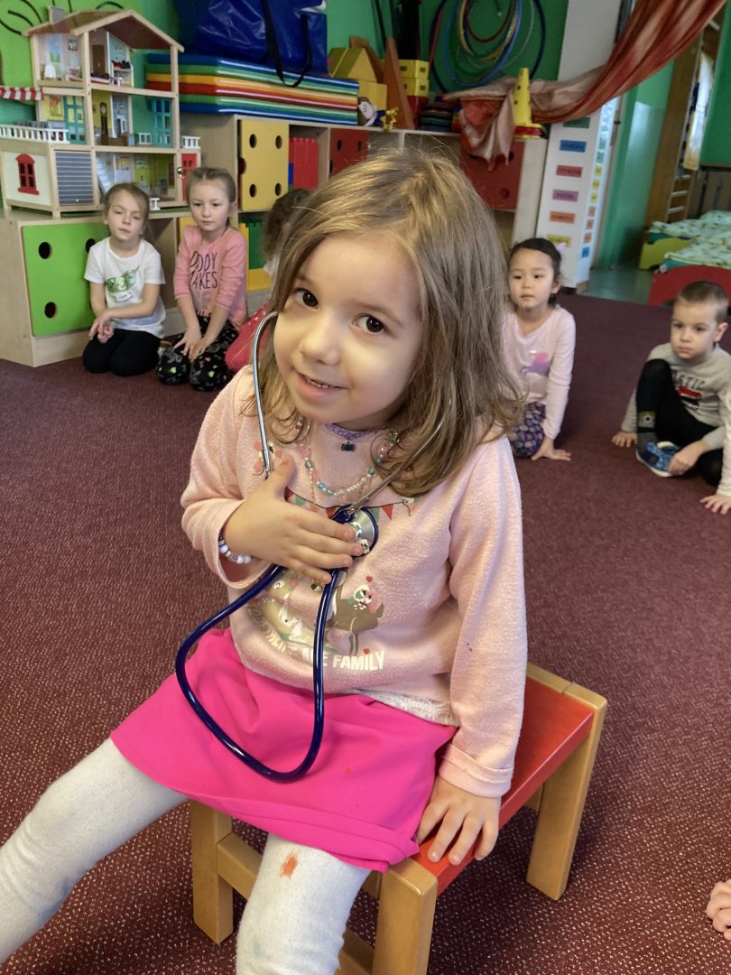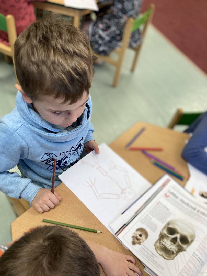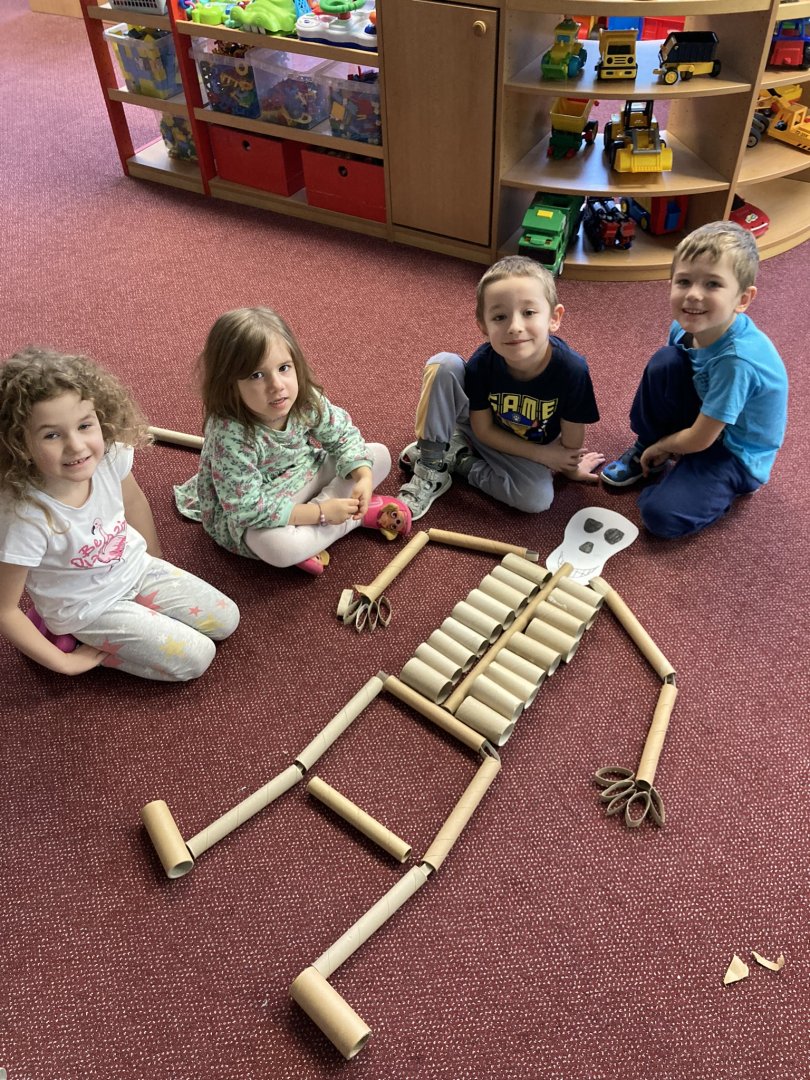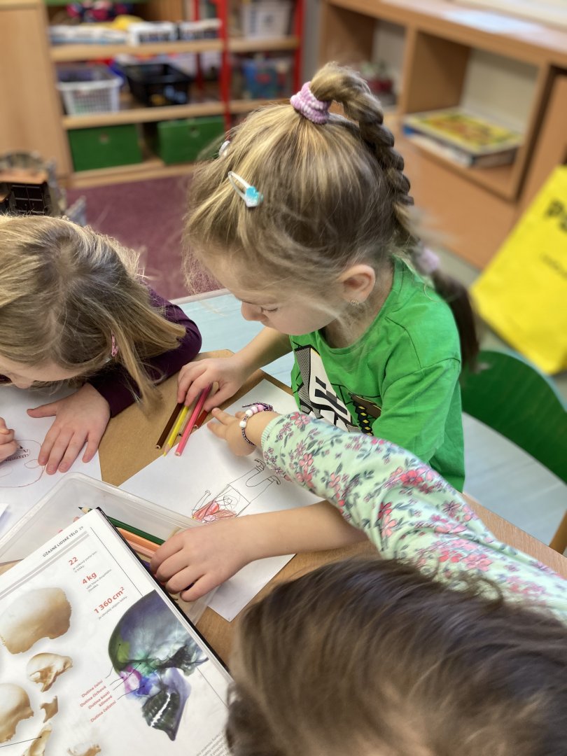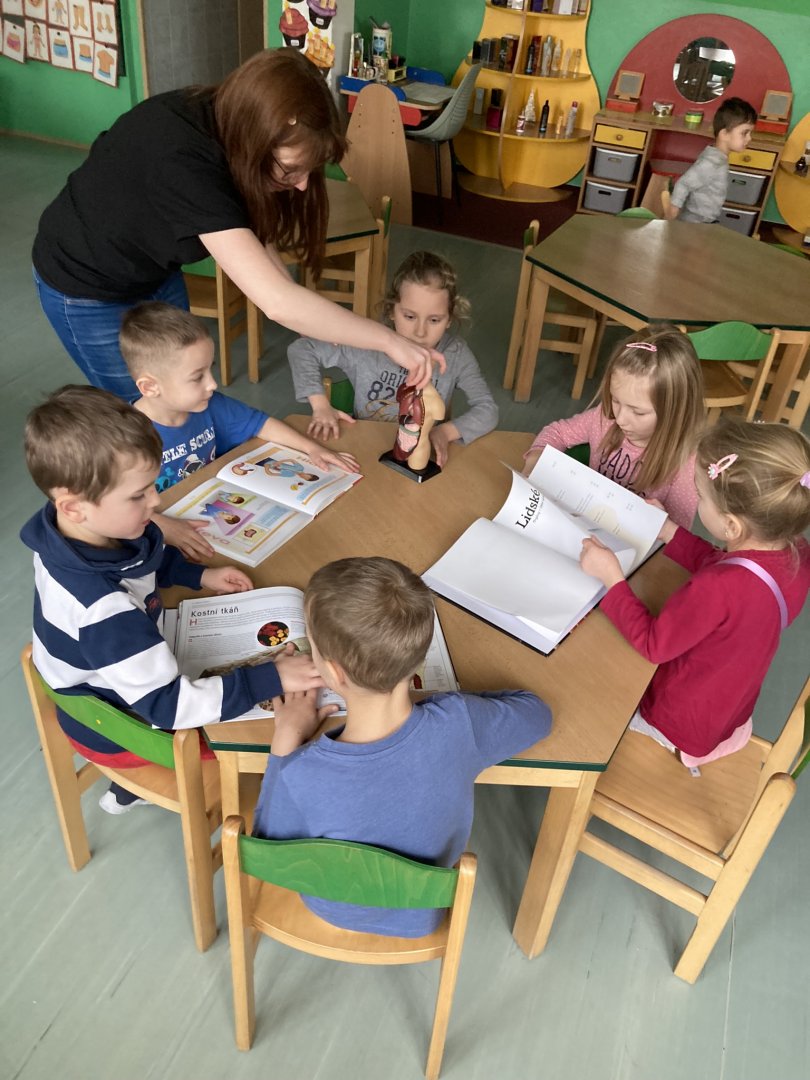 Zjišťovali jste někdy, jak vlastně funguje naše lidské tělo? Naše dětičky si některé věci zkusily na vlastní kůži. Děti zajímala stavba kostry v těle, kterou si zkusily i samy postavit pomocí roliček od toaletního papíru, vyzkoušely si pomocí baterky zjistit, jakou mají stavbu žil v těle a také si každý z dětí poslechlo pomocí stetoskopu svůj tlukot srdíčka.