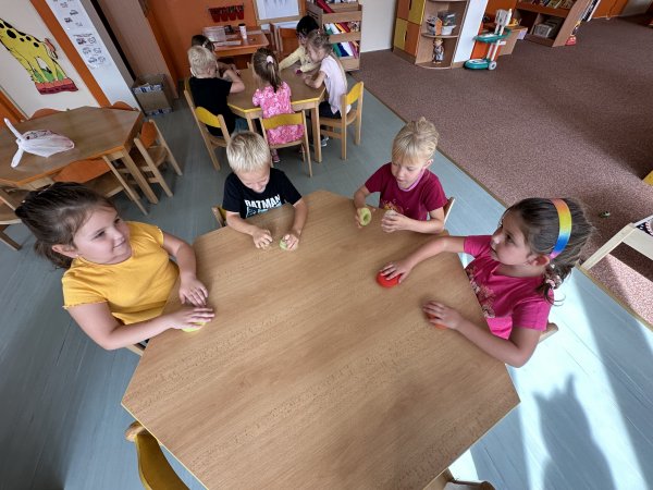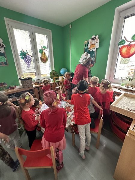 A máme skoro za sebou další měsíc. V říjnu jsme se naučili spoustu zajímavých věcí o podzimu a jeho pokladech. Uspořádali jsme ve třídě jablíčkový den, kdy děti v červeném přišly do školky, tvořily jablíčko, ochutnávaly poklady ze zahrádky a nakonec si s paní učitelkami udělaly jablíčkový džus 🙂