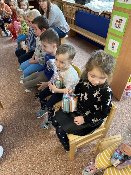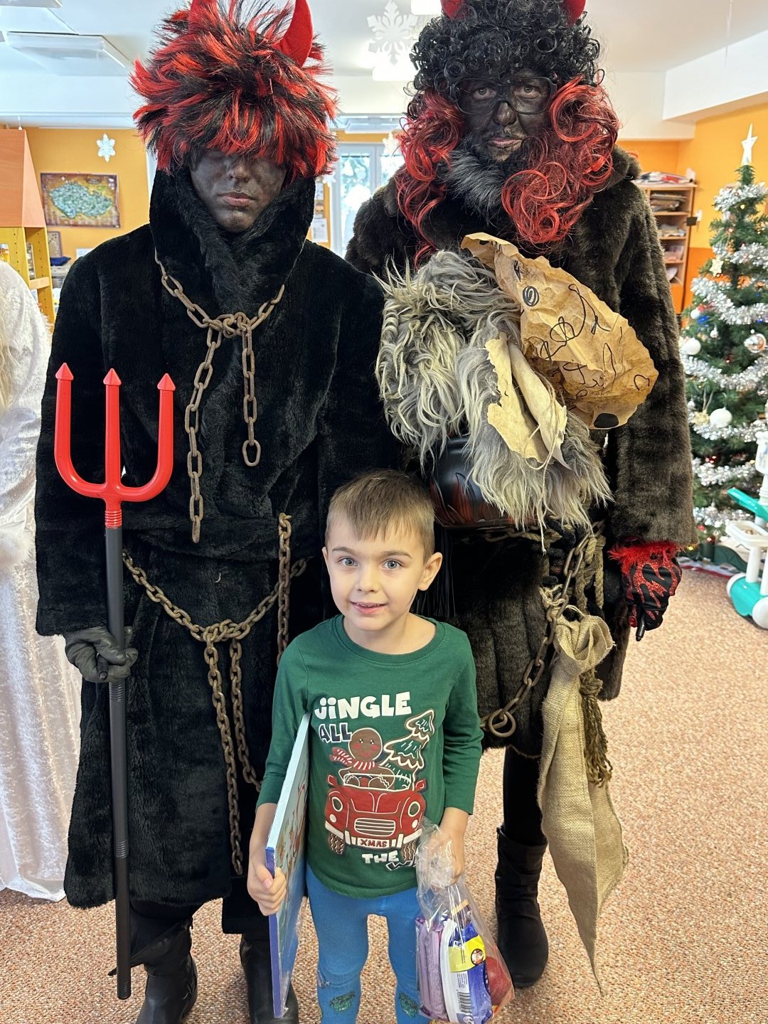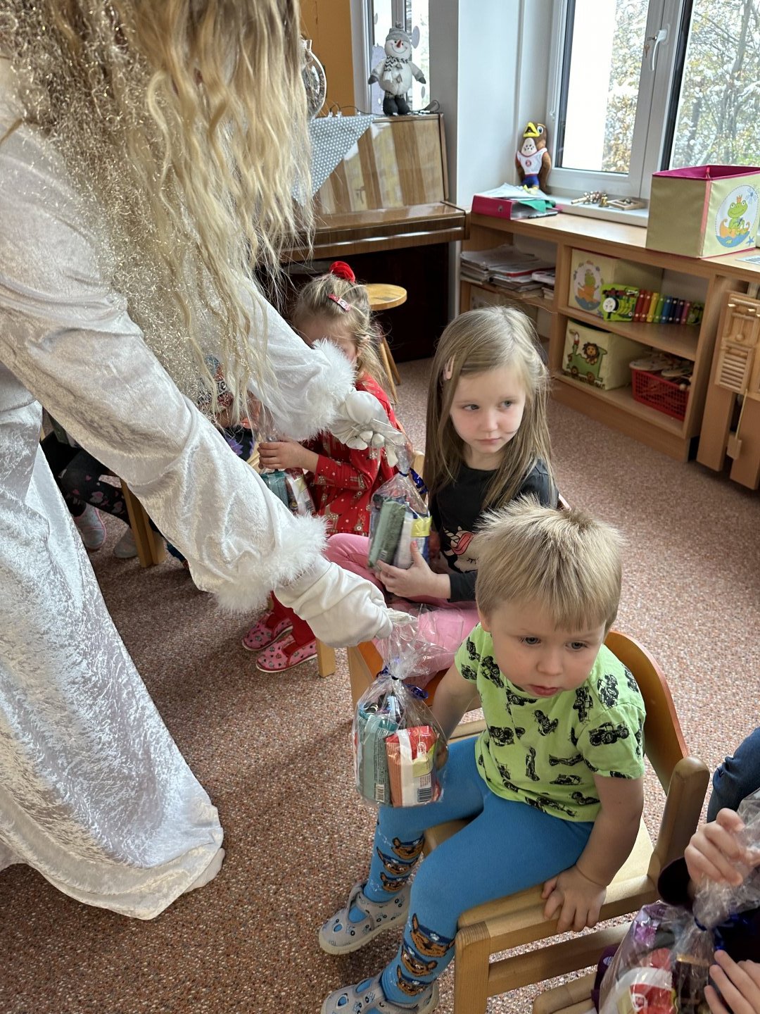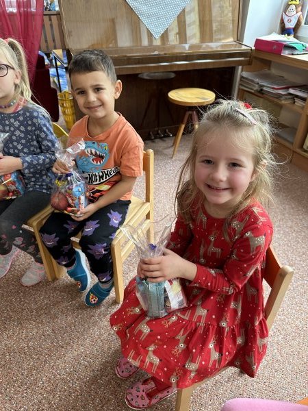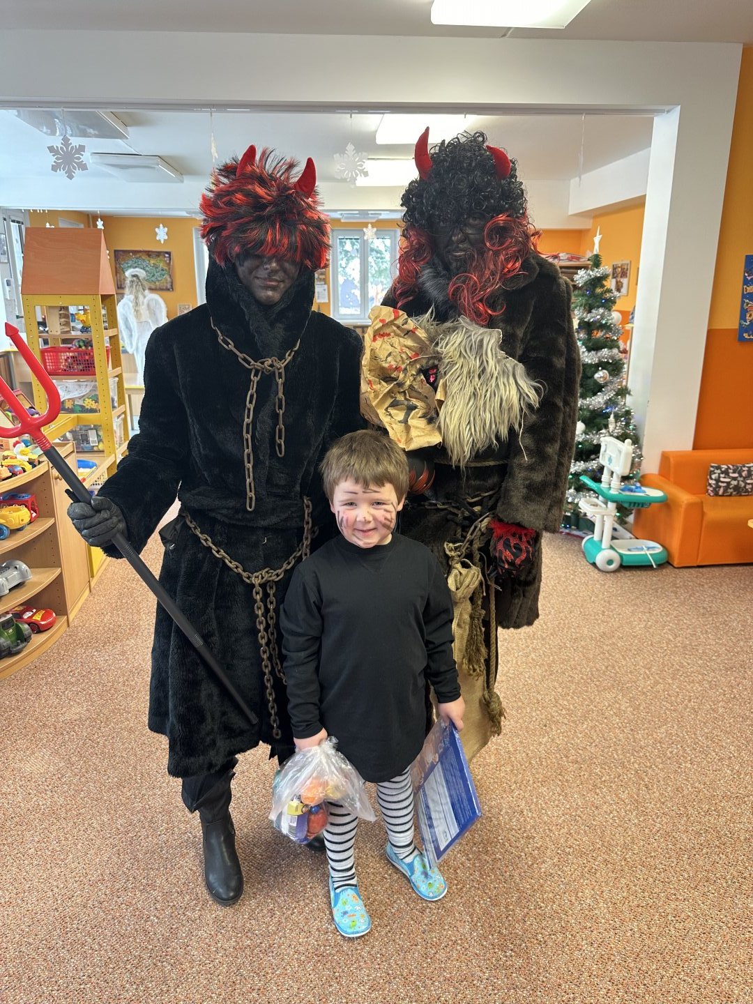Minulý týden jsme měli ve školce vzácnou návštěvu. Přišel se na nás podívat Mikuláš s andělem. Samozřejmě nechyběli ani dva čertíci, kteří po celodenním řádění ve školce dostali pořádný hlad. Mikuláš dětem rozdal spoustu sladkostí za statečnost a děti mu pro radost zazpívaly písničku.