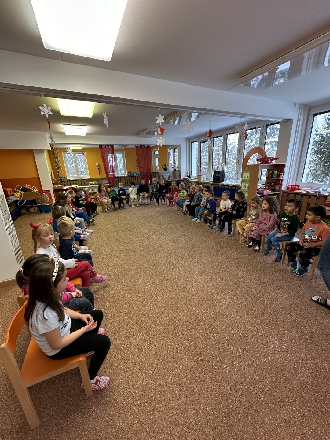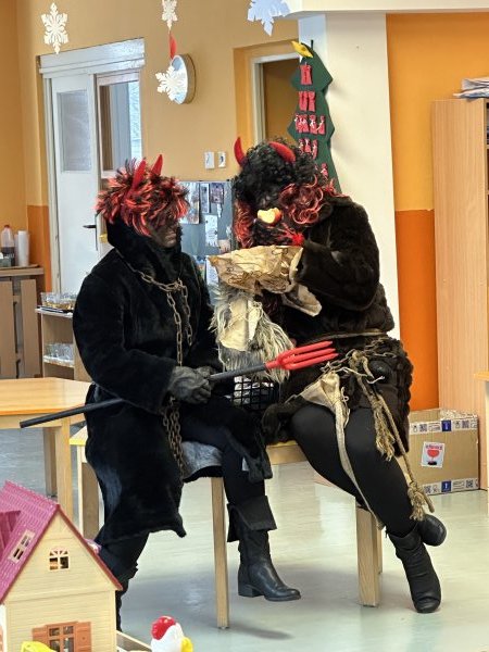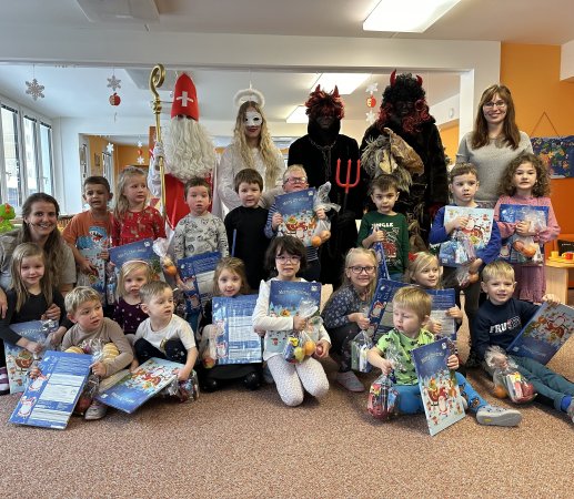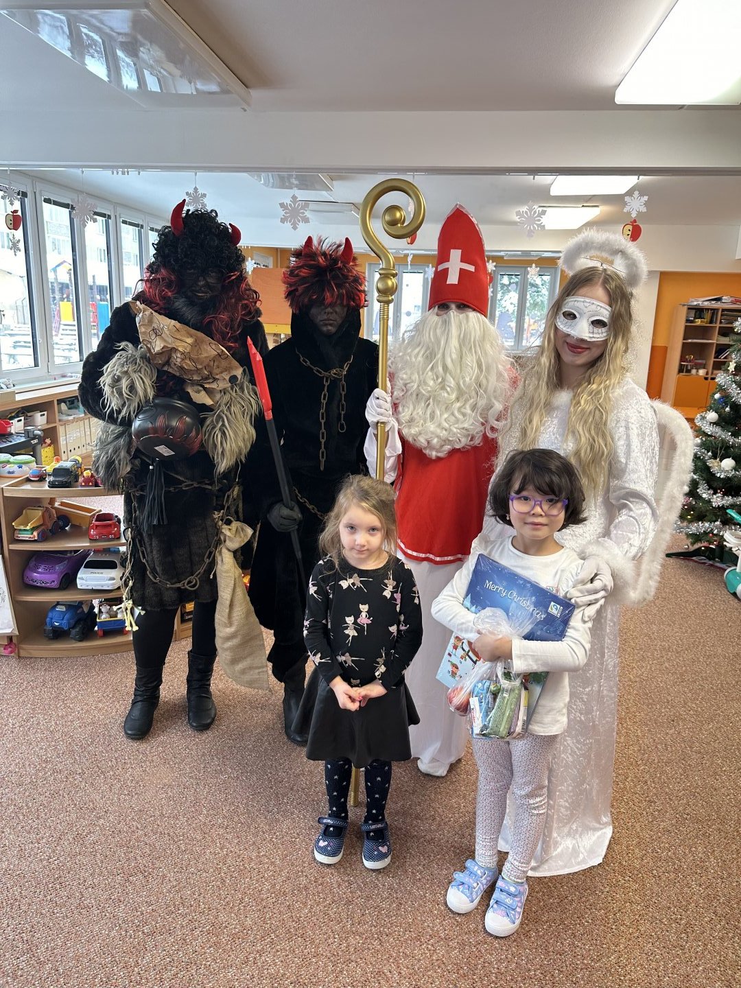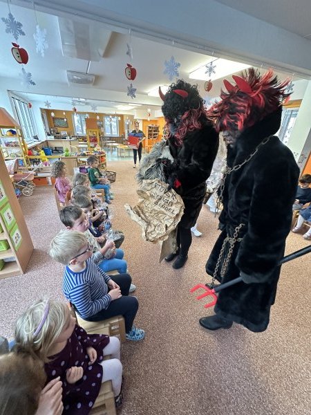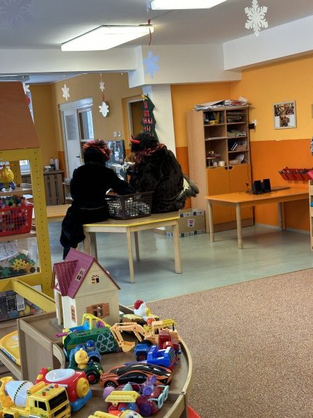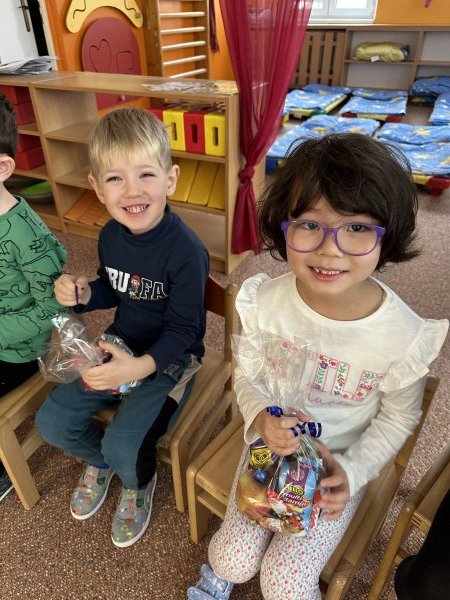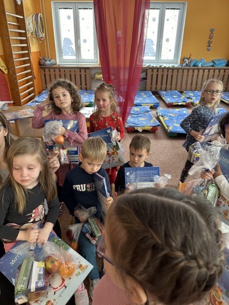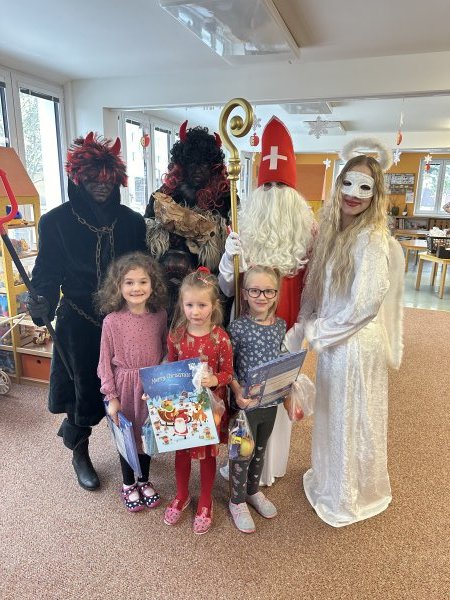 Minulý týden jsme měli ve školce vzácnou návštěvu. Přišel se na nás podívat Mikuláš s andělem. Samozřejmě nechyběli ani dva čertíci, kteří po celodenním řádění ve školce dostali pořádný hlad. Mikuláš dětem rozdal spoustu sladkostí za statečnost a děti mu pro radost zazpívaly písničku.