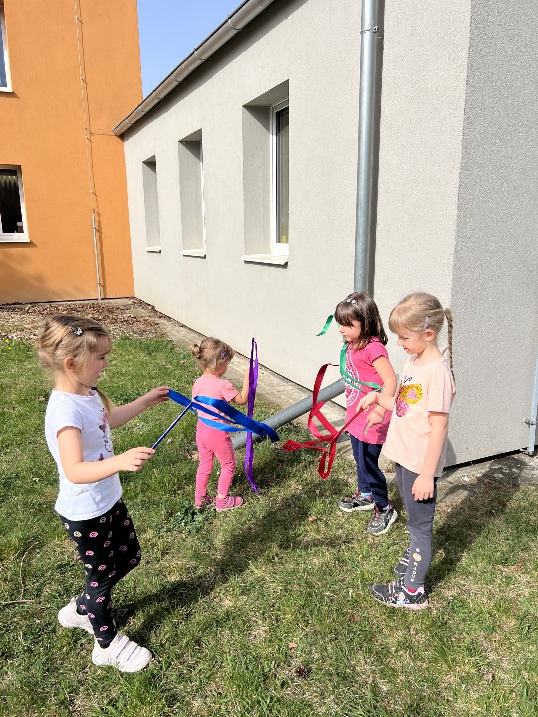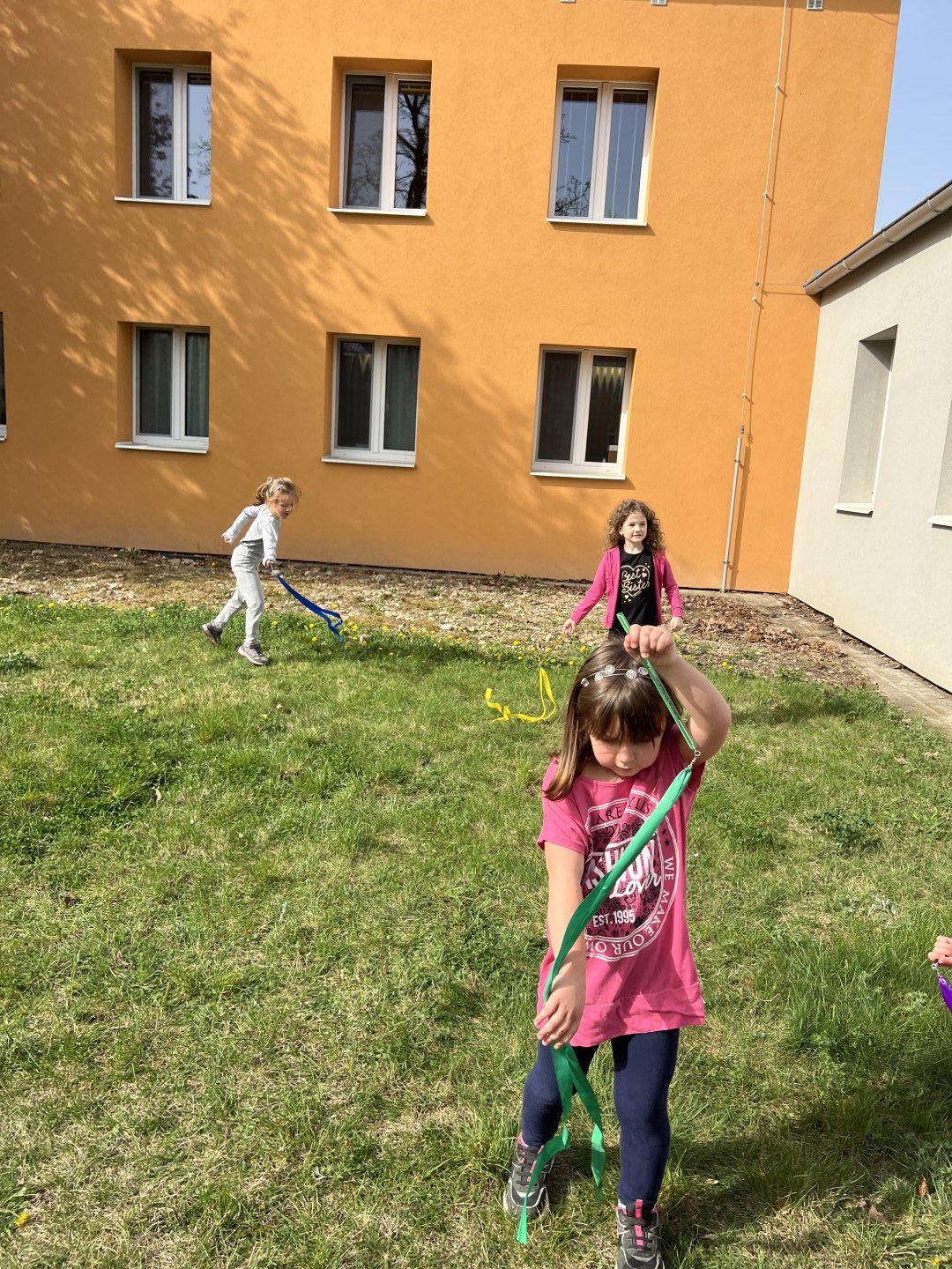 Duben jsme začali velice aktivně. S dětmi jsme navštívily řeku a její opeřené obyvatele, hřiště u koupaliště ale také jsme nezahálely ani ve školce. Využily jsme spoustu sportovních pomůcek, které děti moc baví. Nakonec se k našemu sportování s obrovským nadšením připojily i veverky 😊
