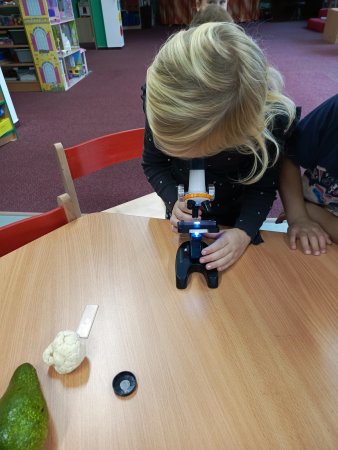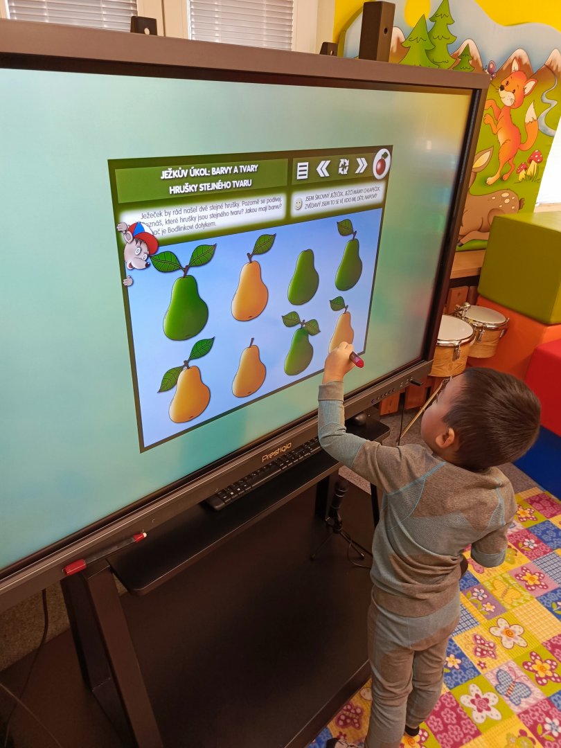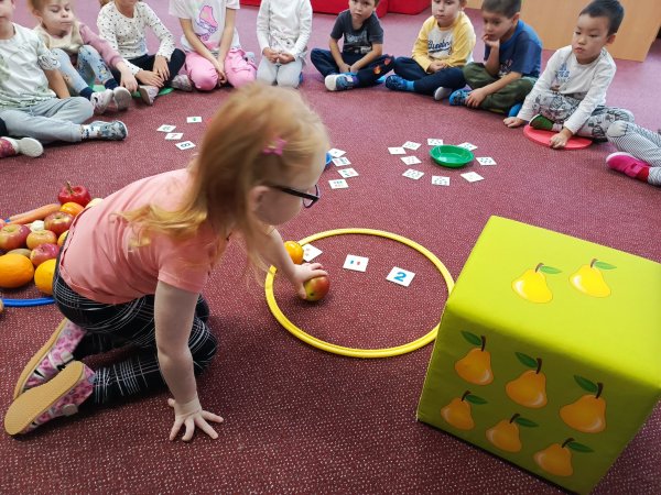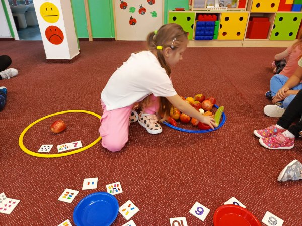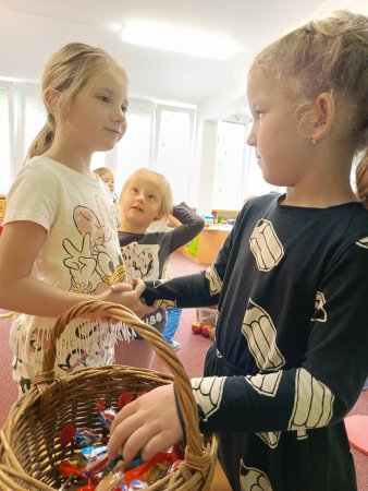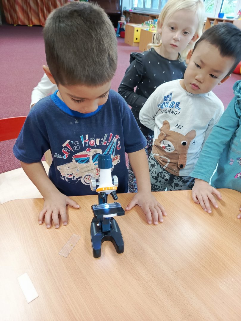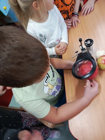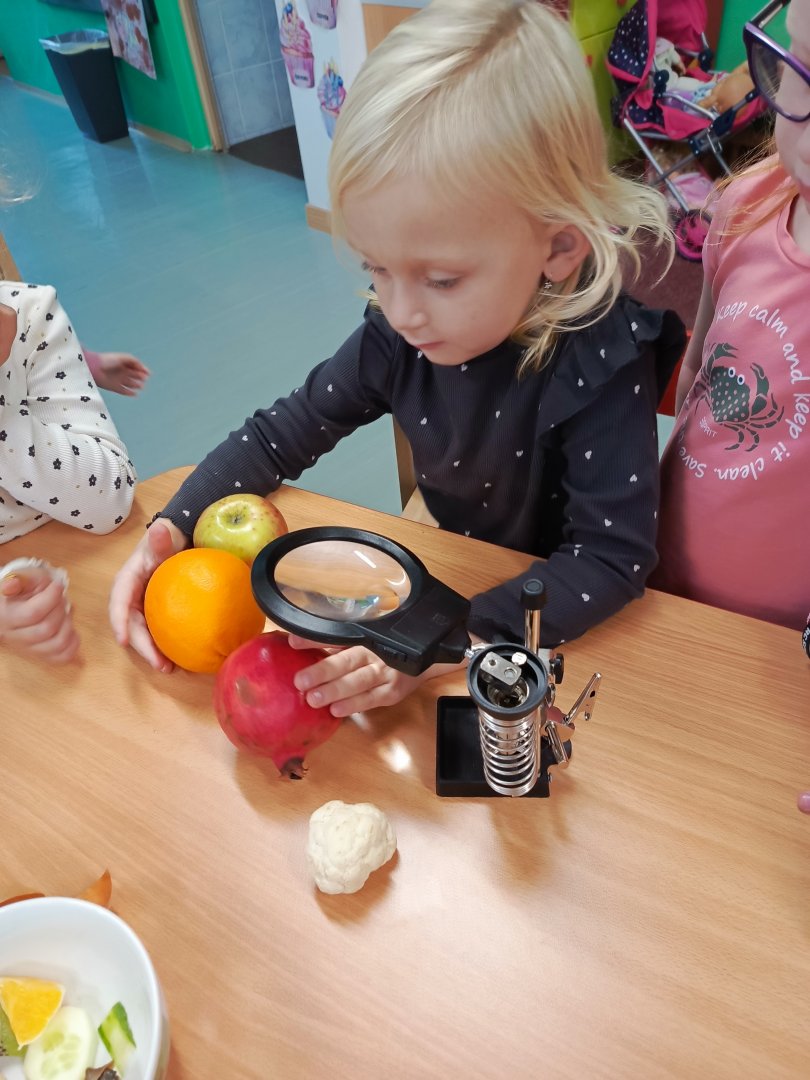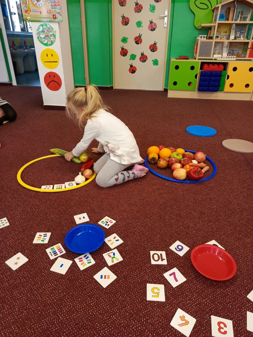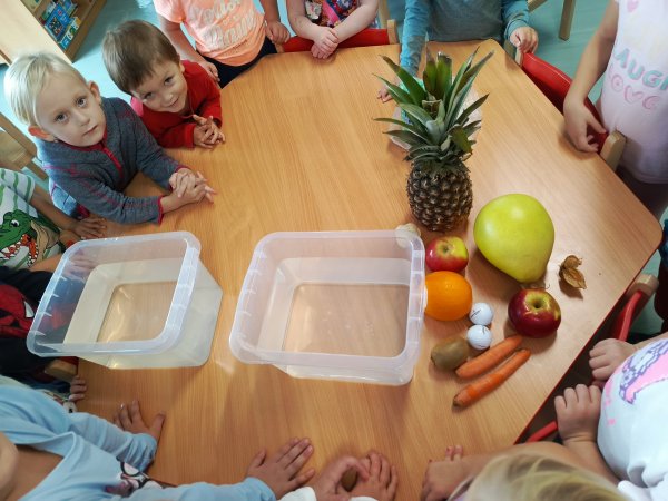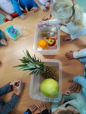 Tento týden jsme se věnovali ovoci a zelenině. Děti se seznámily s různou zeleninou a ovocem i exotickým. Poznaly, že každé ovoce i zelenina má jiný tvar, vůni, chuť, je jinak těžké. Vyzkoušely si vše zvážit a vytvořit na váze rovnováhu. Také ovoce a zeleninu počítaly, pozorovaly pod lupou a mikroskopem. V pokusu, co plave a neplave, se dozvěděly, že kiwi a mrkev v obyčejné vodě neplavou, ale ve slané vodě plavou. V logopedické třídě plnily úkoly na kouzelné tabuli k tomuto tématu. Také jsme sbírali kaštany, oslavili narozeniny a svátek, ve školce proběhlo divadlo s pohádkou o podzimu.