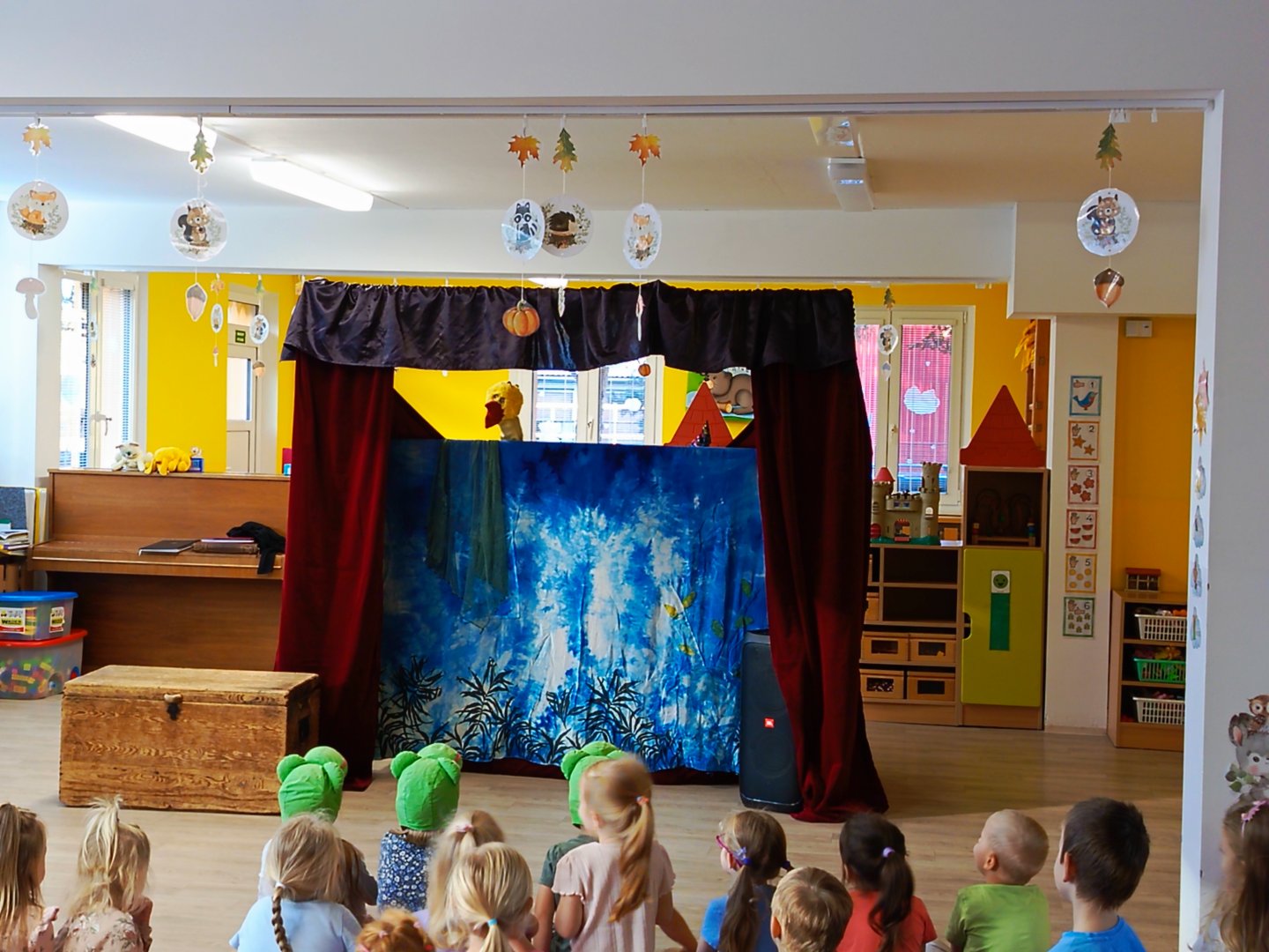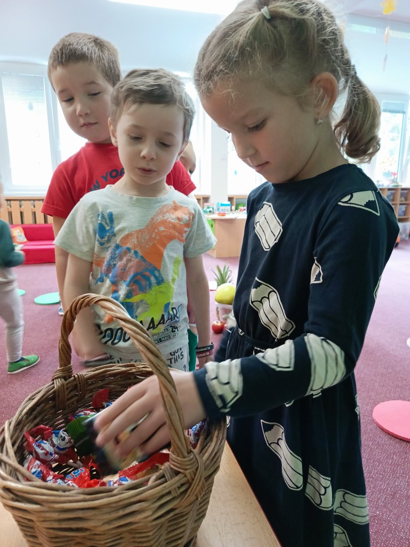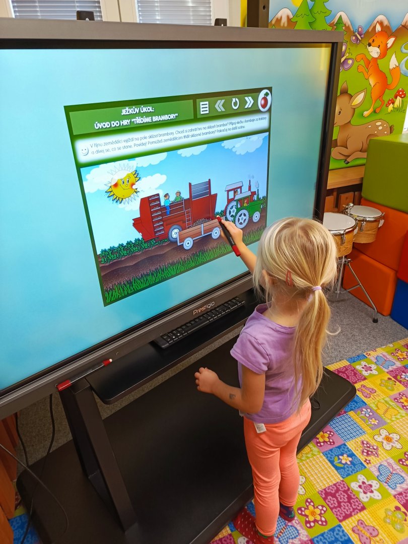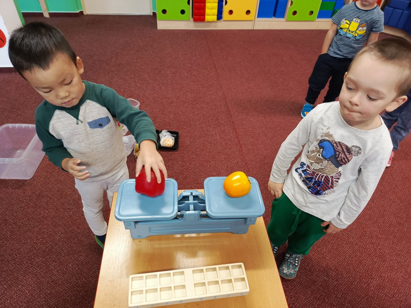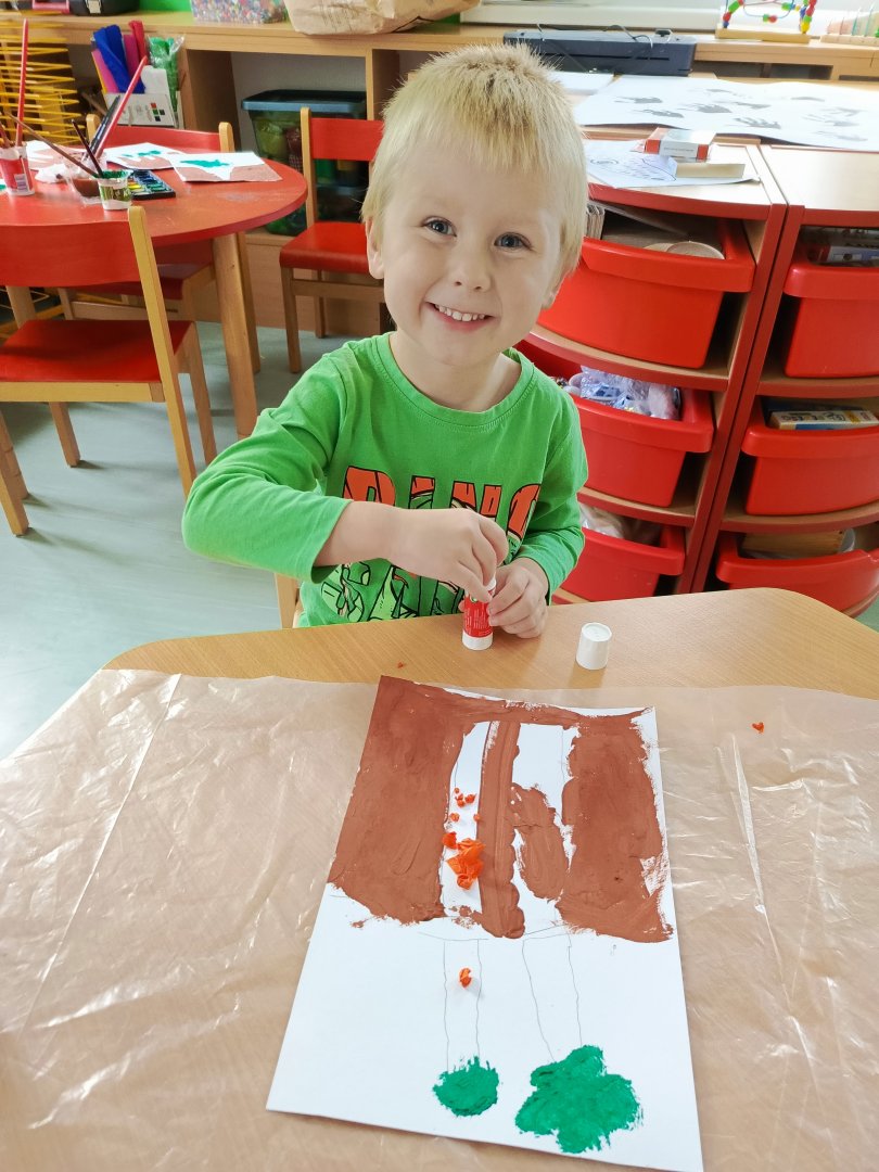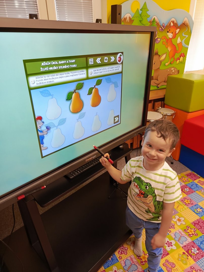 Tento týden jsme se věnovali ovoci a zelenině. Děti se seznámily s různou zeleninou a ovocem i exotickým. Poznaly, že každé ovoce i zelenina má jiný tvar, vůni, chuť, je jinak těžké. Vyzkoušely si vše zvážit a vytvořit na váze rovnováhu. Také ovoce a zeleninu počítaly, pozorovaly pod lupou a mikroskopem. V pokusu, co plave a neplave, se dozvěděly, že kiwi a mrkev v obyčejné vodě neplavou, ale ve slané vodě plavou. V logopedické třídě plnily úkoly na kouzelné tabuli k tomuto tématu. Také jsme sbírali kaštany, oslavili narozeniny a svátek, ve školce proběhlo divadlo s pohádkou o podzimu.