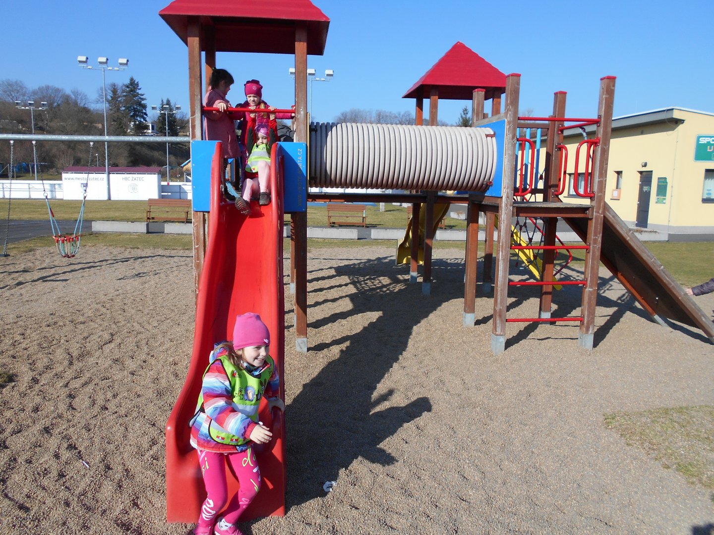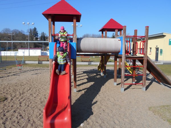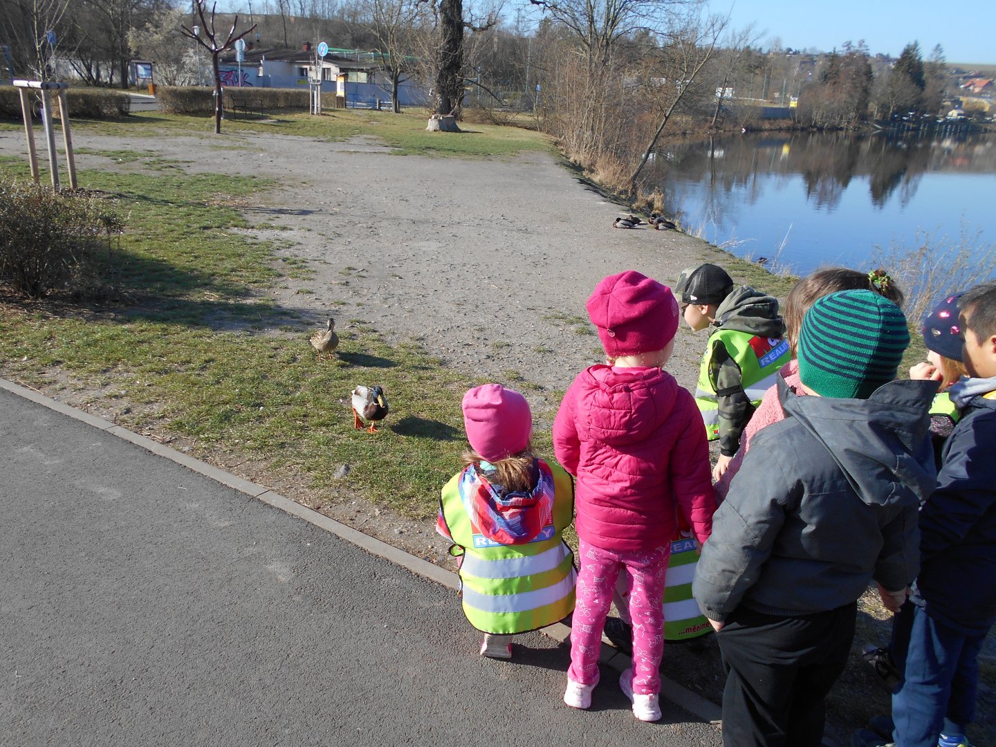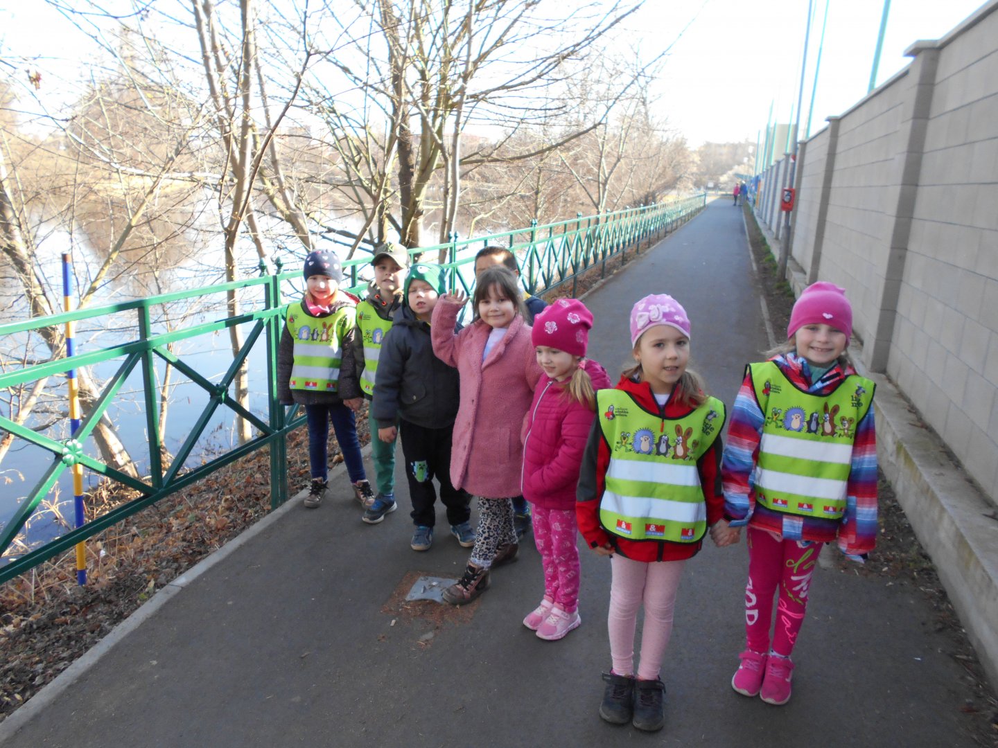V pondělí 28.3.2022 jsme se s předškoláky vydali k řece. Prošli jsme parkem, vyfotili jsme se u „perníkové chaloupky“, u řeky jsme viděli kachny, jak se vyhřívají na sluníčku, na naučné tabuli jsme se dozvěděli, jaká zvířata zde můžeme najít, prohlédly jsme si fotbalové hřiště a slalomové branky na řece. Na hřišti za koupalištěm si děti hrály na prolézačkách. Výlet se všem moc líbil a doufáme, že si ho brzy zopakujeme.