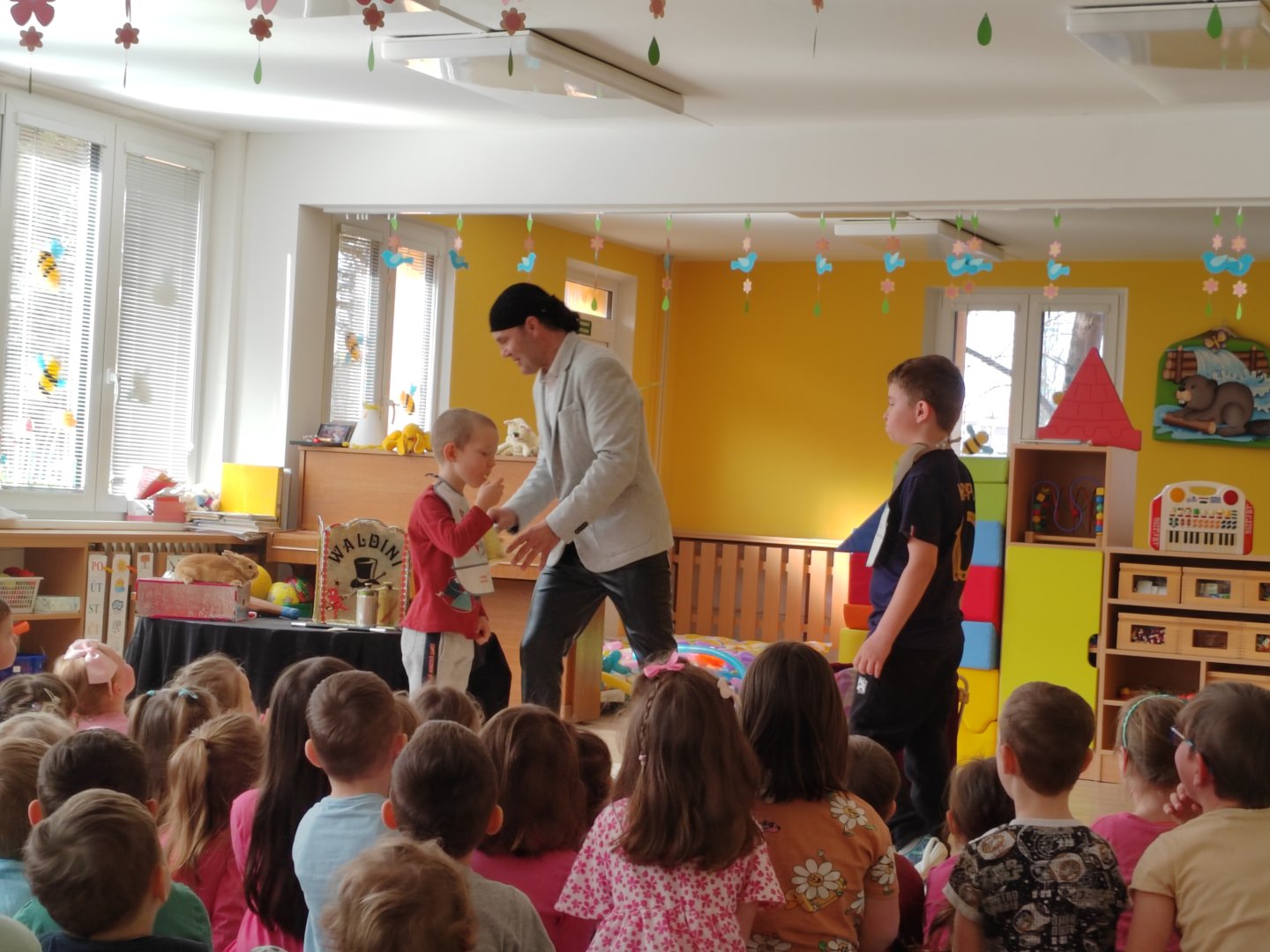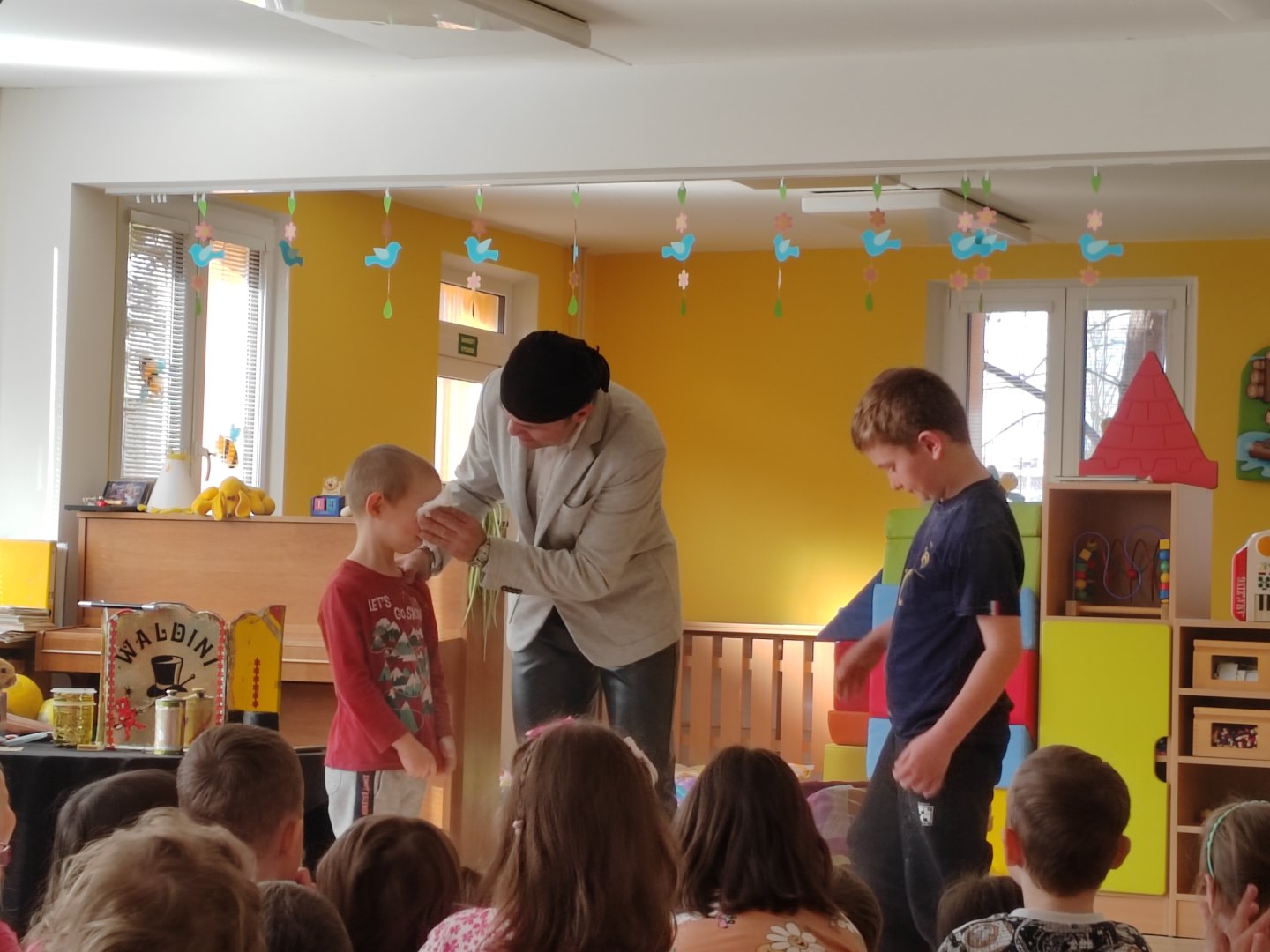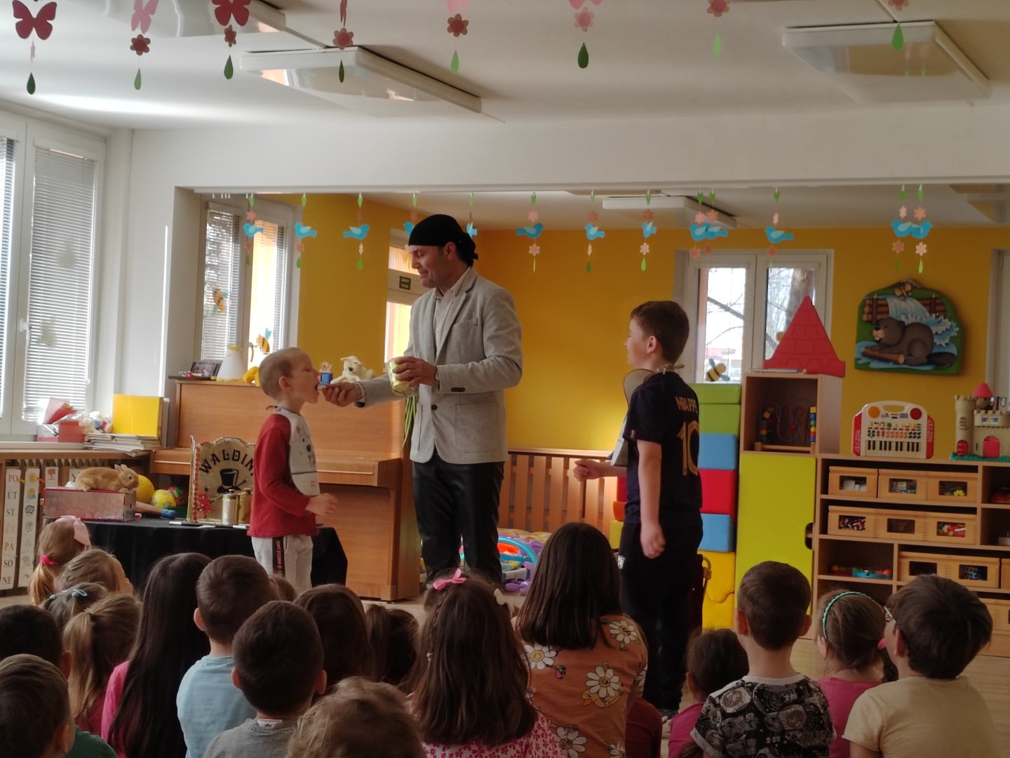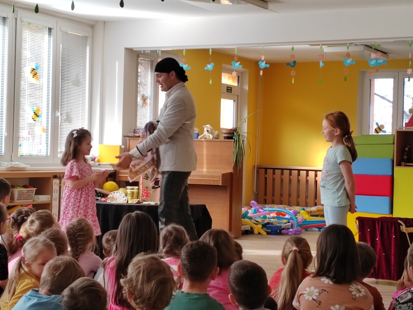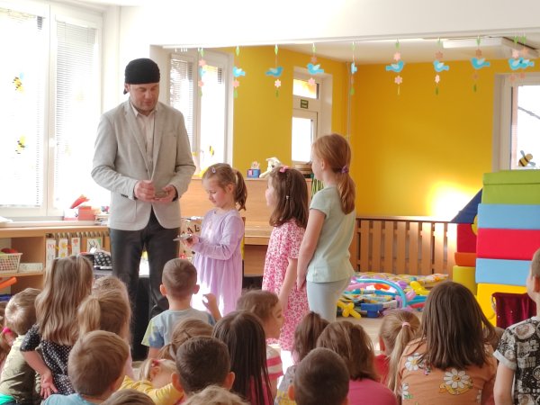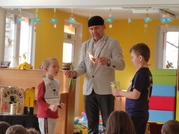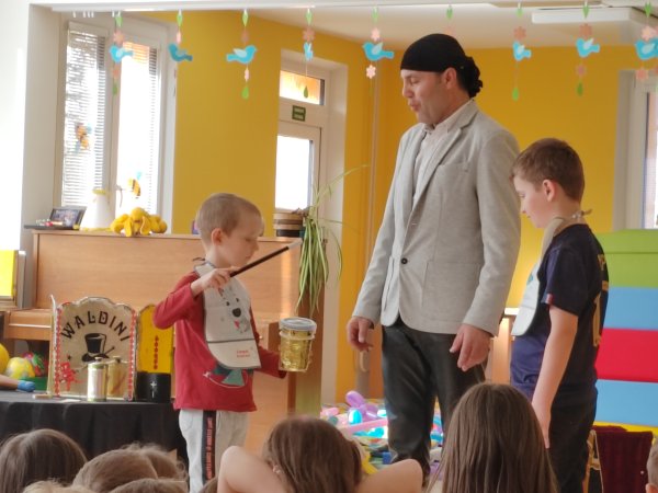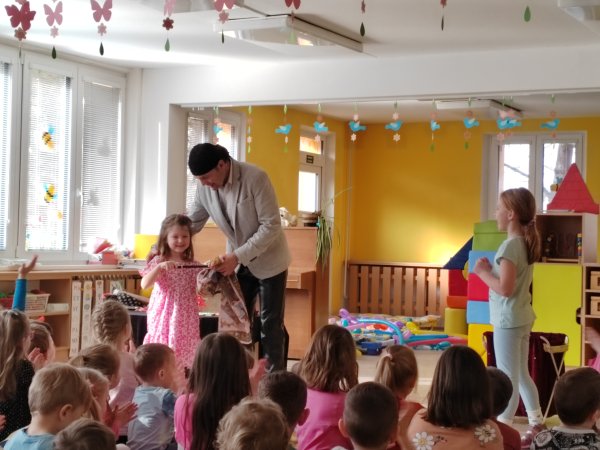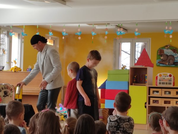 Kategorie: Rybičky | Autor: Bc. Radka Diepoltová | Zveřejněno: 21. 03. 2024 Návštěva kouzelníka 🪄 Dnes děti navštívil kouzelník Waldini se svým krásným vystoupením plných kouzel a triků. Dětem se představení moc líbilo a na závěr každý dostal pejska nebo meč z balónků. Galerie