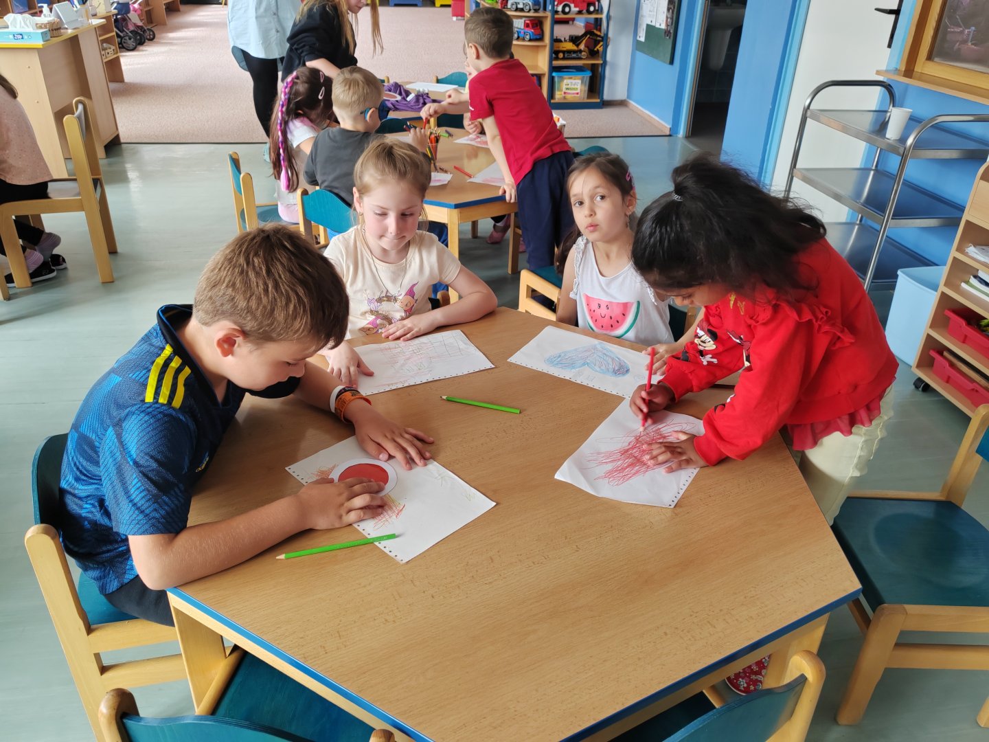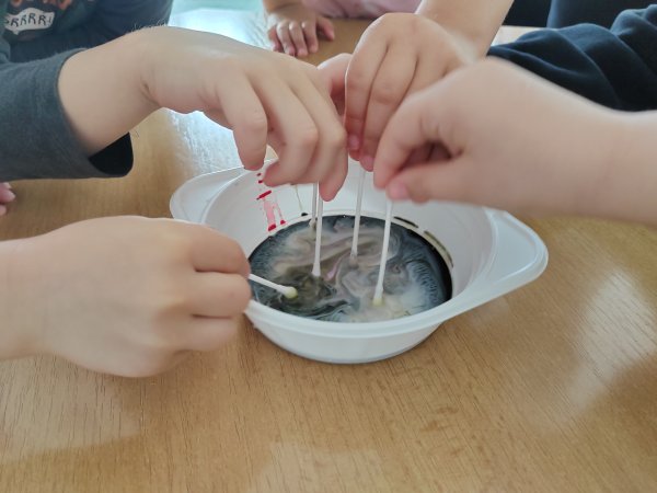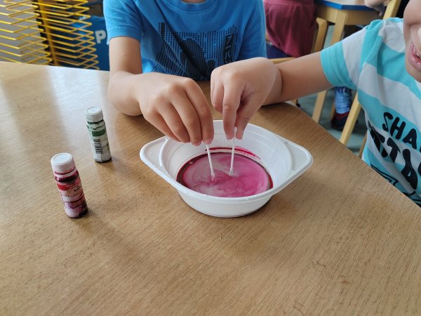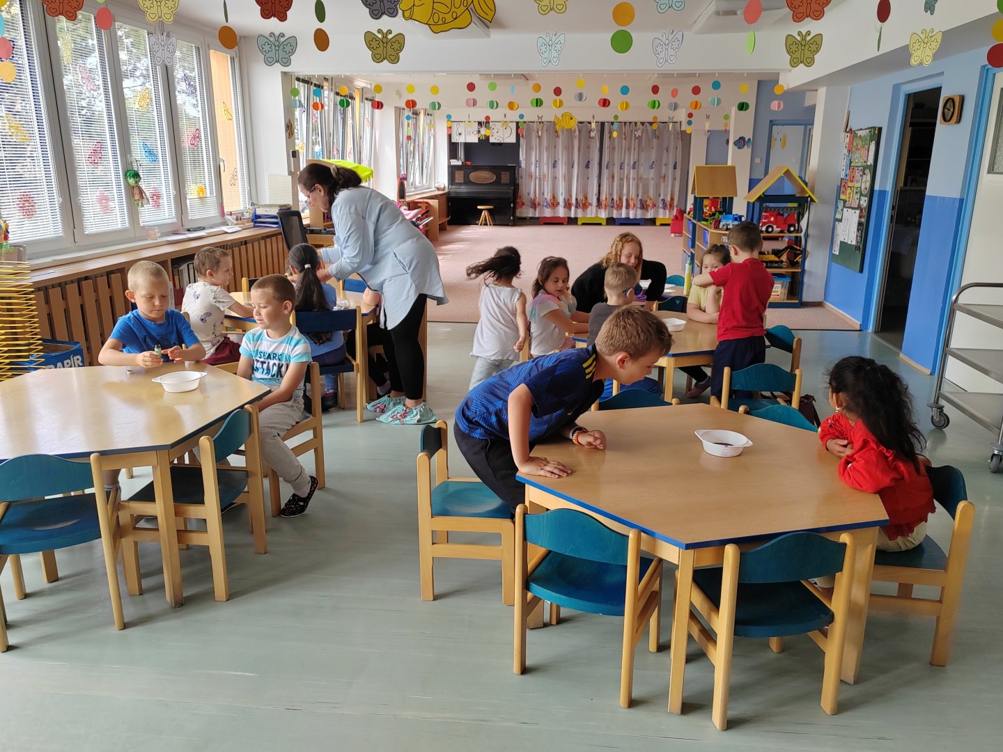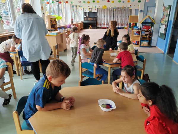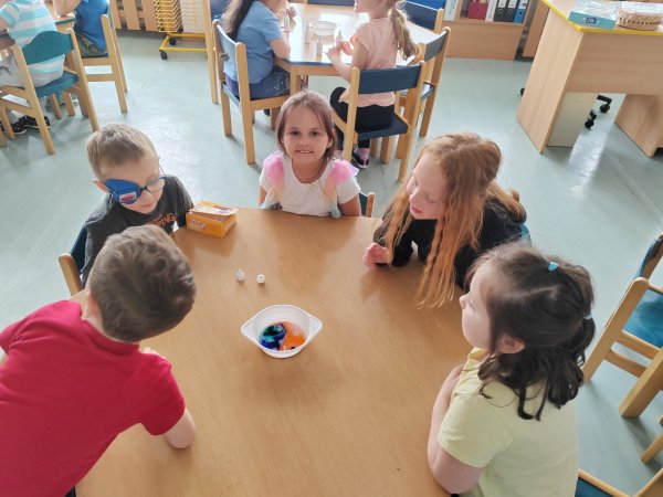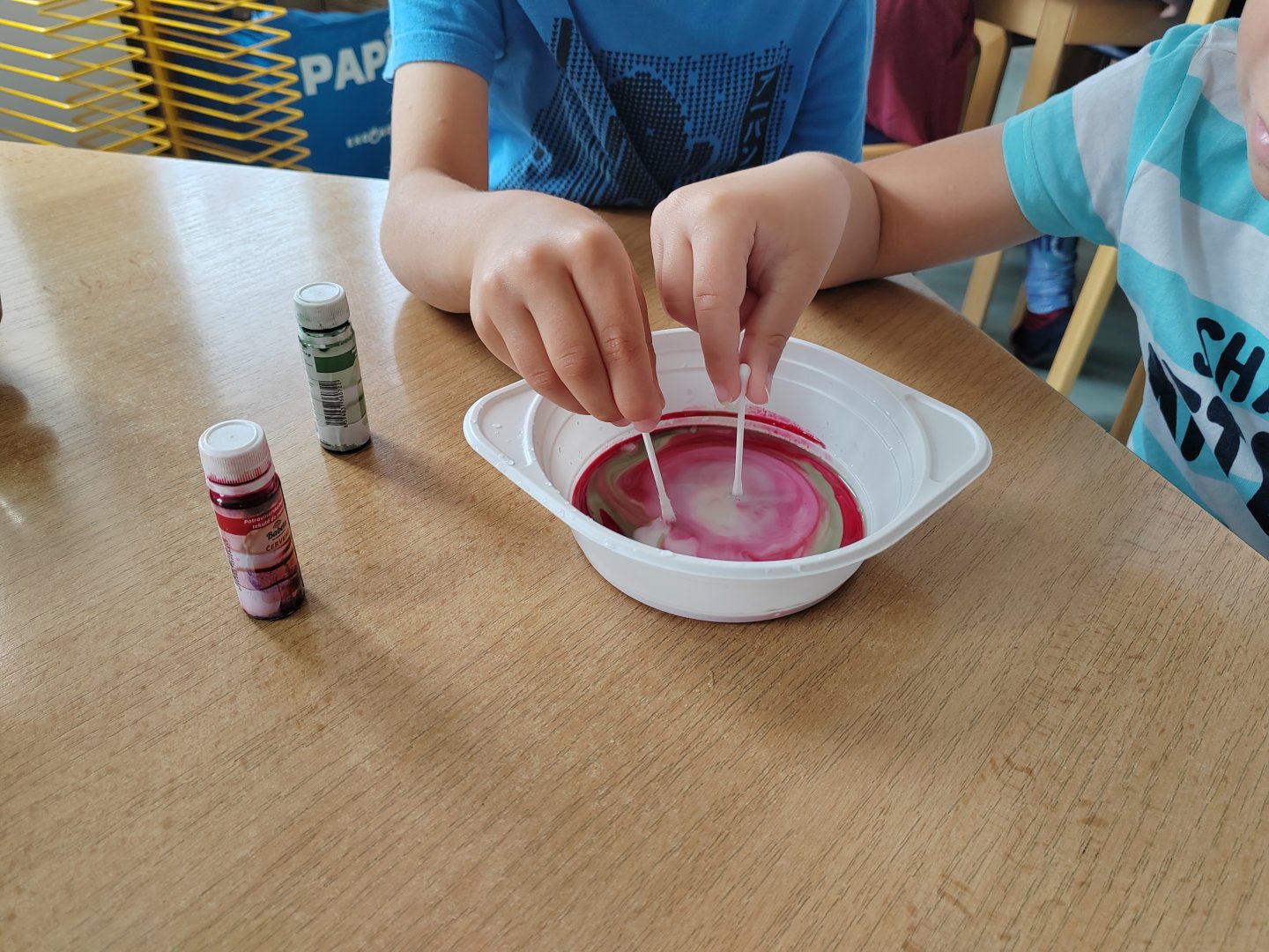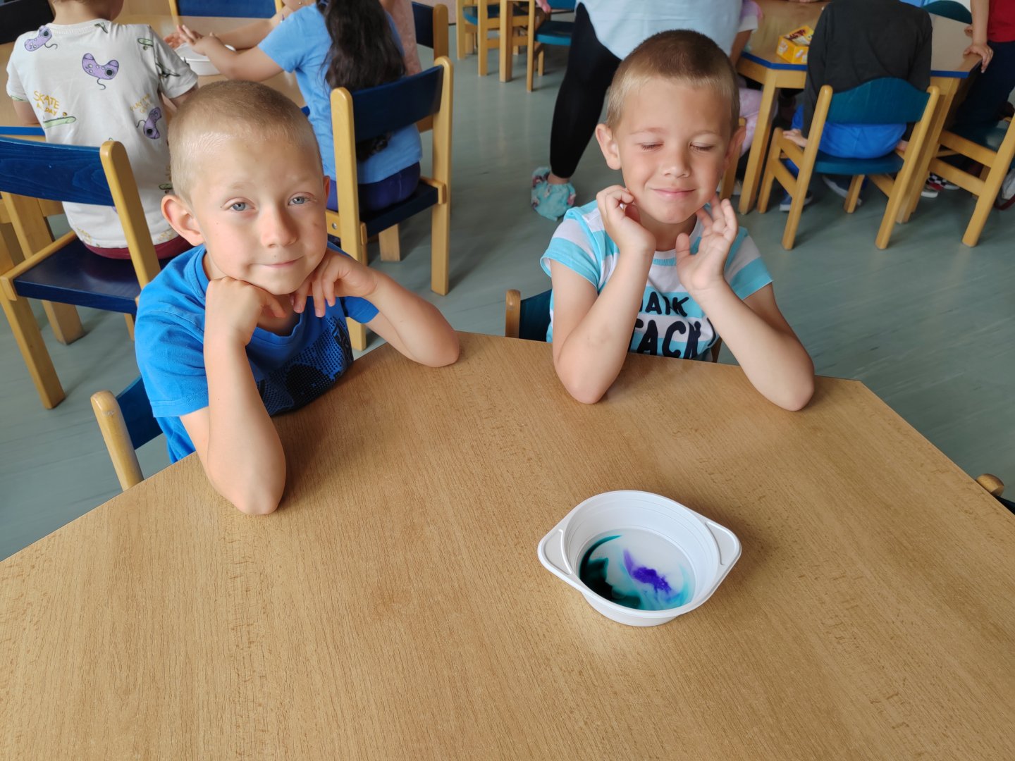 V úterý 4.6.2024 předškolní děti zažily interaktivní dopoledne s paní lektorkou Alenou Novákovou. Cílem bylo poznat a vyzkoušet co všechno barvičky s různými přísadami dovedou. Dětem se pokusy moc líbily a odnesly si tak nevšední zážitky.