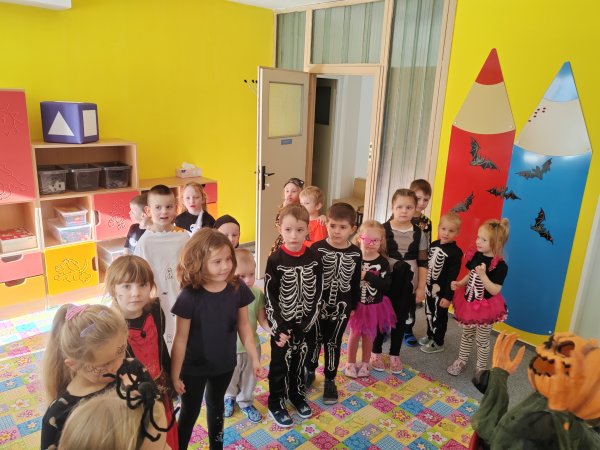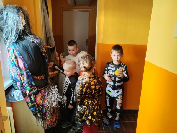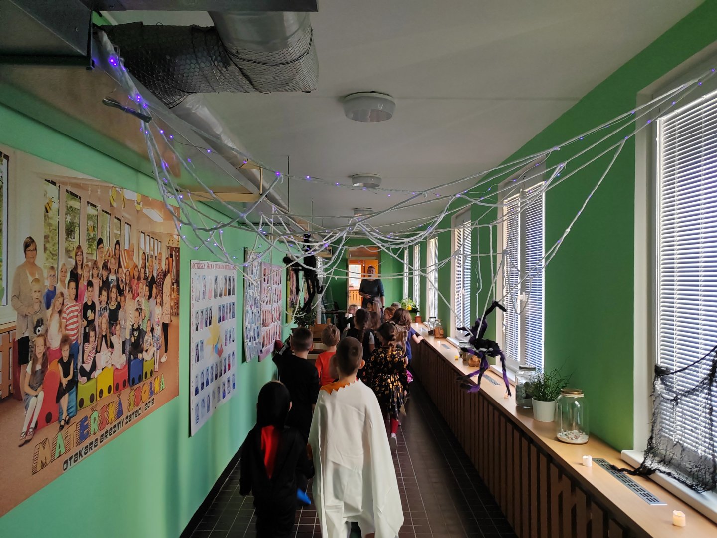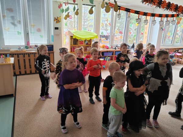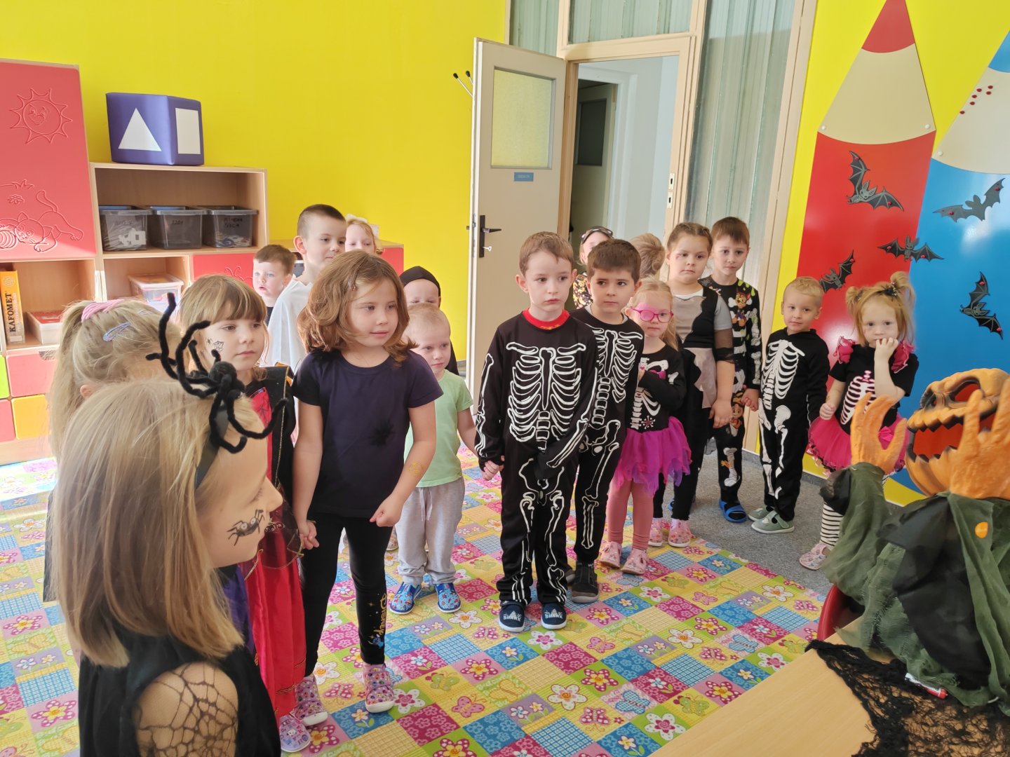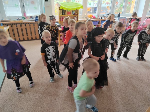 Dnes měly děti ve školce projektový den Halloween. Děti chodily už od rána do školky v nádherných maskách, nosily pro kamarády strašidelné dobroty. Tančily a skotačily. Jako překvapení na děti čekala stezka vedoucí po celé školce. Byla plná strašidýlek, úkolů a zvukových efektů. Stezku si pro děti připravila paní učitelka Míša že třídy sluníček, byla opravdu povedená. Paní učitelce moc děkujeme. Dětem se dopoledne velice líbilo. Strašně děkujeme rodičům za výborné ňaminy, nádherné kostýmy a krásně nazdobené a vydlabané dýně, které nám zdobí vchod do školky.