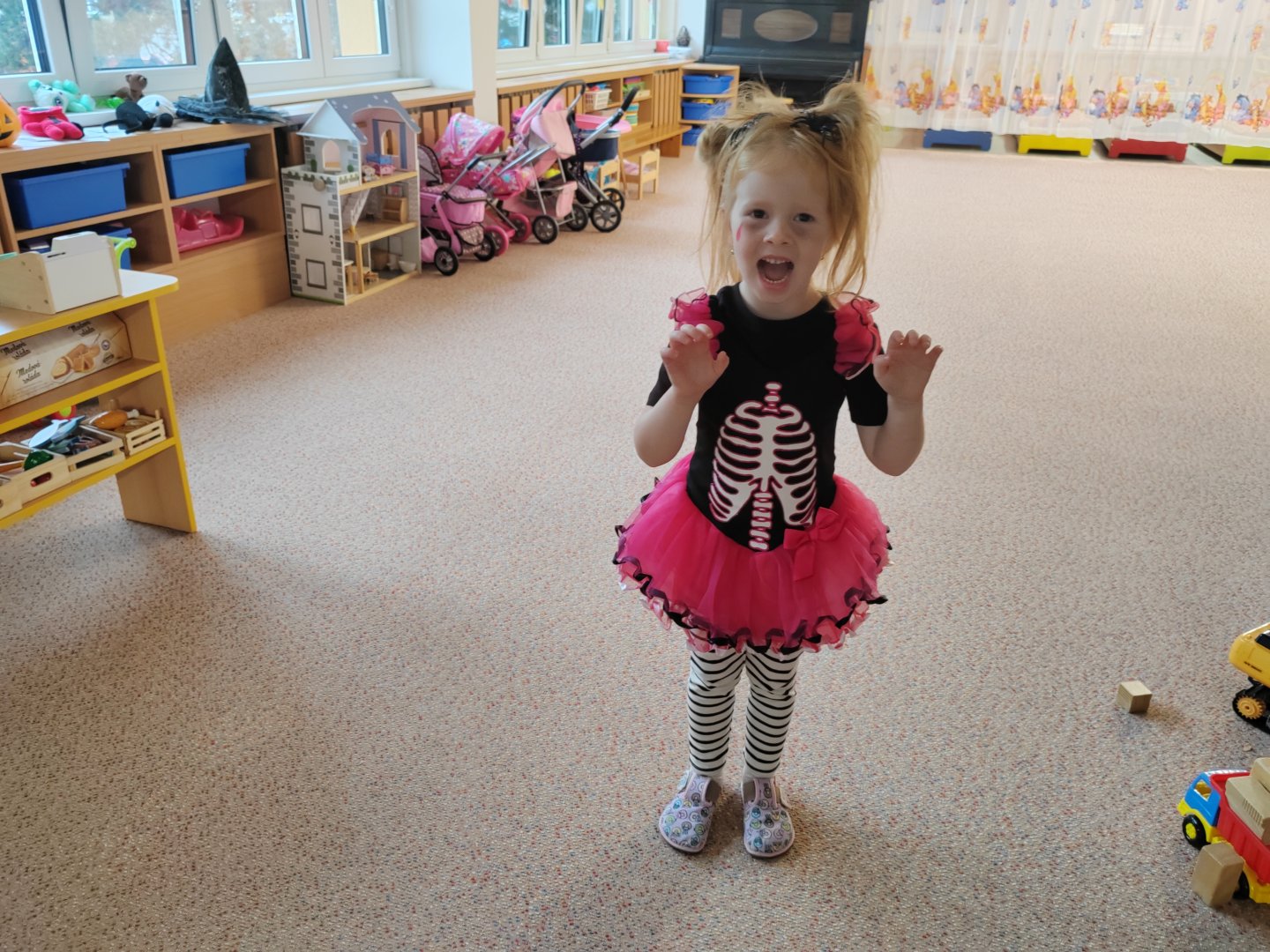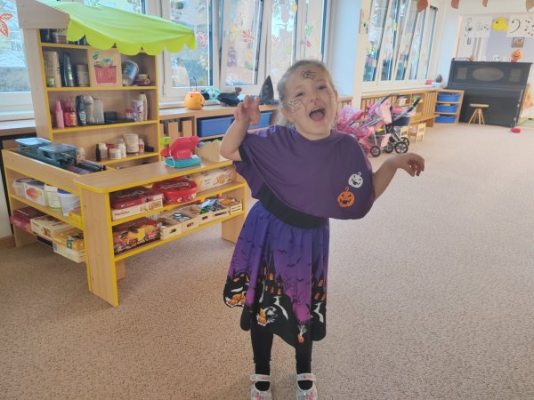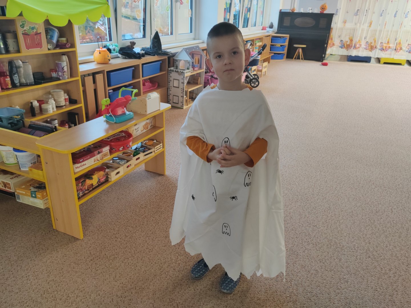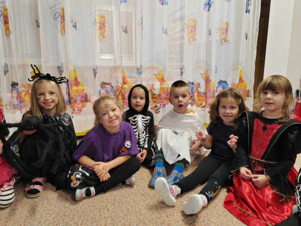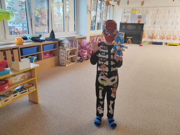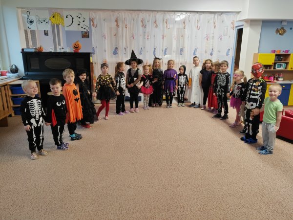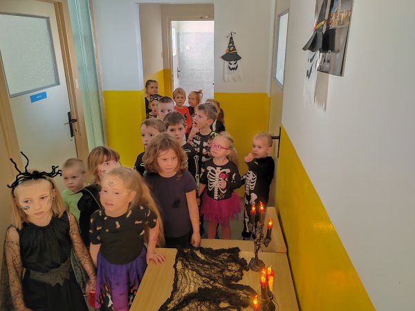 Dnes měly děti ve školce projektový den Halloween. Děti chodily už od rána do školky v nádherných maskách, nosily pro kamarády strašidelné dobroty. Tančily a skotačily. Jako překvapení na děti čekala stezka vedoucí po celé školce. Byla plná strašidýlek, úkolů a zvukových efektů. Stezku si pro děti připravila paní učitelka Míša že třídy sluníček, byla opravdu povedená. Paní učitelce moc děkujeme. Dětem se dopoledne velice líbilo. Strašně děkujeme rodičům za výborné ňaminy, nádherné kostýmy a krásně nazdobené a vydlabané dýně, které nám zdobí vchod do školky.
