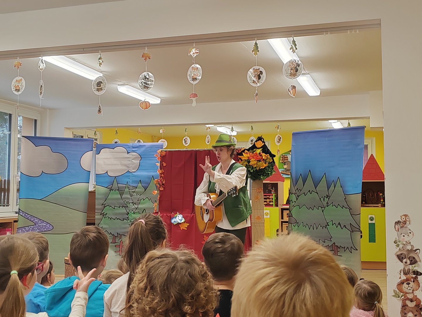 Kategorie: Rybičky | Autor: Bc. Radka Diepoltová | Zveřejněno: 6. 11. 2025 Jak šel méďa do školy Dnes děti shlédly divadelní představení v mš - Jak šel méďa do školy. Děti si zazpívaly plno písniček. Pohádka se jim moc líbila. Galerie