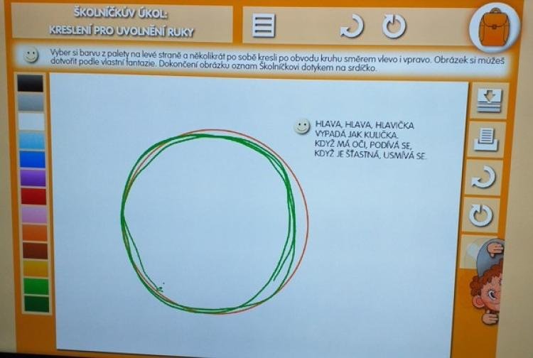 Předškolní děti na kroužku "Kouzelné tabule" vyplňovaly Školníčkovy úkoly, které byly zaměřené na uvolnění ruky. Naučily se báseň "Hlava, hlava, hlavička", rozlišovaly emoce na obličejích a na závěr si zahrály emoční pexeso.