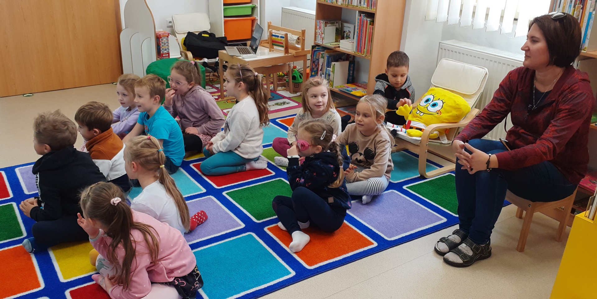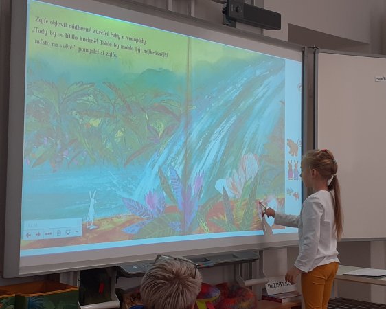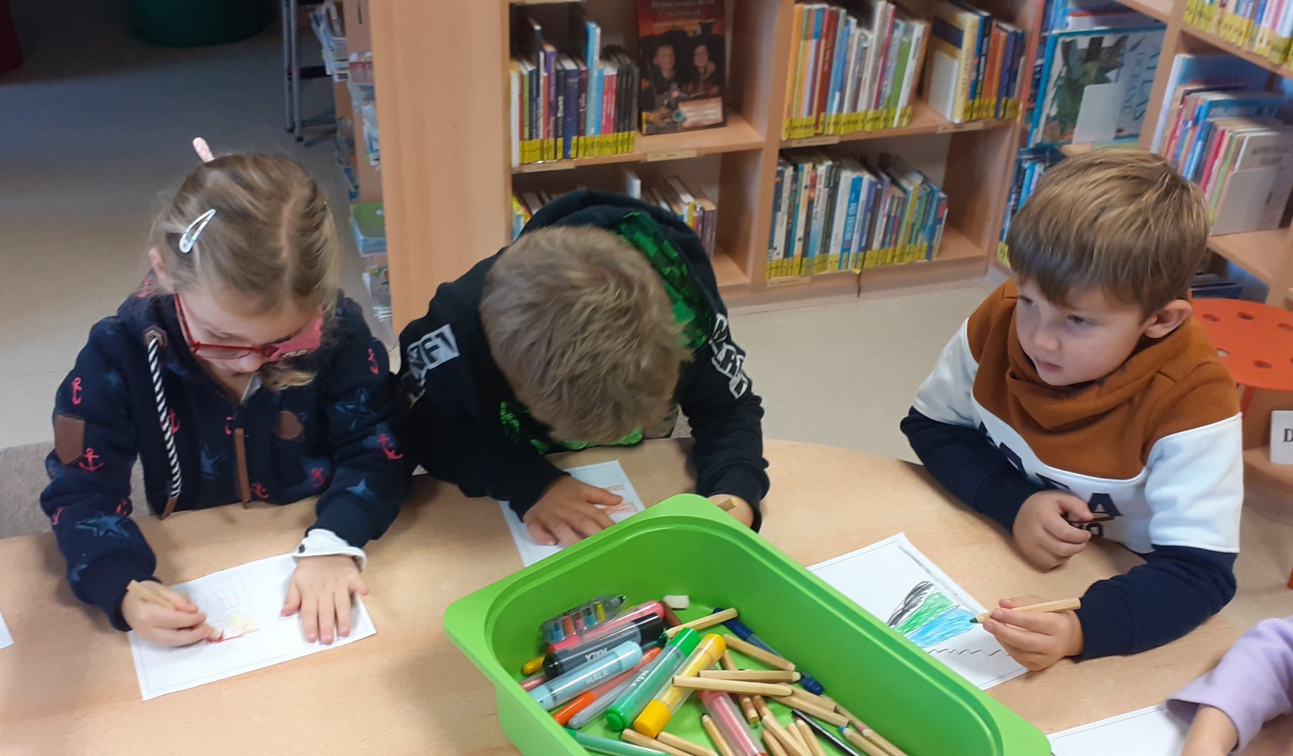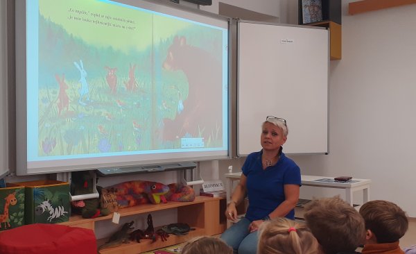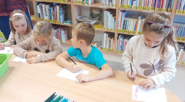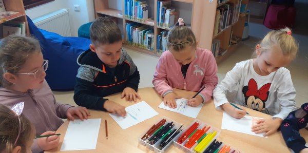 Dnes děti navštívily Městskou knihovnu Žatec. Poslechly si pohádku "Nejkrásnější místo na světě", odpovídaly na otázky, doplňovaly do obrázků zvířátka. Také kreslily obrázek na téma "Jaké je tvé nejkrásnější místo na světě". Dětem se v knihovně líbilo a těší se na další návštěvu.