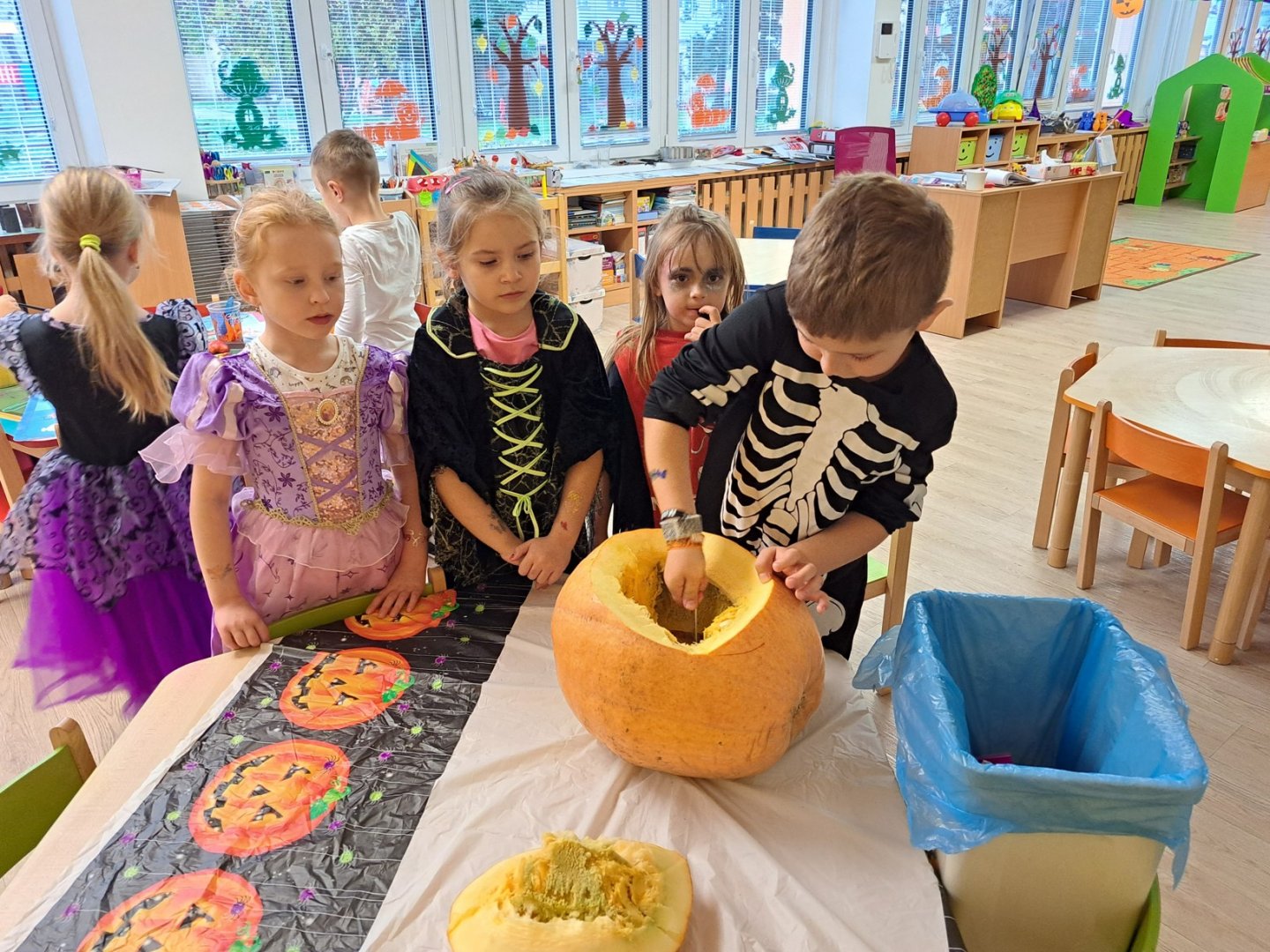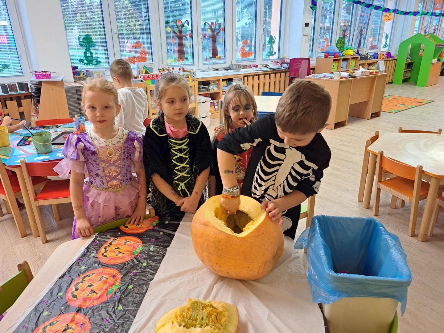 Kategorie: Sluníčka | Autor: Bc. Eva Todtová | Zveřejněno: 1. 11. 2022 HALLOWEEN PÁRTY Projektový den Halloween dětem přinesl dopoledne plné zábavy a tance. Nechyběla promenáda masek ani výroba dýňových strašidel. Galerie