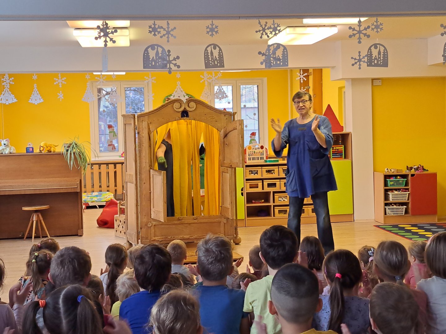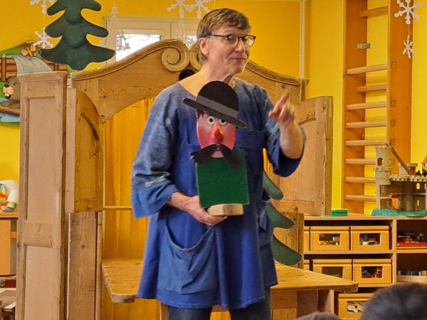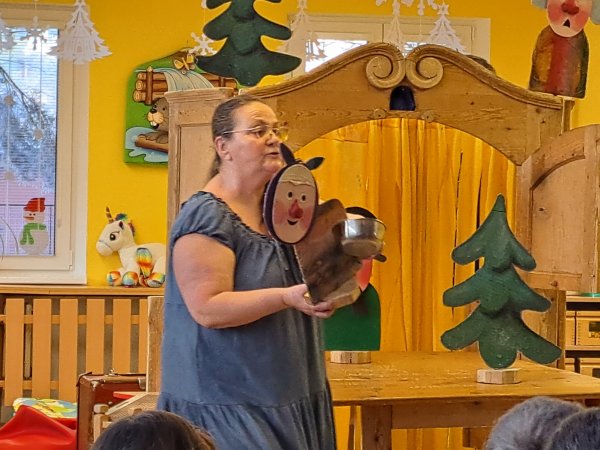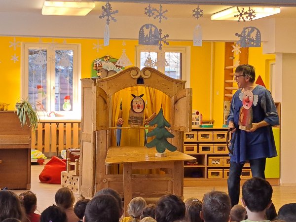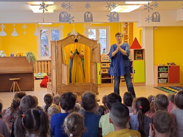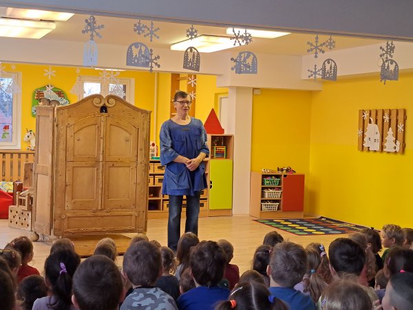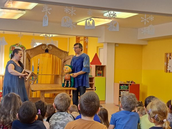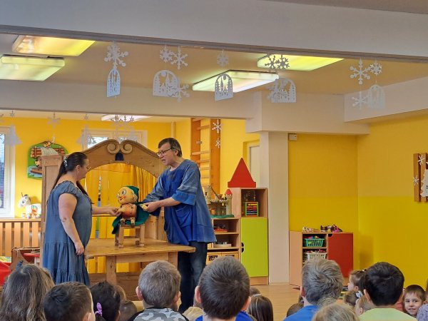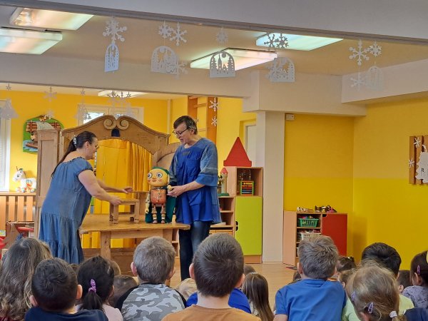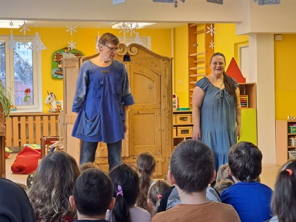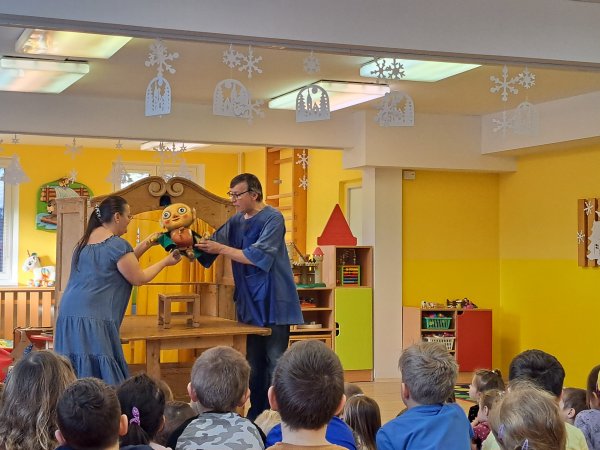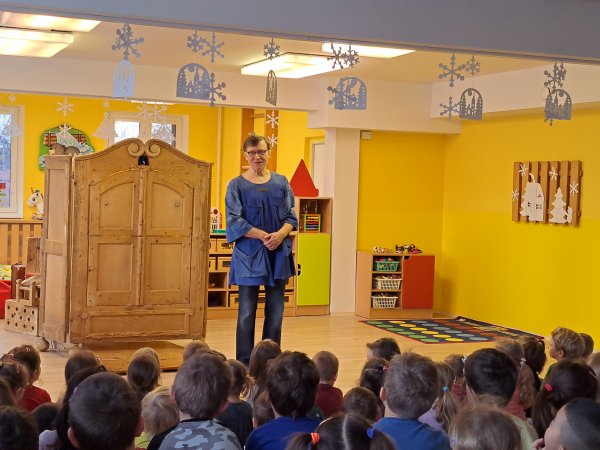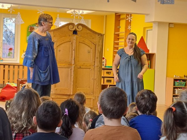 Divadlo ŠUS Rokycany zahrálo v mateřské škole pohádku o skřítku Skříňáčkovi, který se učil mluvit pomocí písní, básní a jazykolamů. Bylo to humorné představení, kde se děti staly jeho aktivními účastníky a pomohly skřítkovi ke správné výslovnosti.