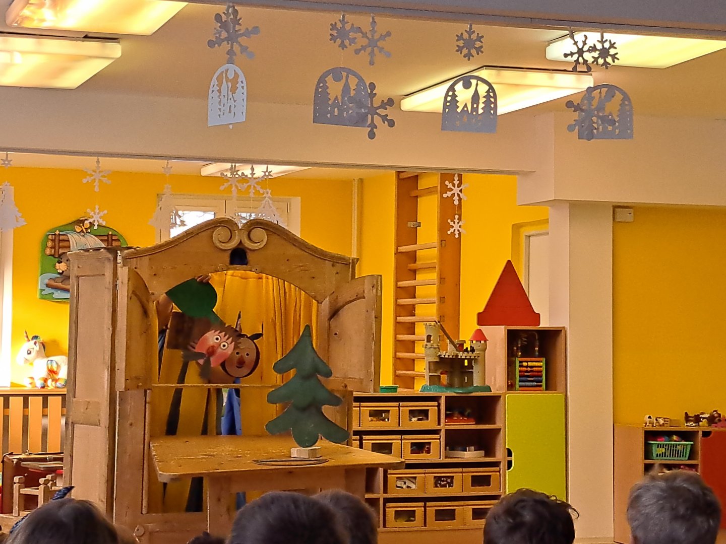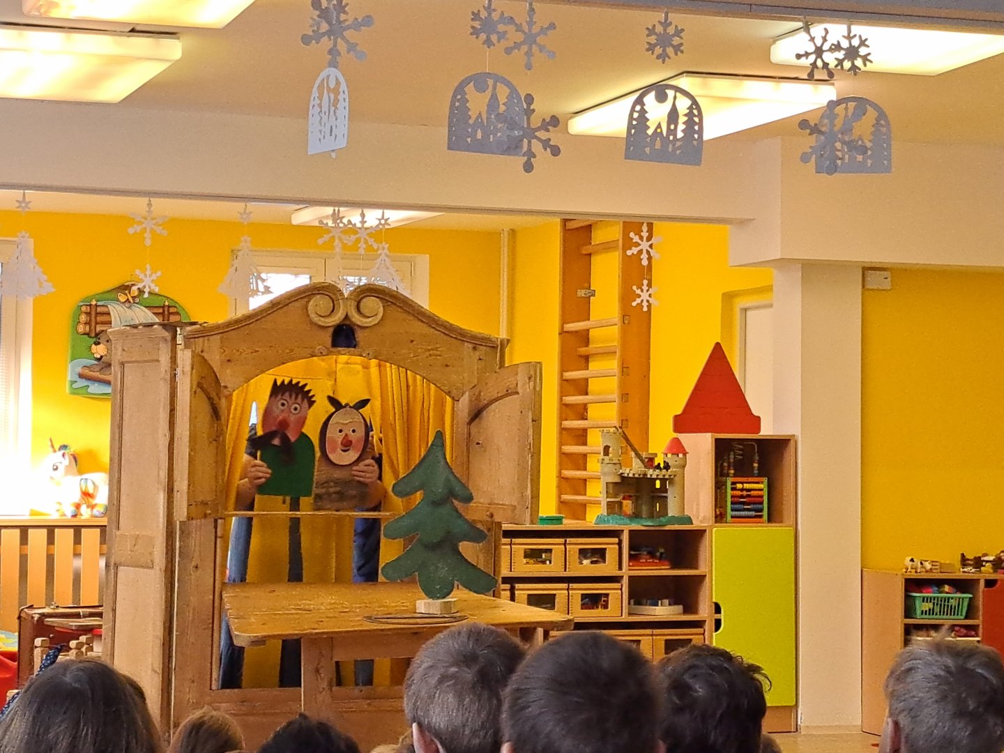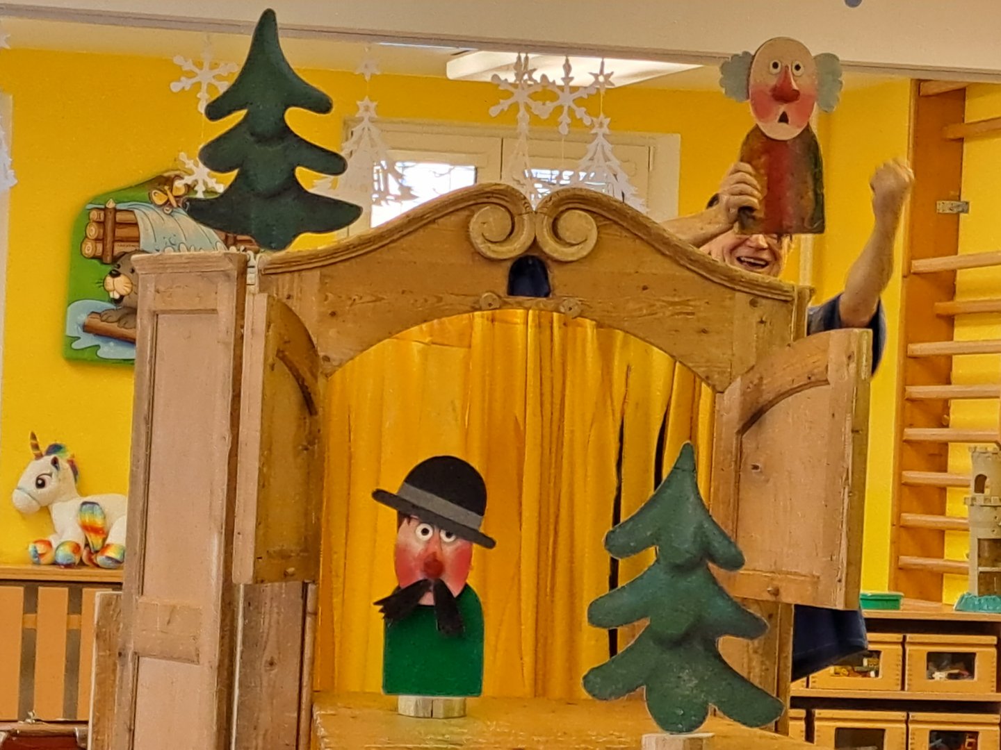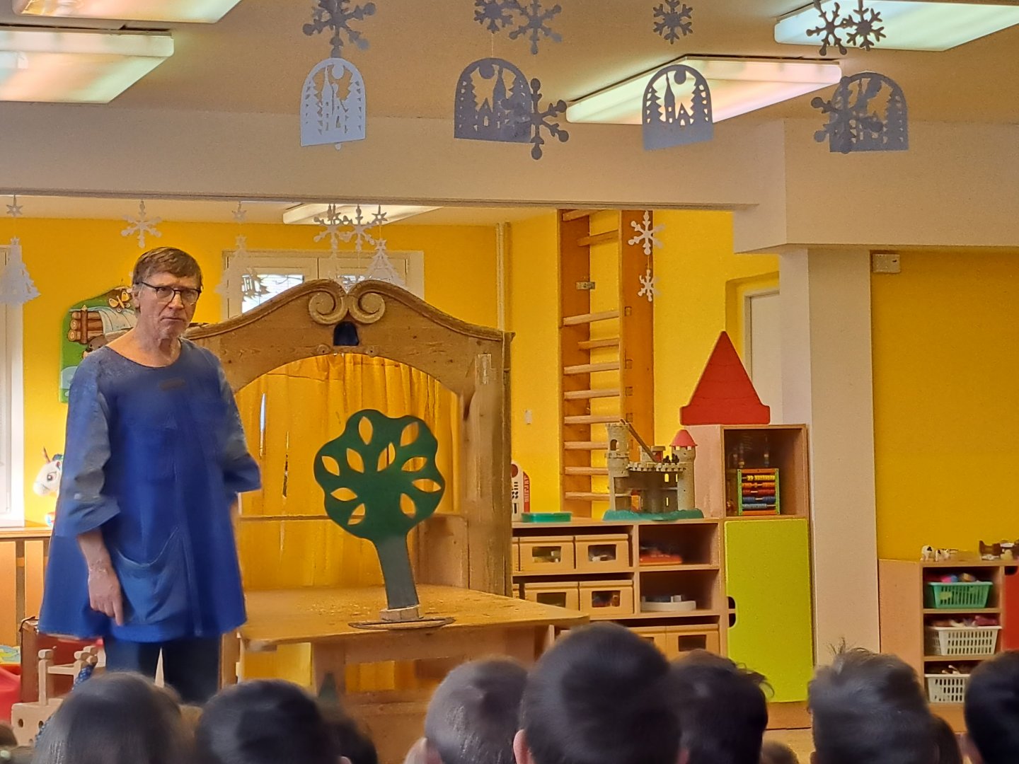 Divadlo ŠUS Rokycany zahrálo v mateřské škole pohádku o skřítku Skříňáčkovi, který se učil mluvit pomocí písní, básní a jazykolamů. Bylo to humorné představení, kde se děti staly jeho aktivními účastníky a pomohly skřítkovi ke správné výslovnosti.