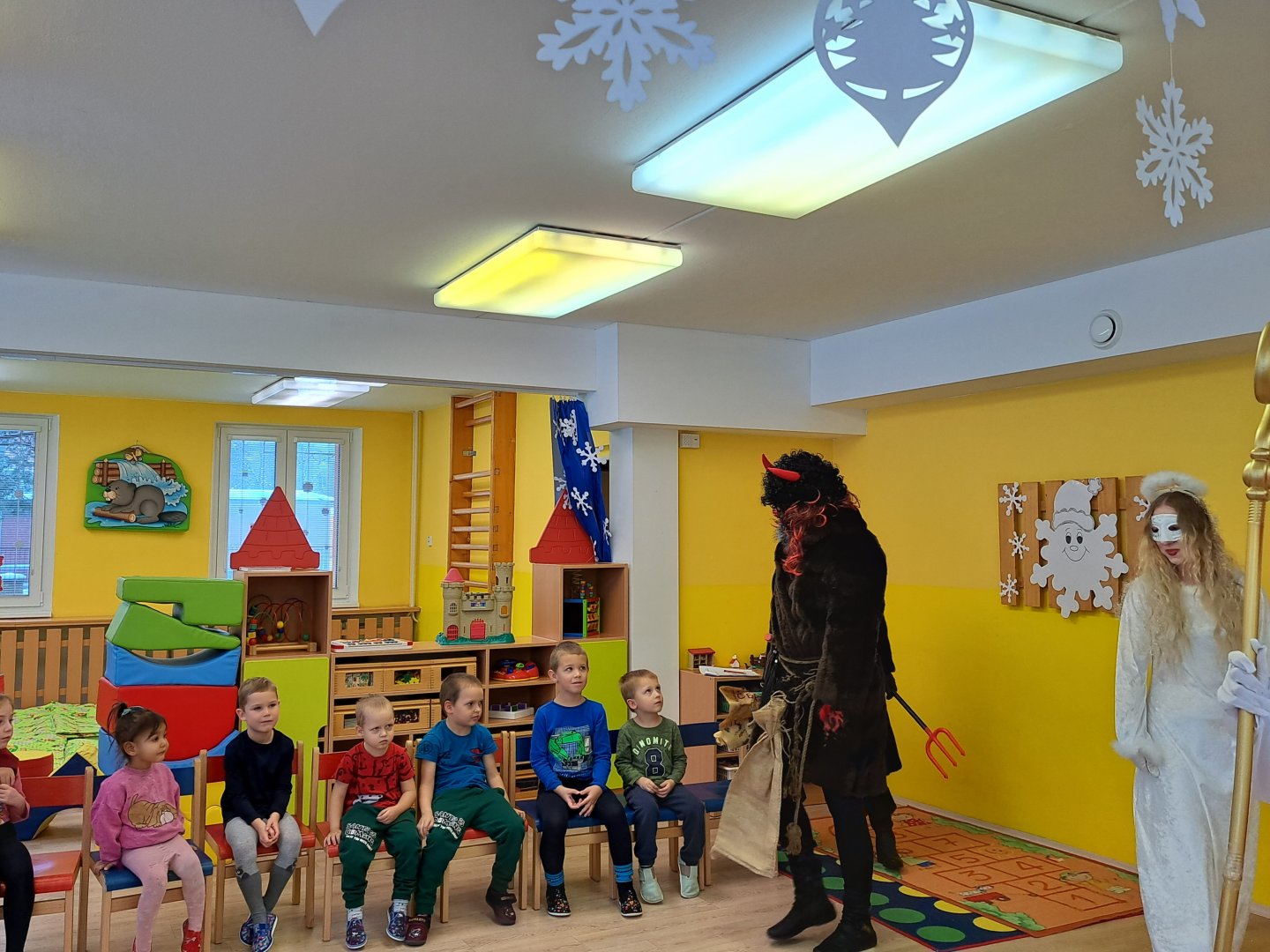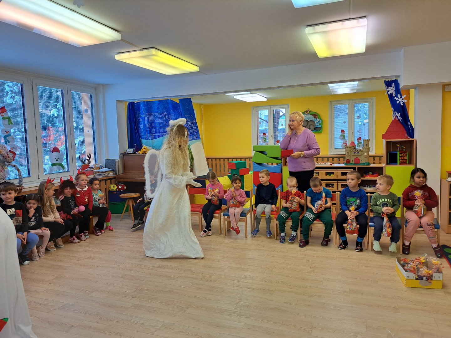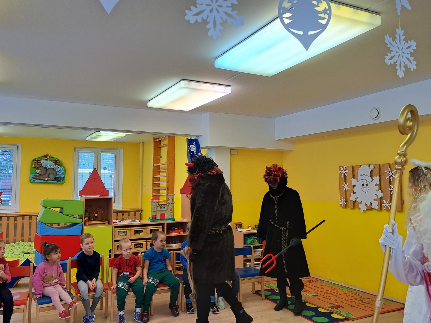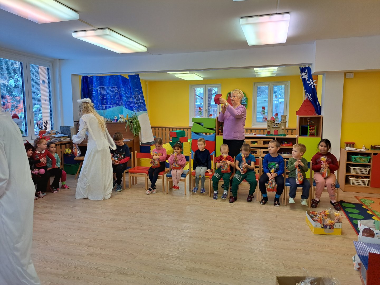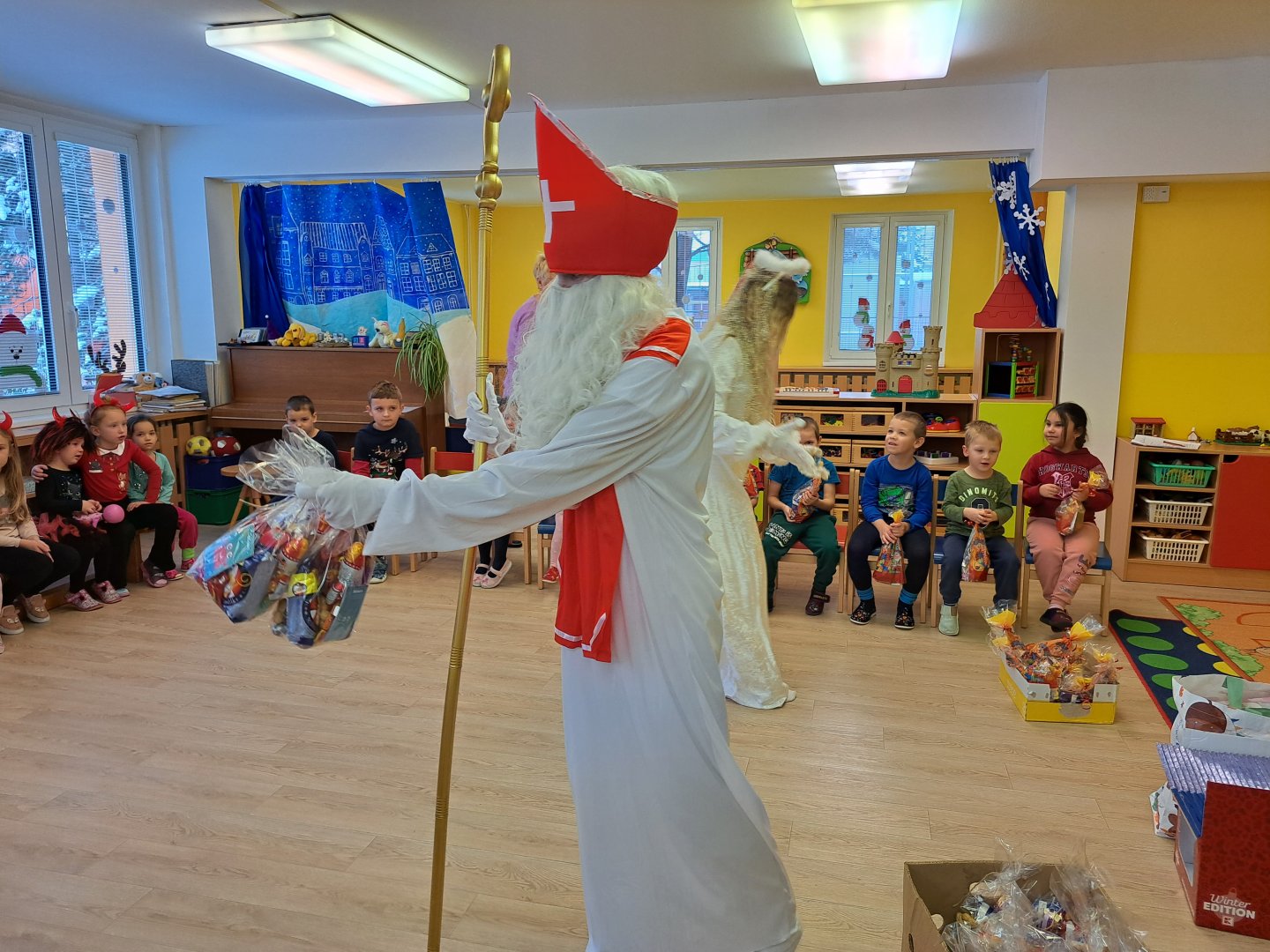 Kategorie: Sluníčka | Autor: Bc. Eva Todtová | Zveřejněno: 5. 12. 2023 MIKULÁŠ V MŠ Dnes zavítal za dětmi Mikuláš s andělem a čertem, kteří jim nadělili za zpěv a statečnost sladkou odměnu. Galerie