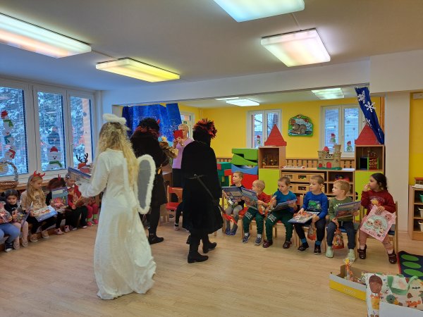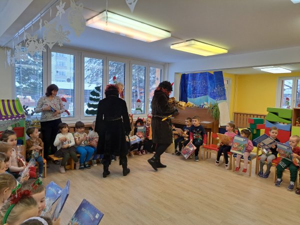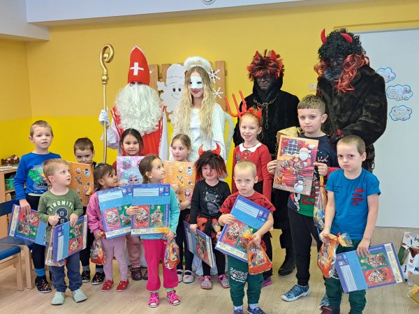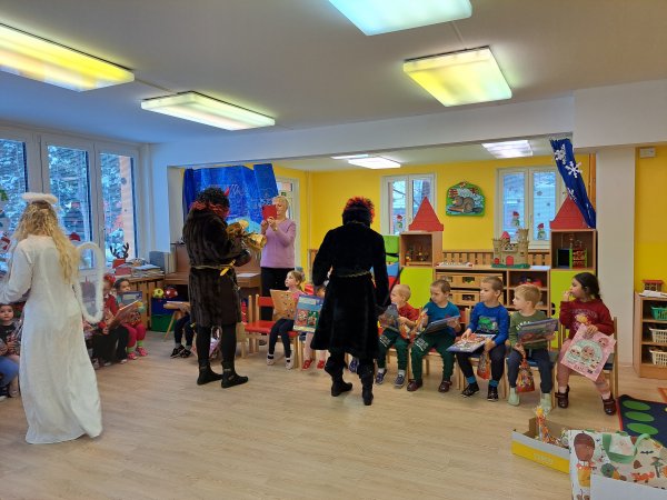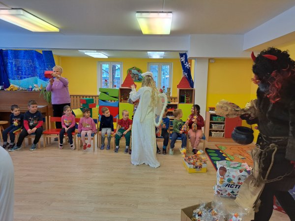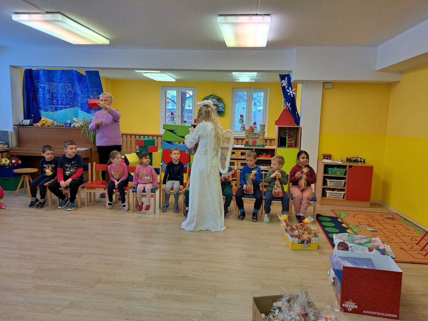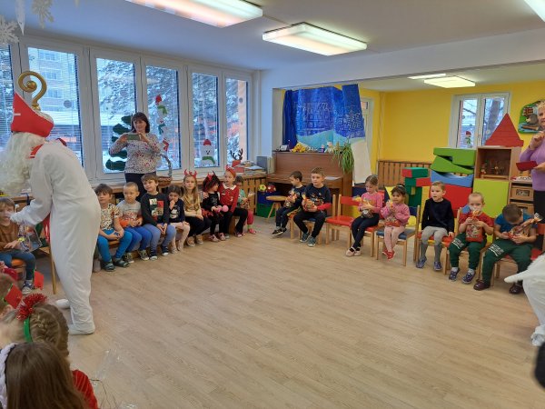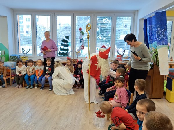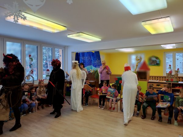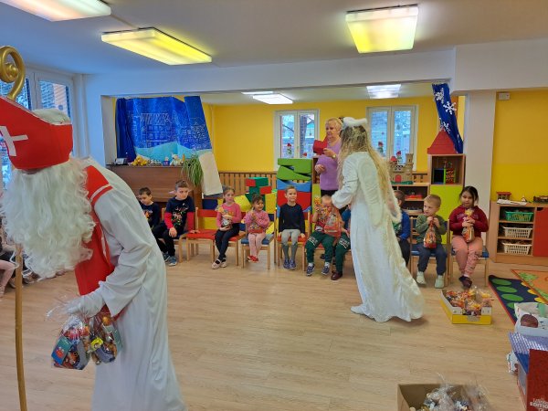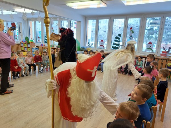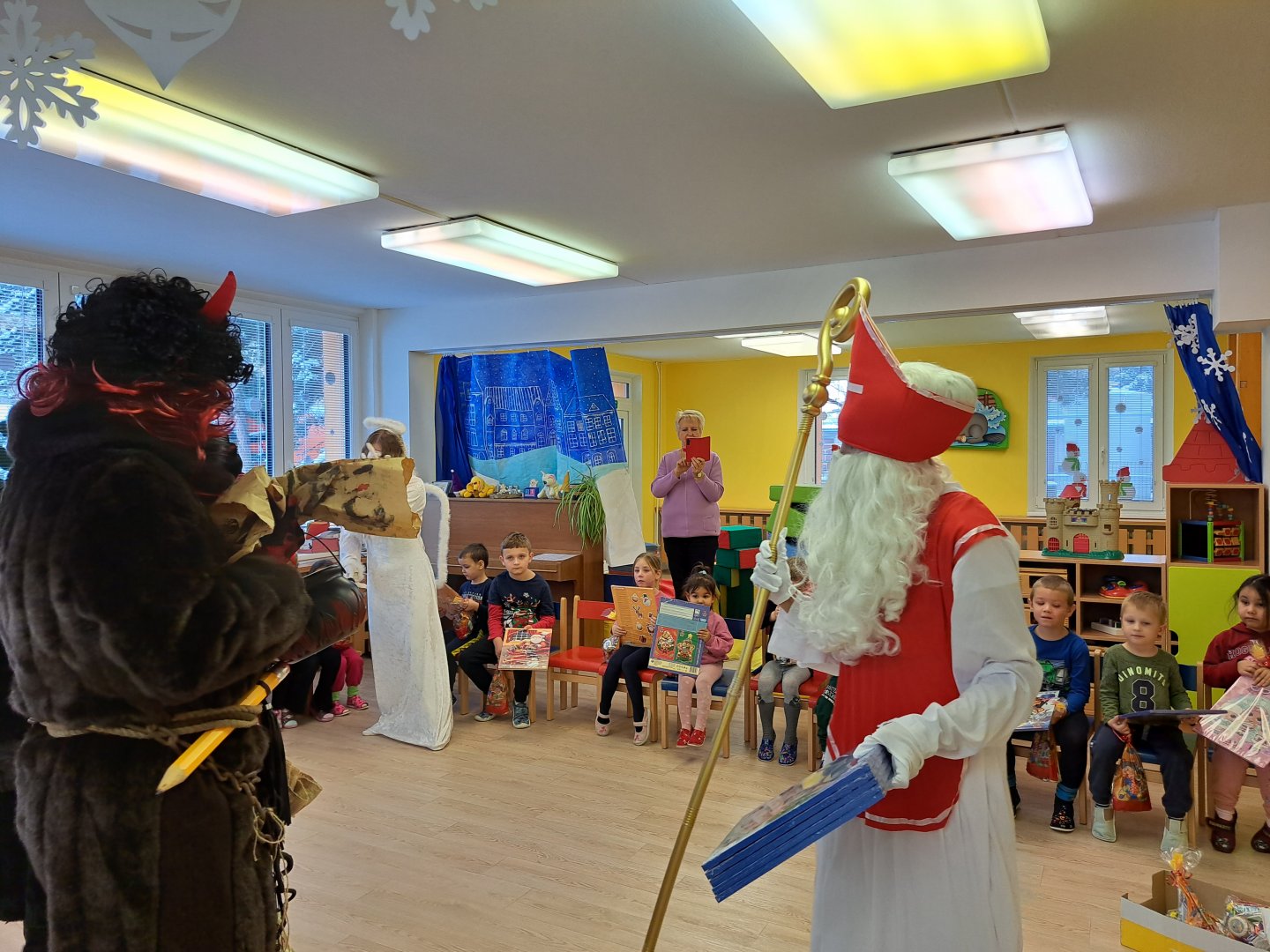 Kategorie: Sluníčka | Autor: Bc. Eva Todtová | Zveřejněno: 5. 12. 2023 MIKULÁŠ V MŠ Dnes zavítal za dětmi Mikuláš s andělem a čertem, kteří jim nadělili za zpěv a statečnost sladkou odměnu. Galerie