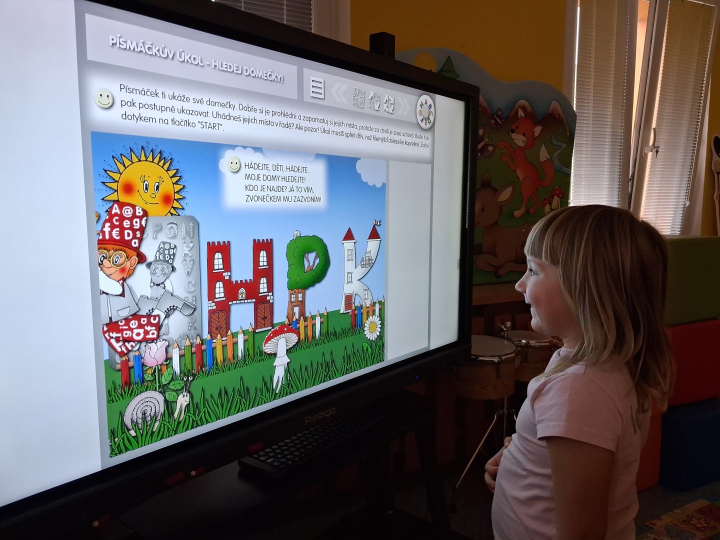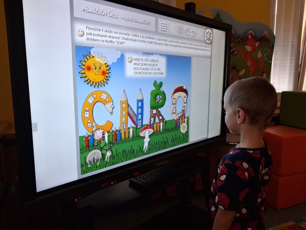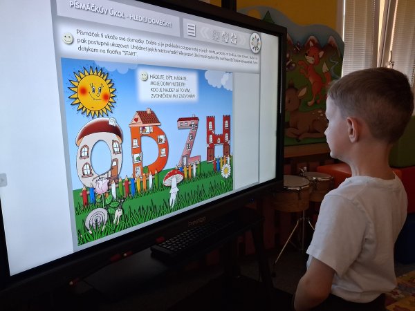 Děti dnes byly poprvé na kroužku "Kouzelná tabule", který bude probíhat v logopedické třídě. Společně jsme si říkali, co budeme na kroužku dělat - kreslit, plnit úkoly ve vzdělávacích programech, ale také třeba tisknout obrázky, mluvit do mikrofonu a také, jak se budeme chovat - neskákat si do řeči, poslouchat kamarády. Dnes si děti nakreslily barevné podzimní listy a zahrály si postřehovou hru s Písmáčkem. Na závěr jsme si říkali, co se nám líbilo nejvíce, co se povedlo nebo naopak nepovedlo.