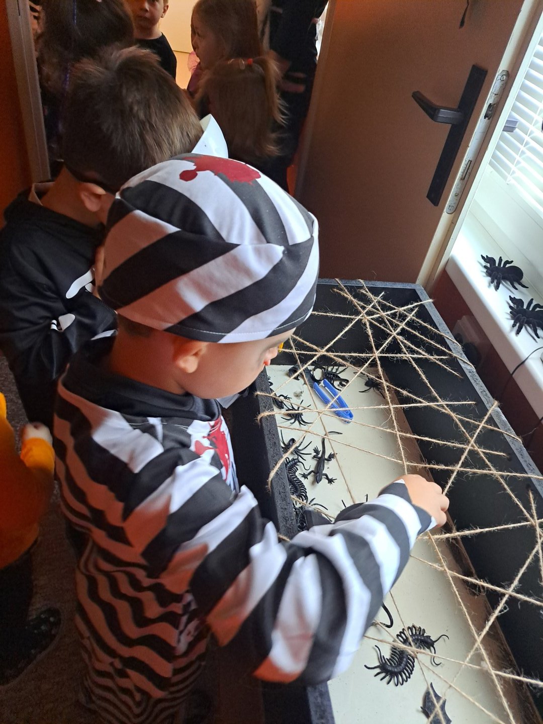 Podzimní aktivity děti zavedly do tématu týdne "Dráček Papíráček a do projektového dne "Halloween". Paní učitelka Michaela Štěpánová vytvořila Halloweenskou stezku plnou zábavných úkolů, které děti s nadšením a odvahou v nádherných kostýmech plnily. Rodičům děkujeme za podporu ve všech podobách.